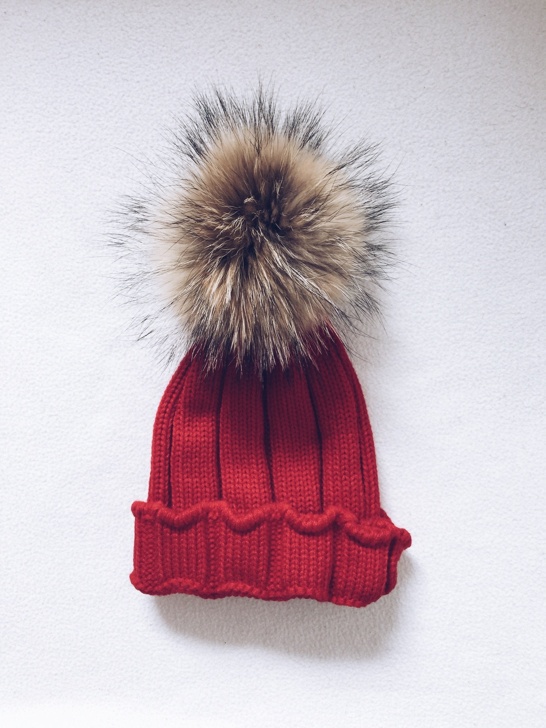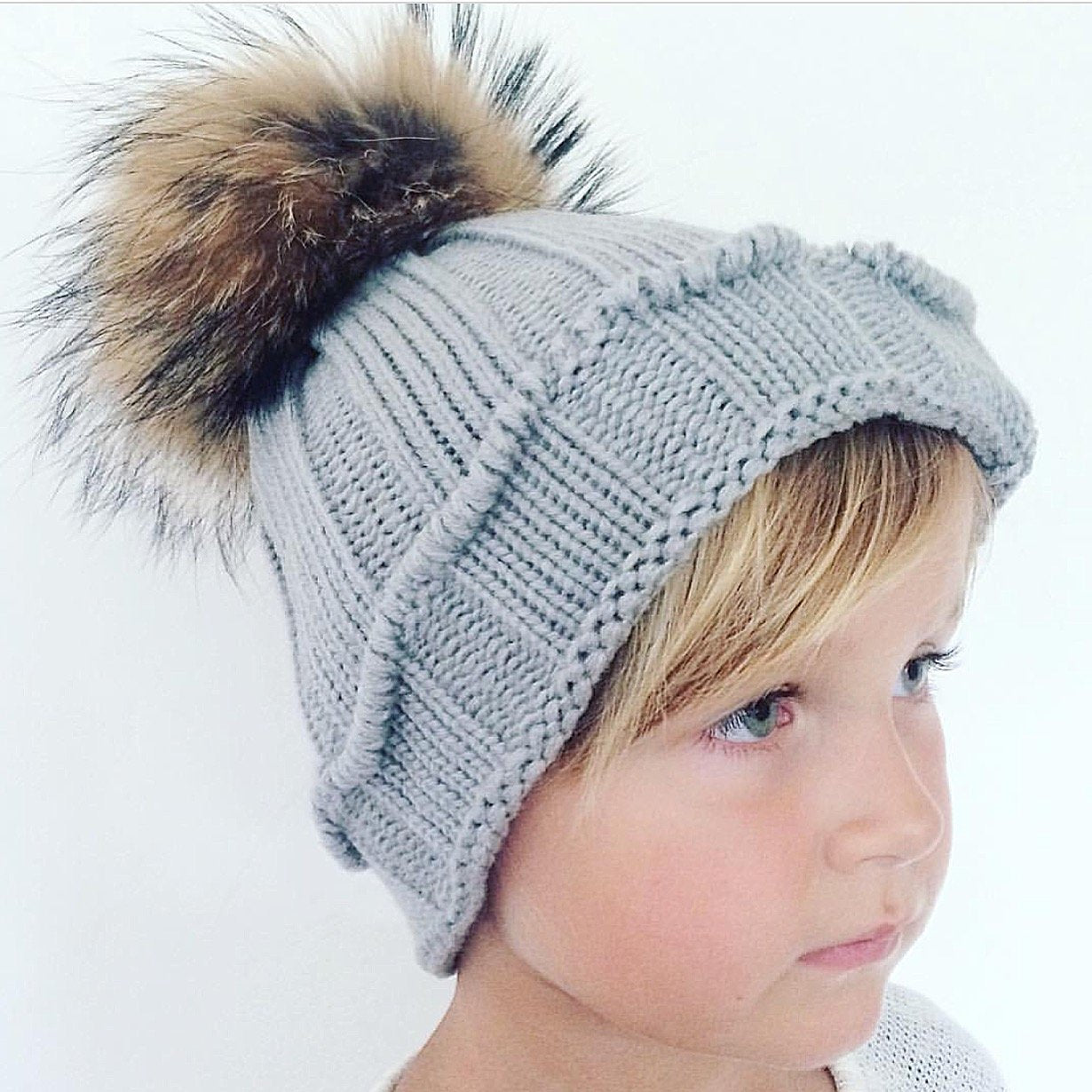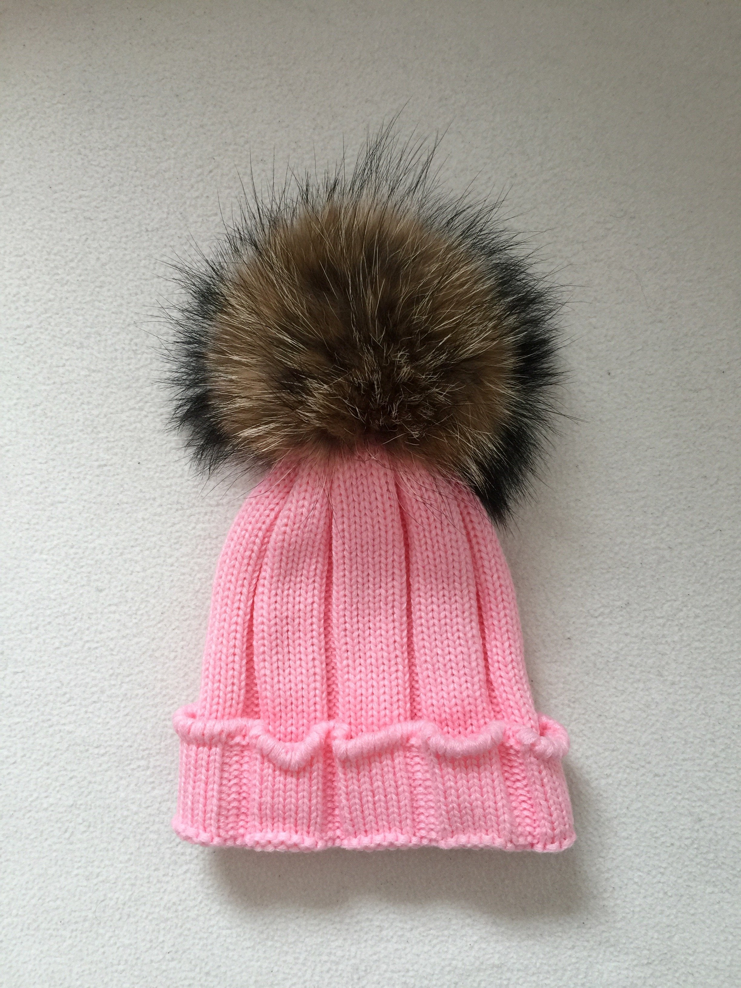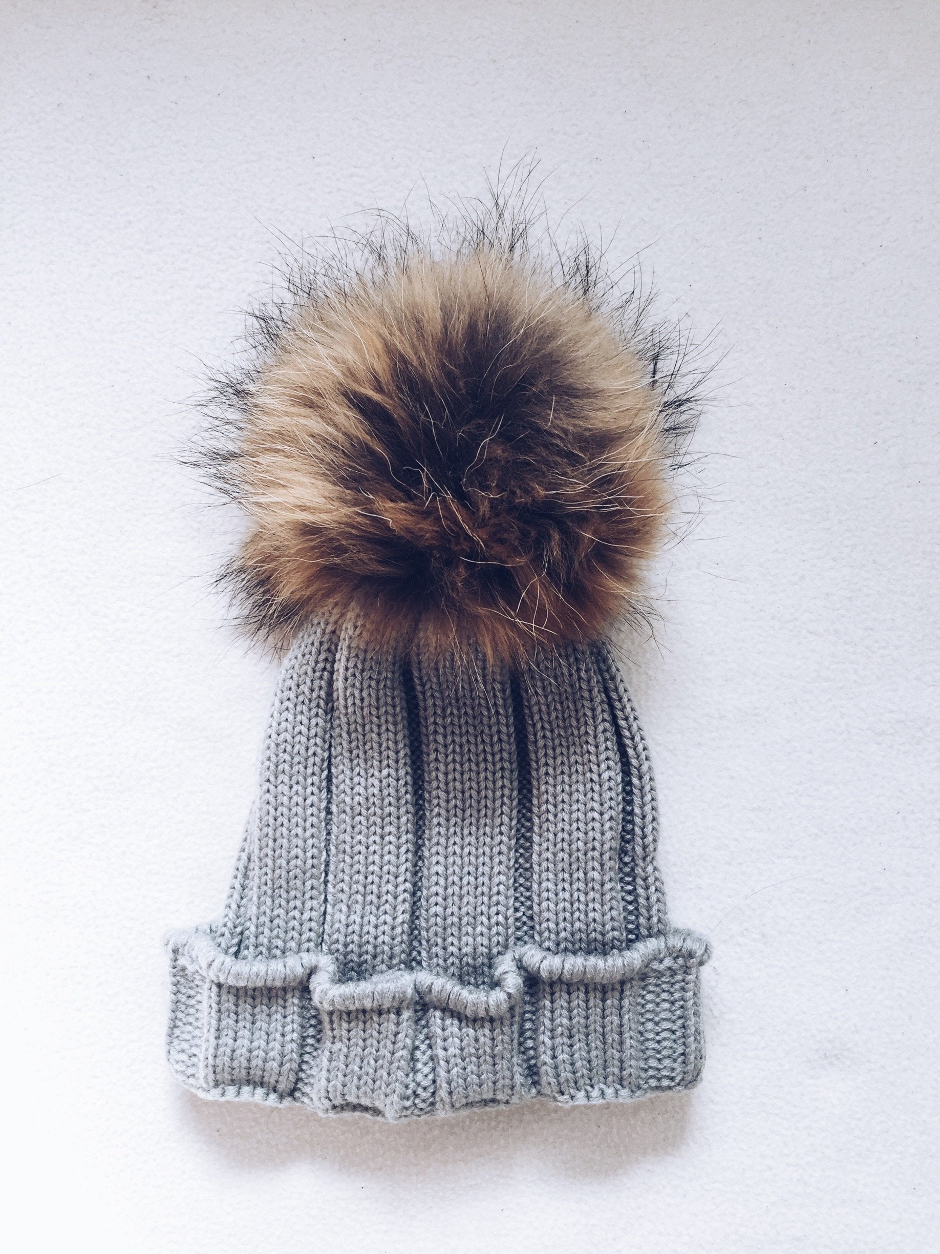 Big kids-Mama rib hat with Natural PomPom ( fits kids from 8 months up to Adult size,One Size)perfect if you want to do some twinning with your child!!