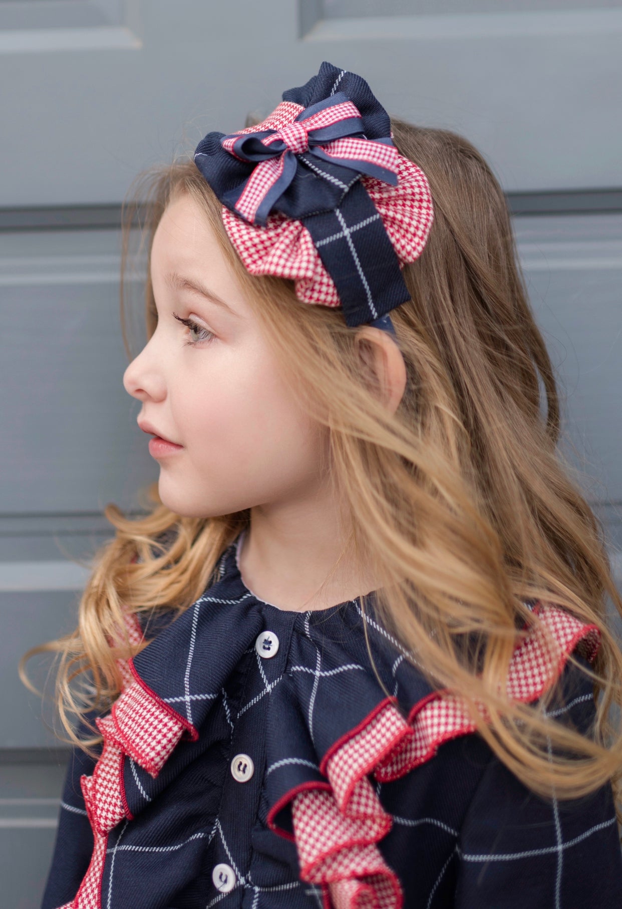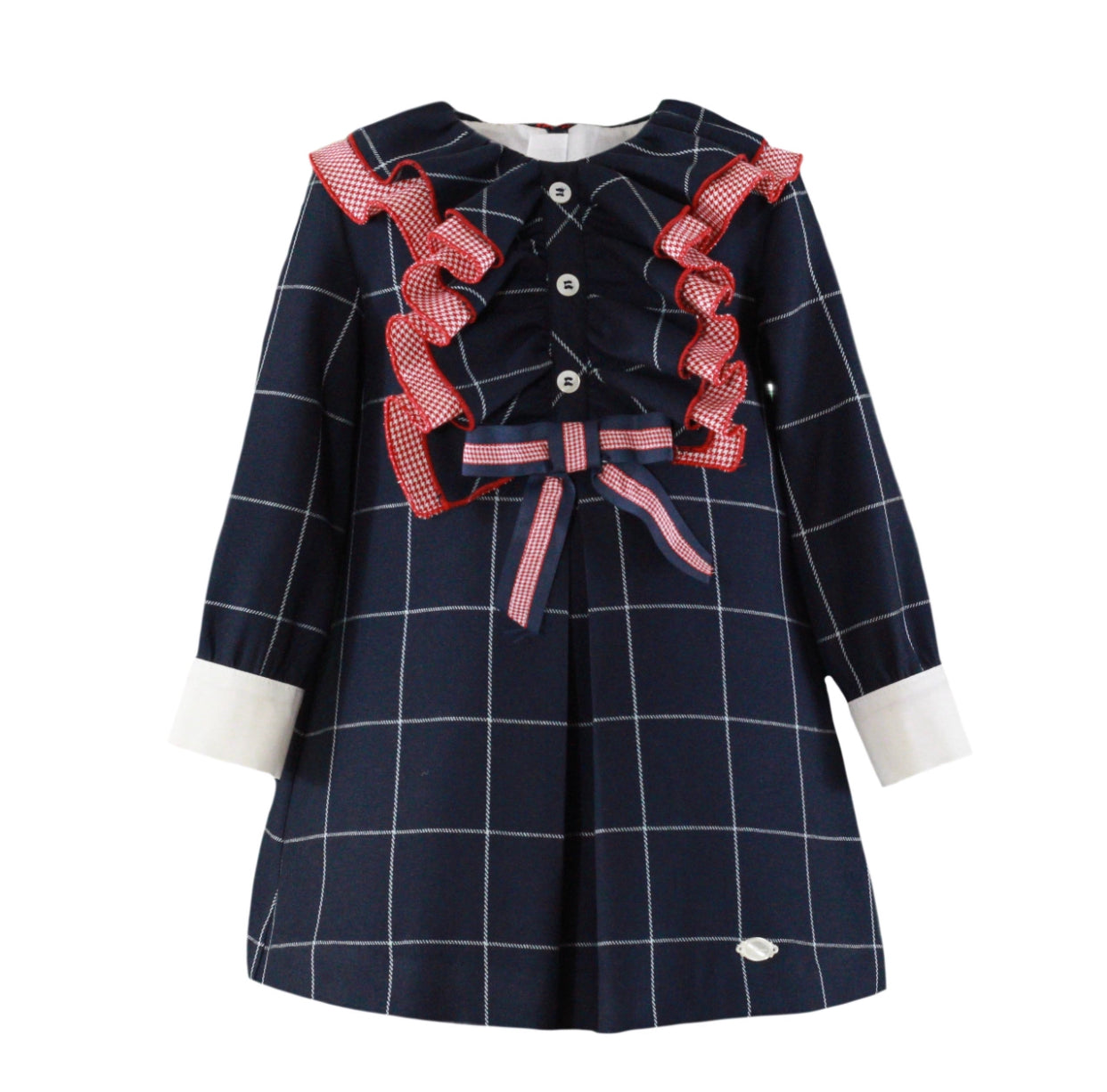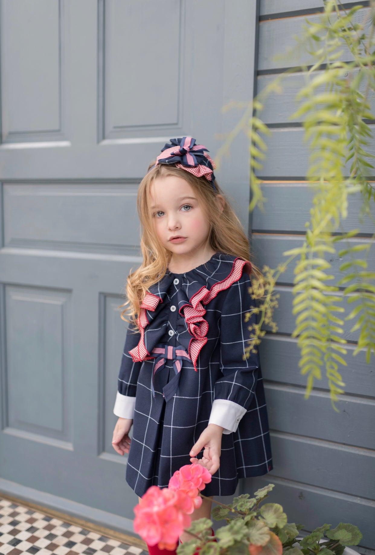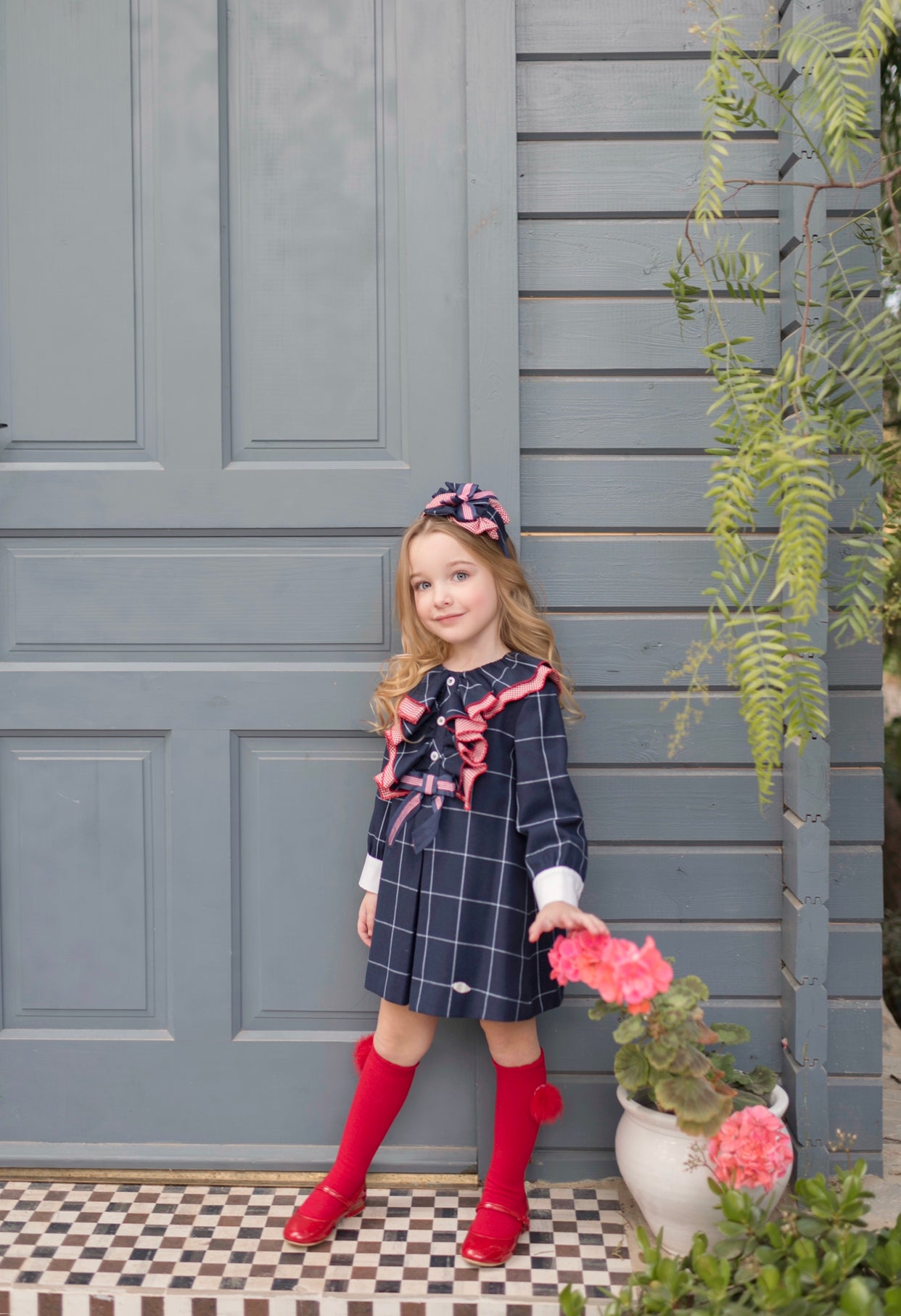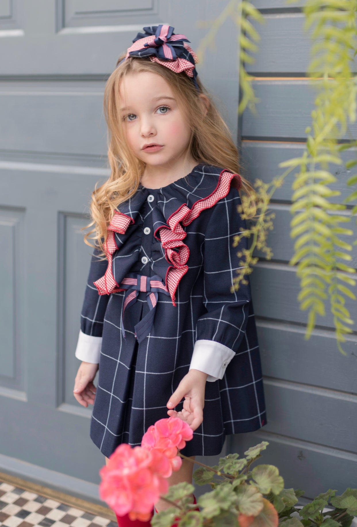 MI LOVES Beautiful Navy tartan dress with frill details.