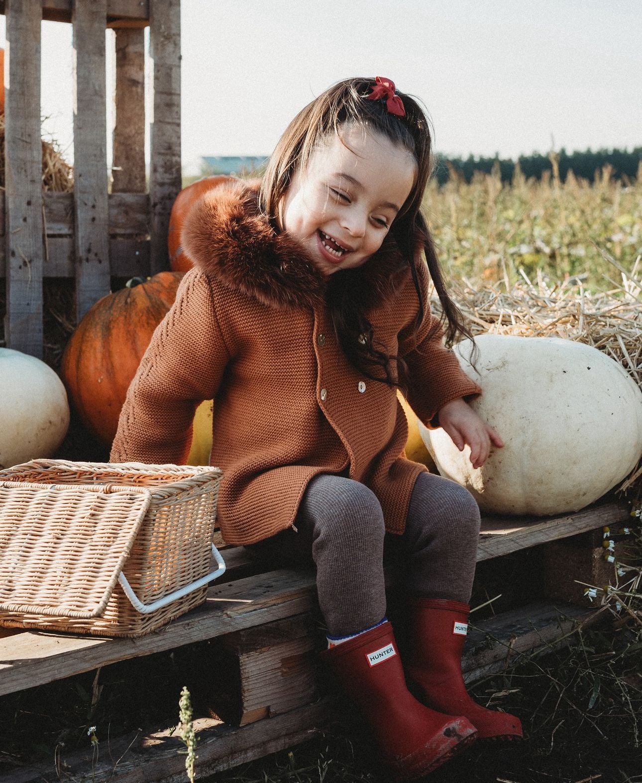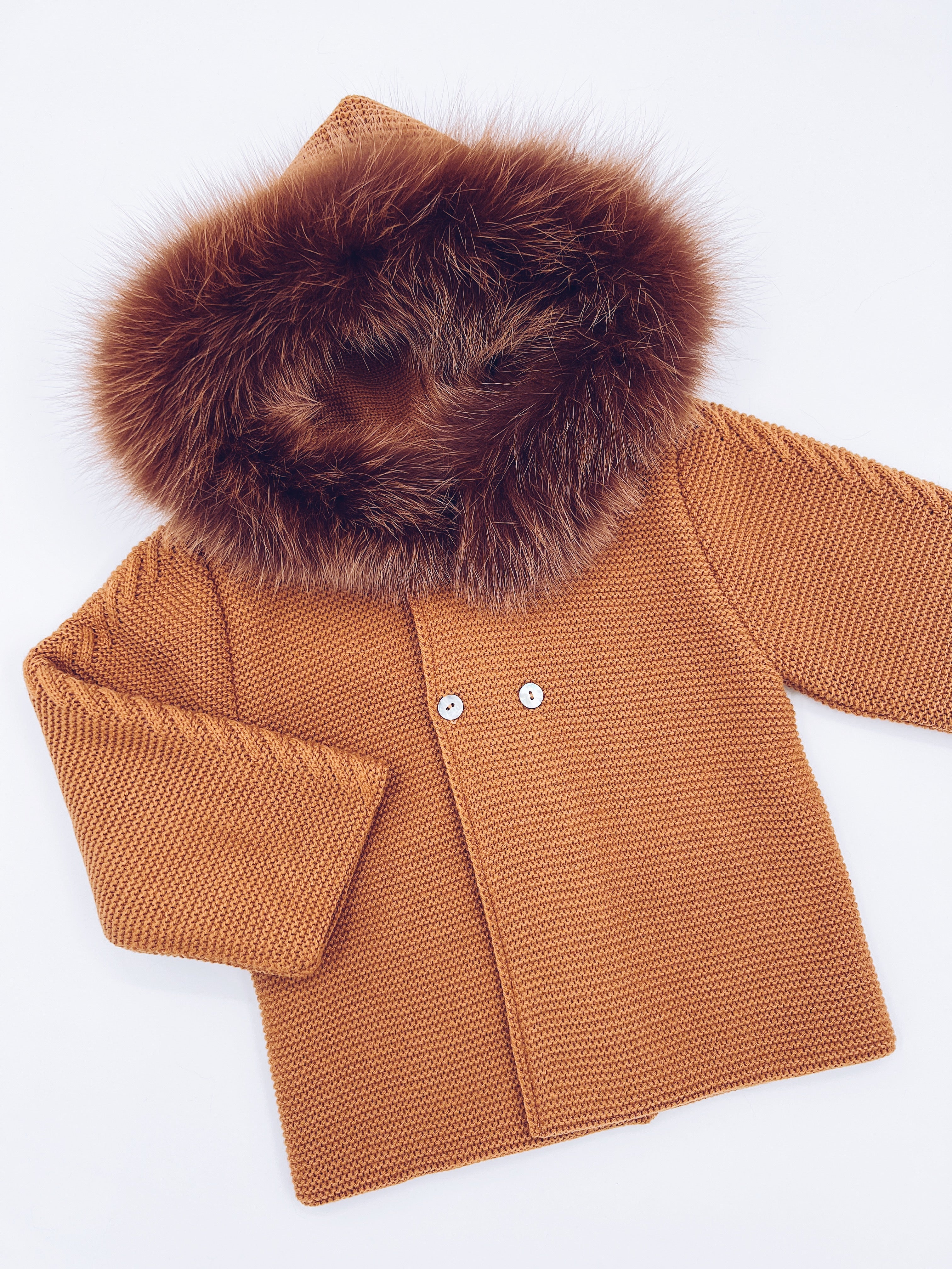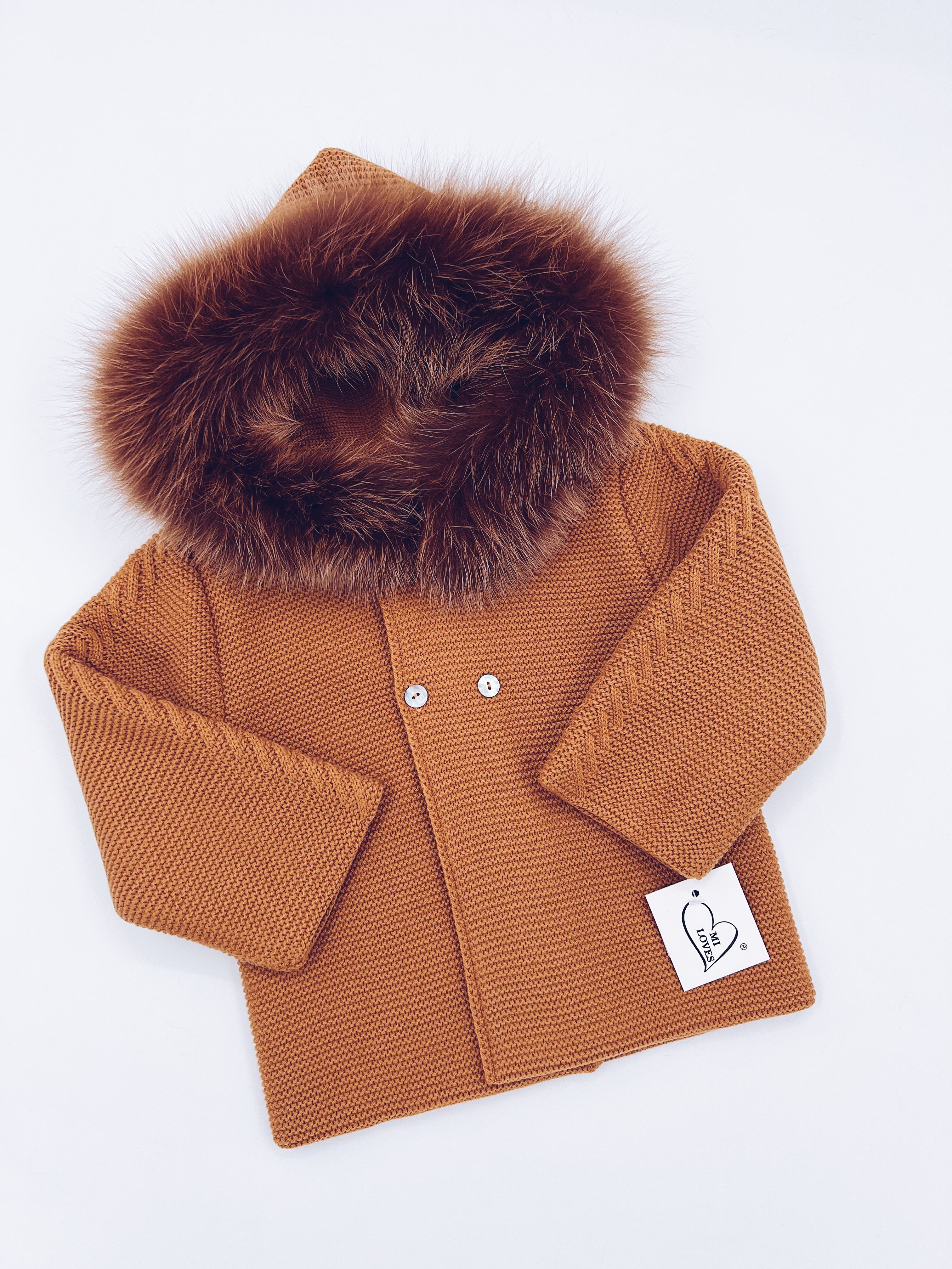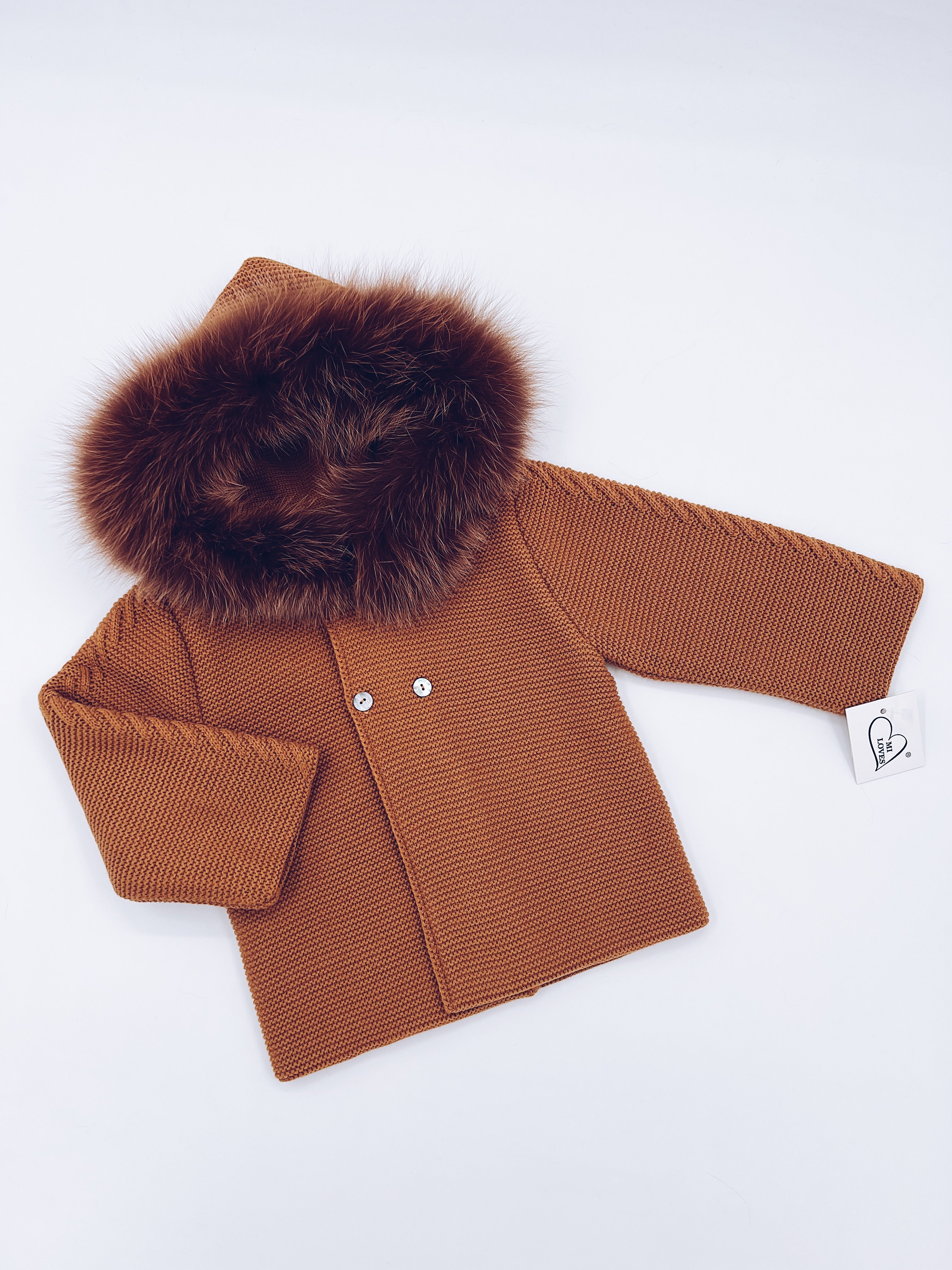 MI LOVES Beautiful Caramel Knitted Cardigan with Luxurious fur trim.