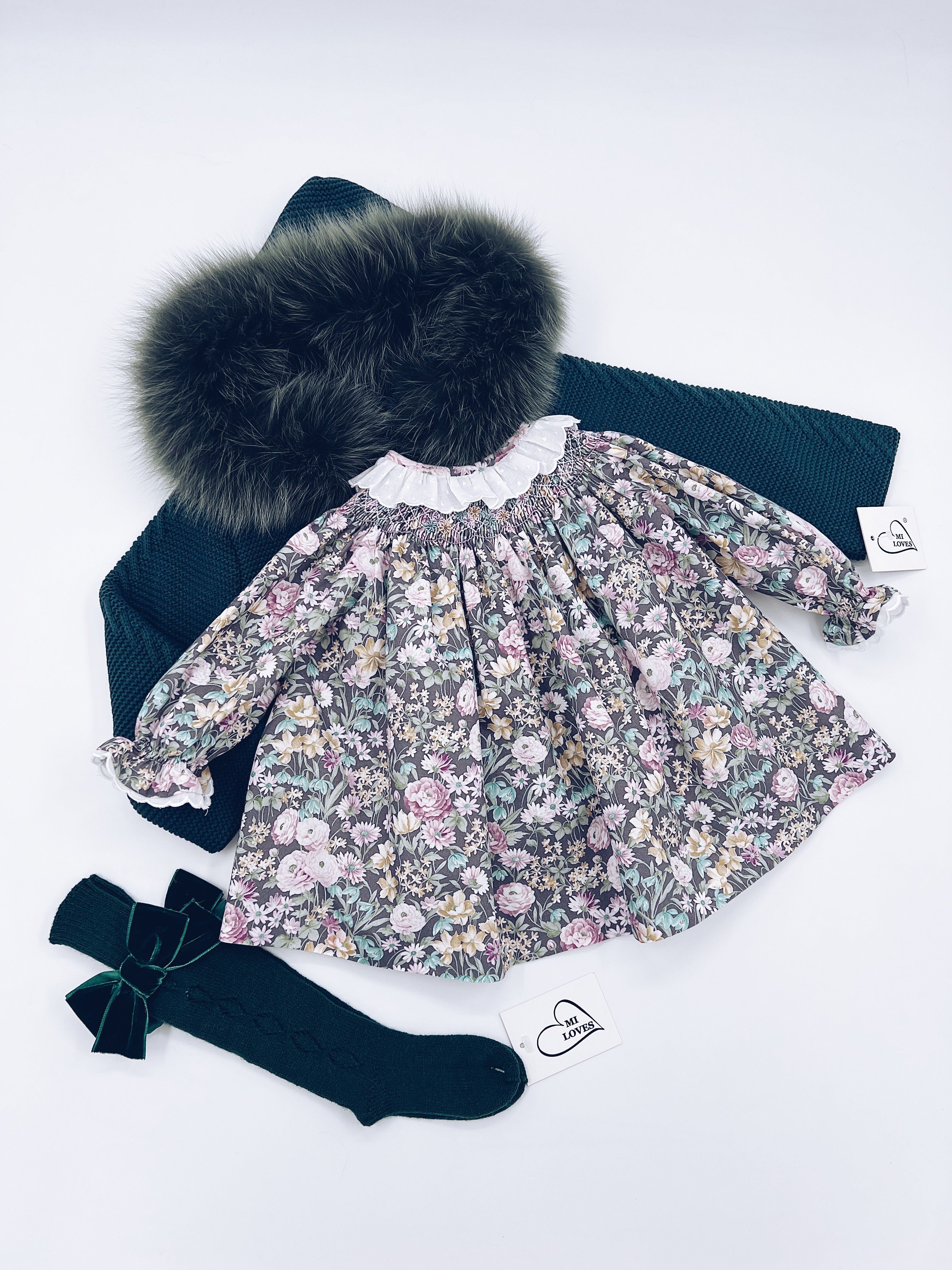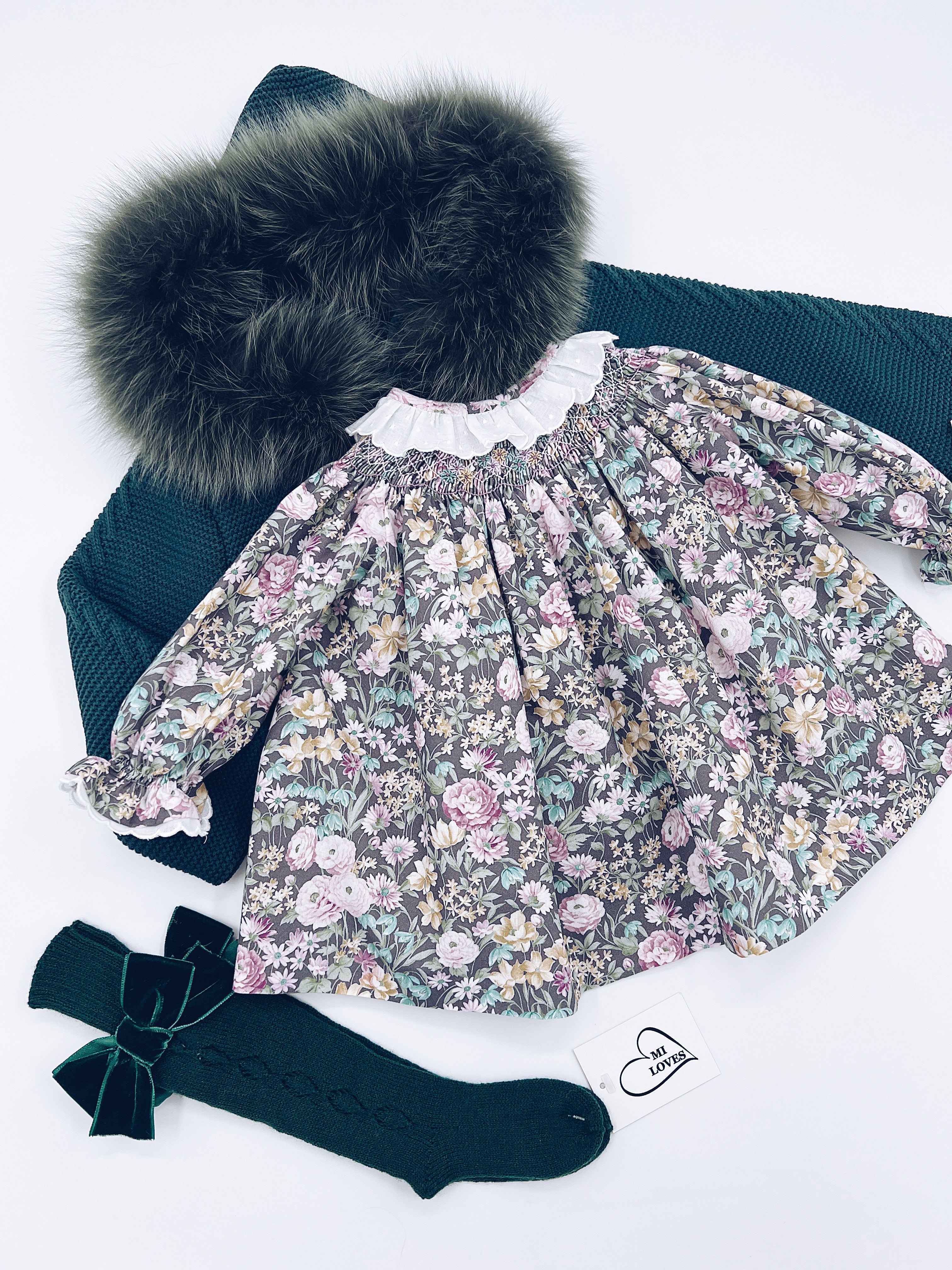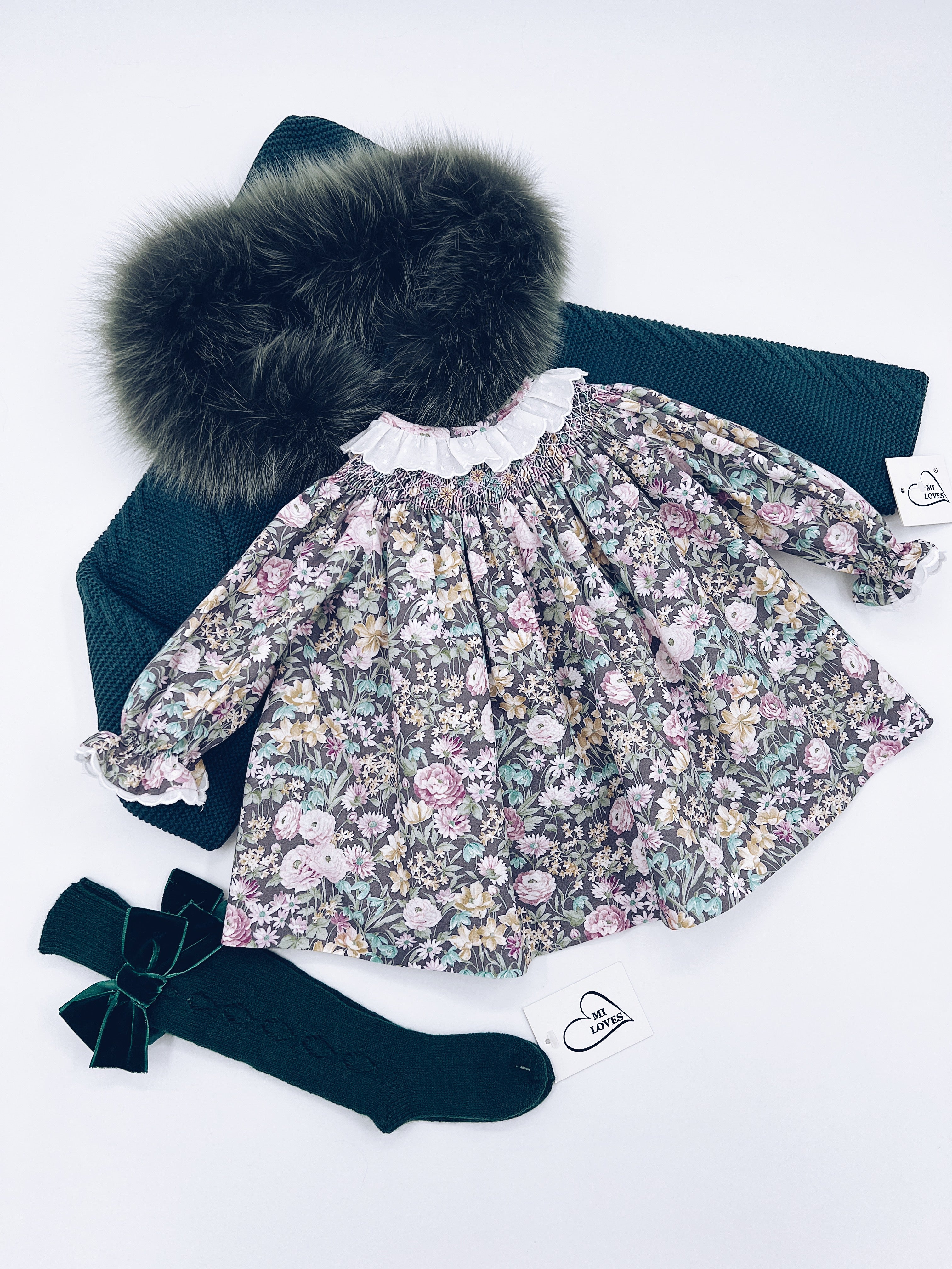 MI LOVES Beautiful Floral Print Dress with hand smoked details.