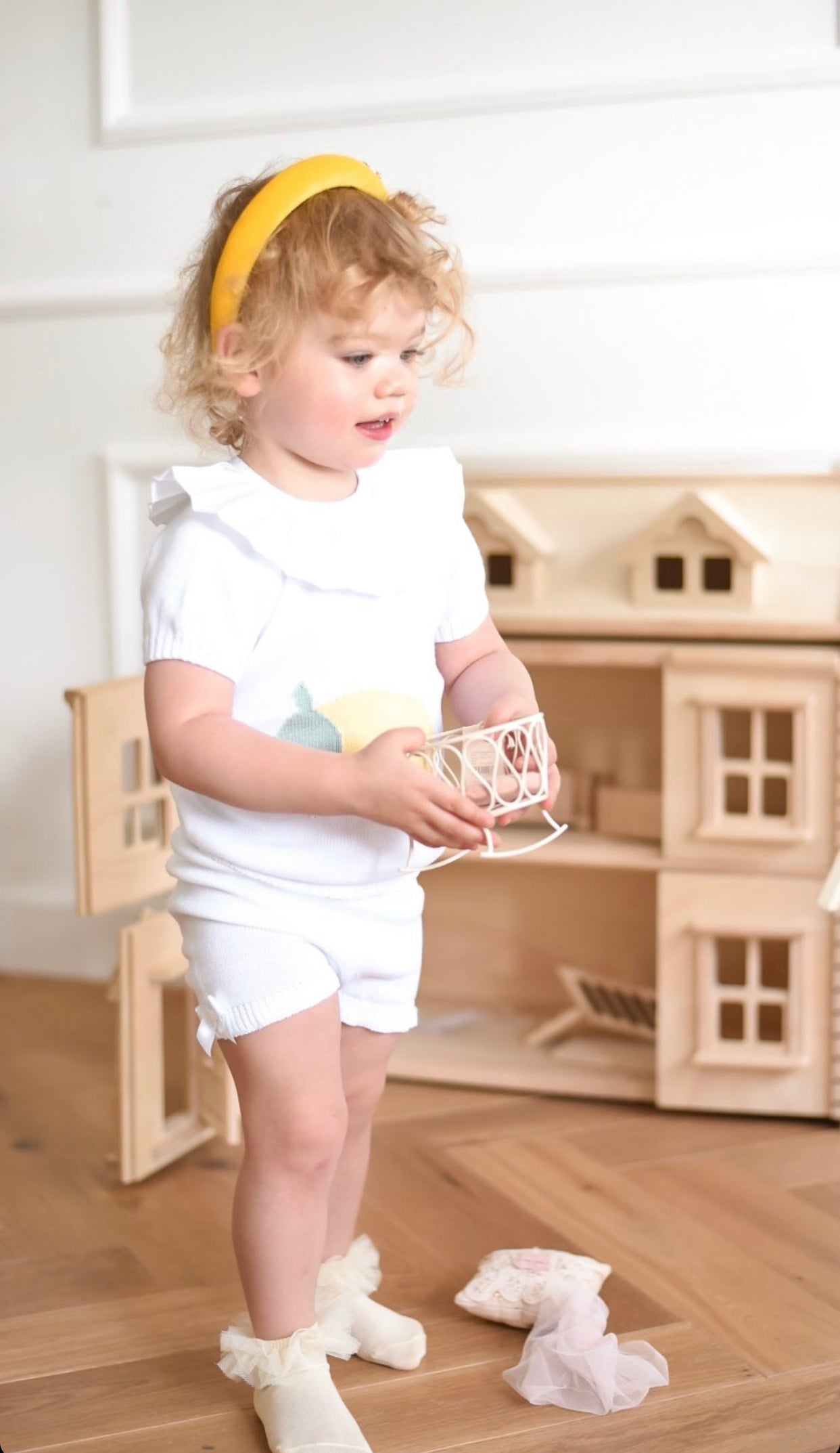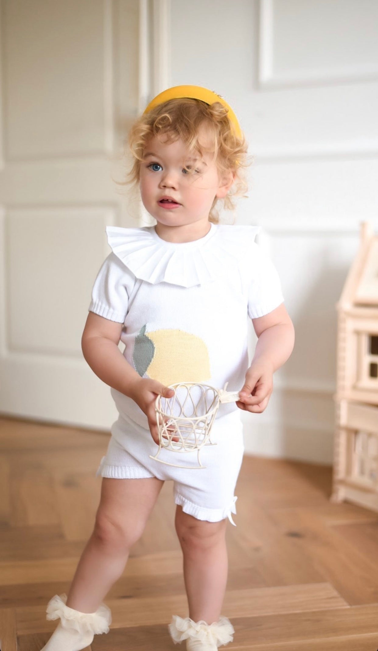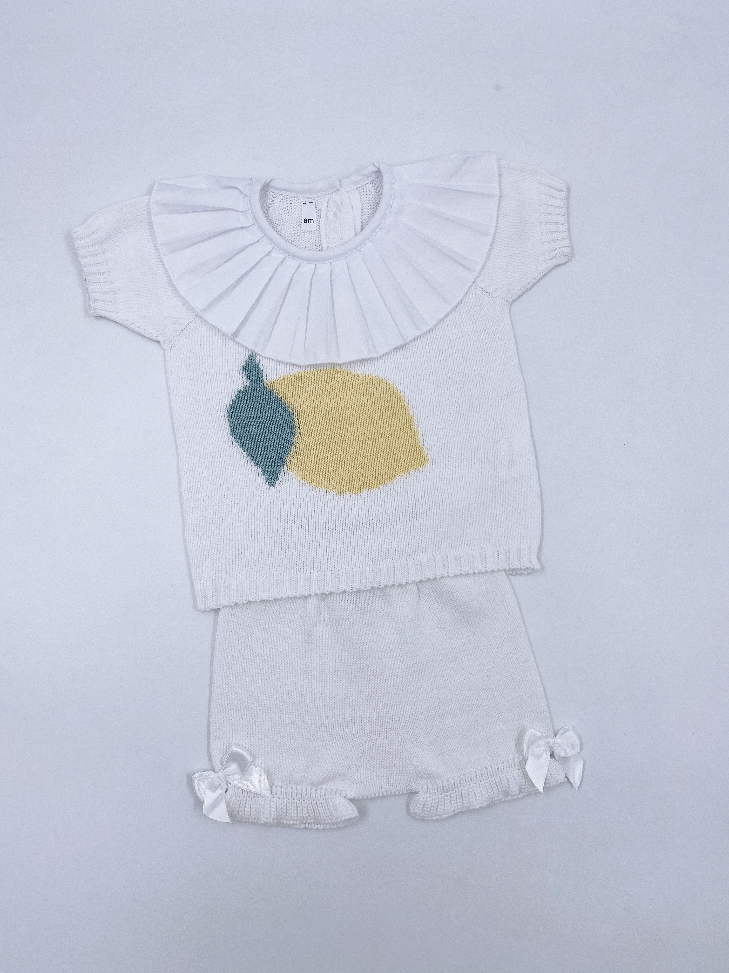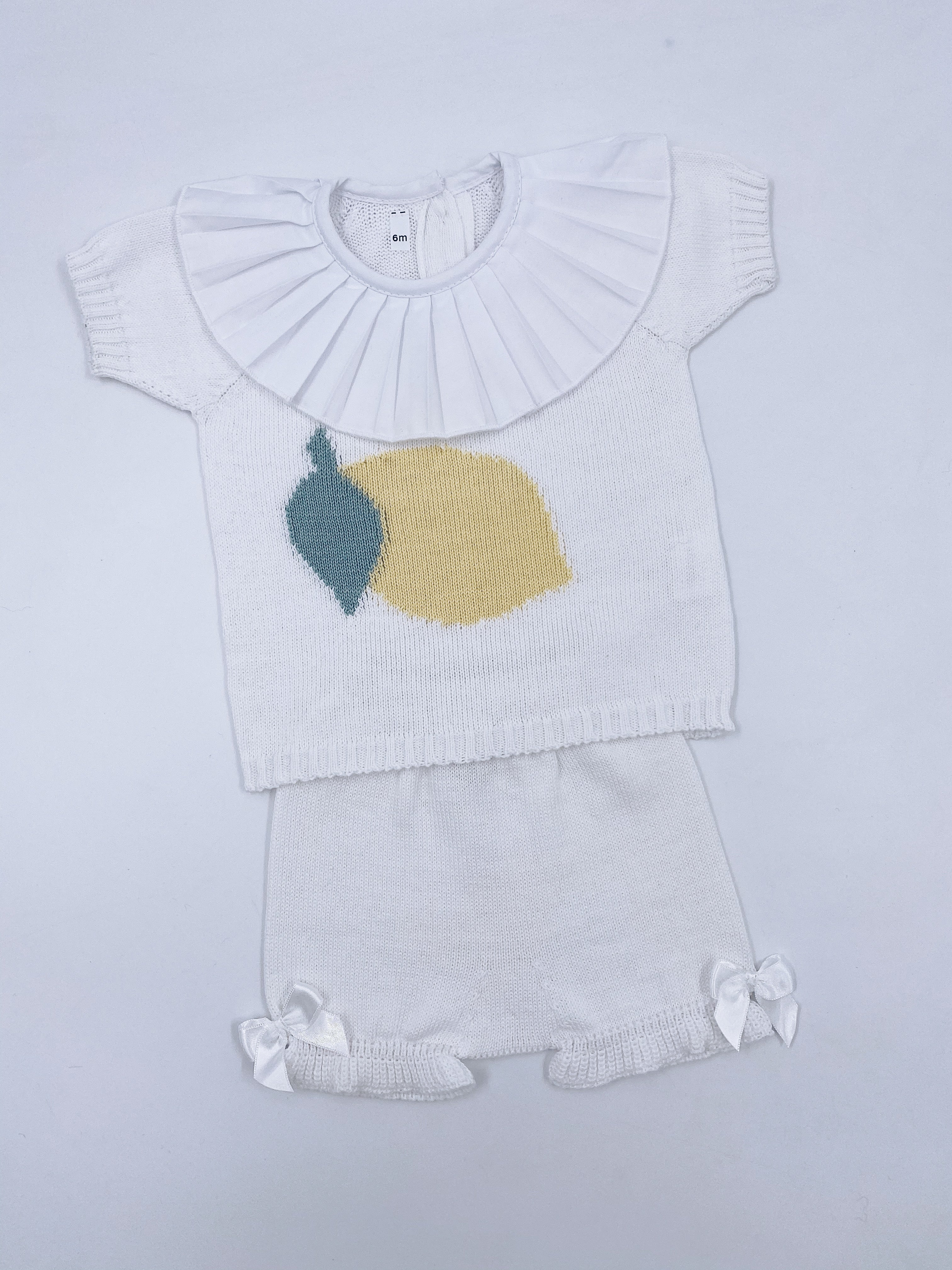 MI LOVES Lemon Fine Knit Summer set with ruffle neck details.