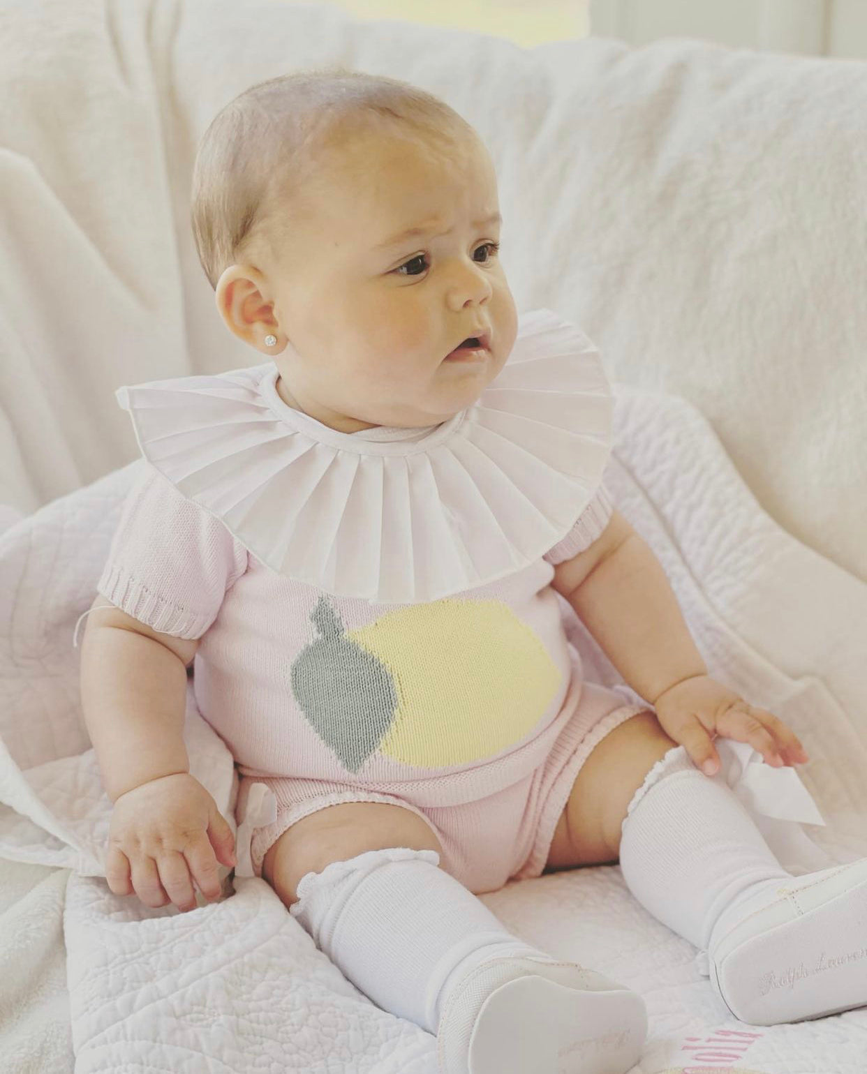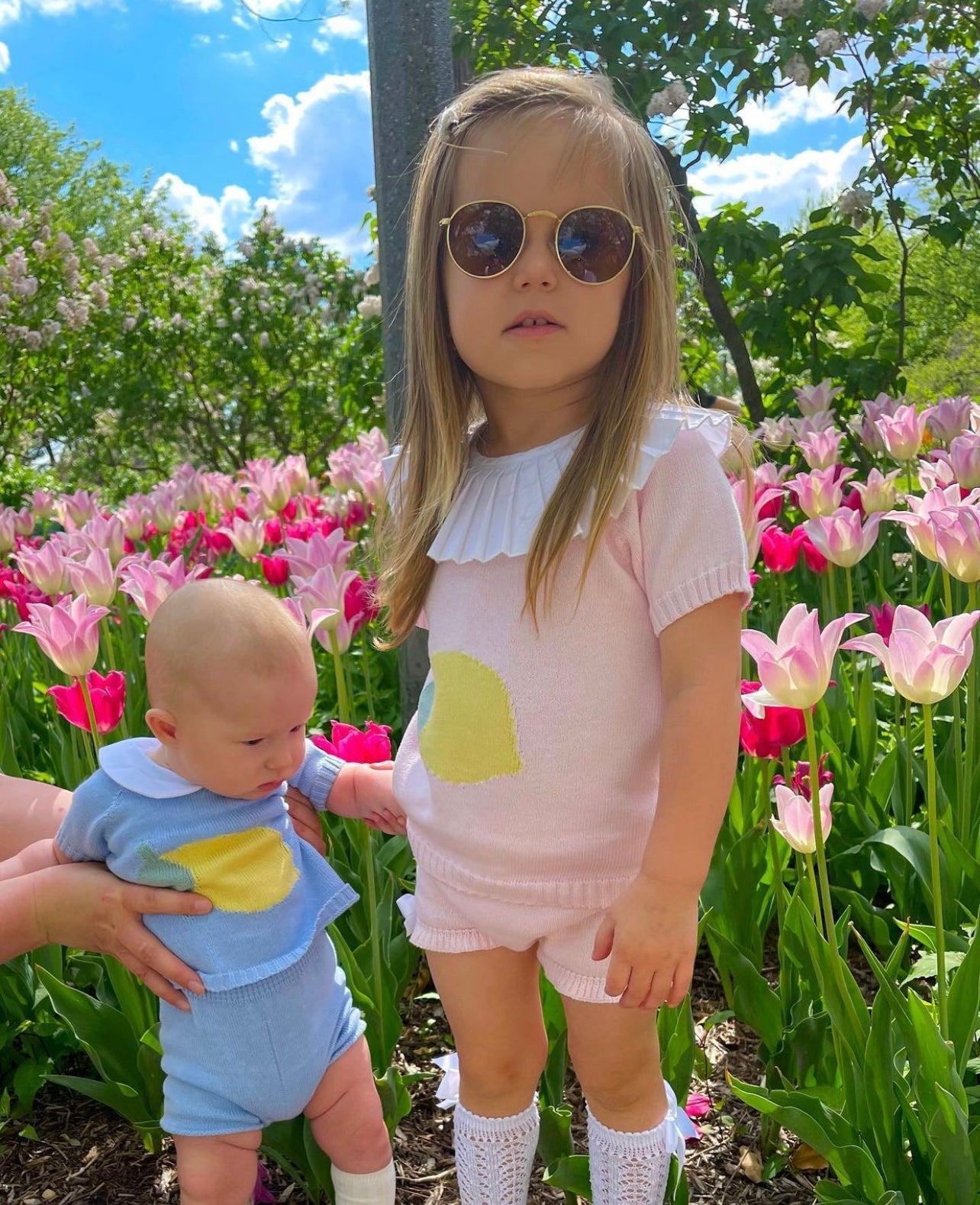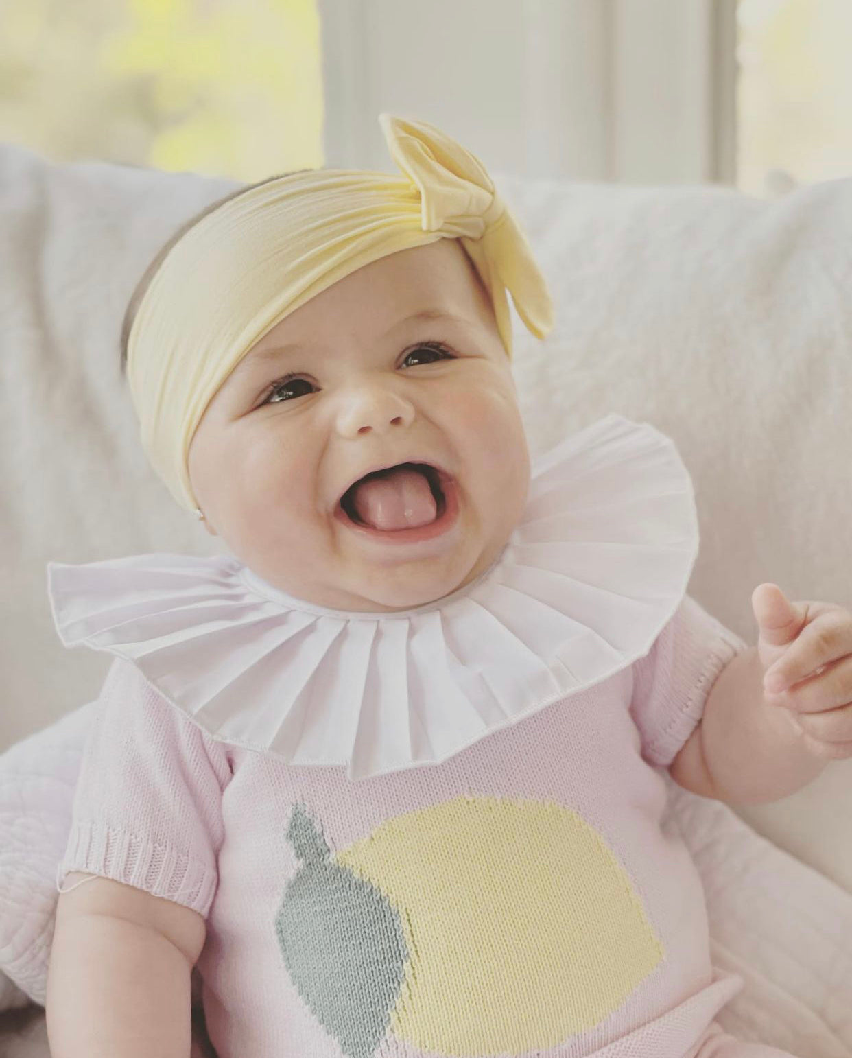 MI LOVES Lemon Fine Knit Summer set with ruffle neck details.