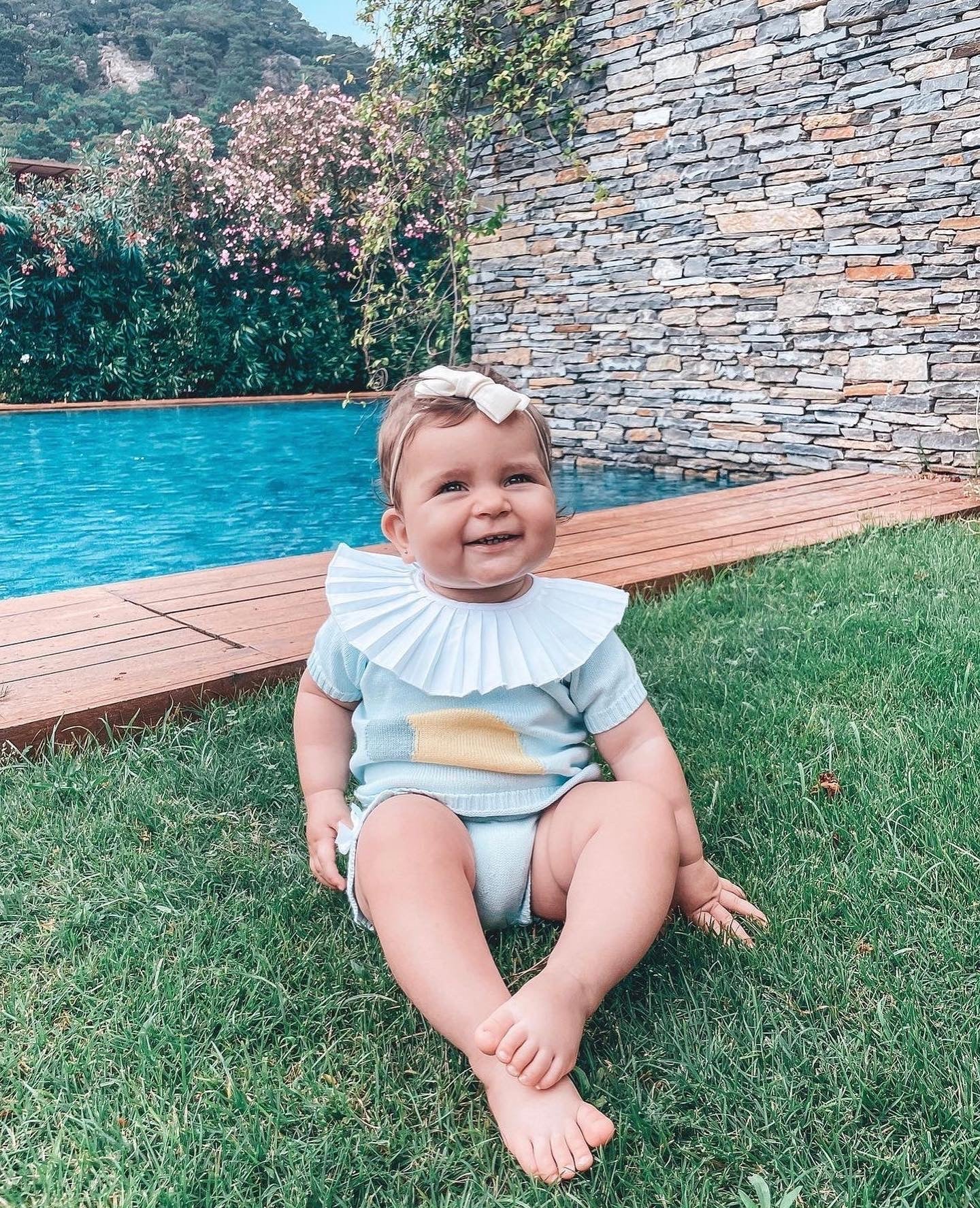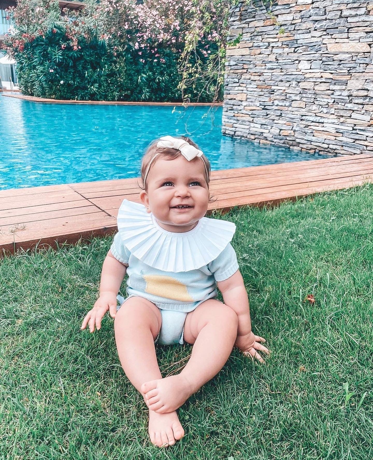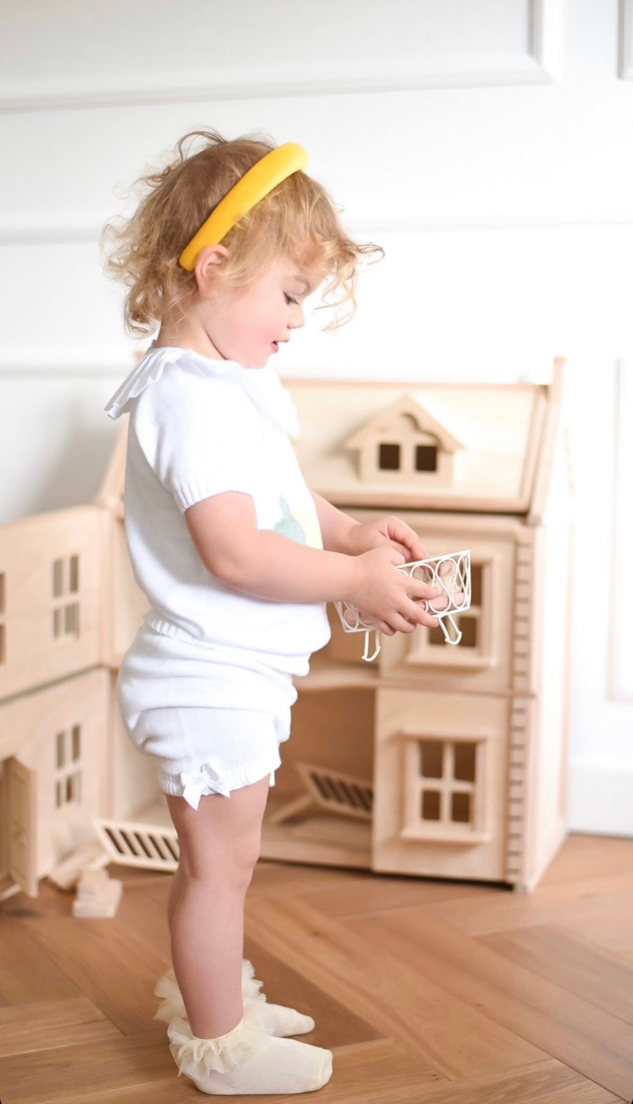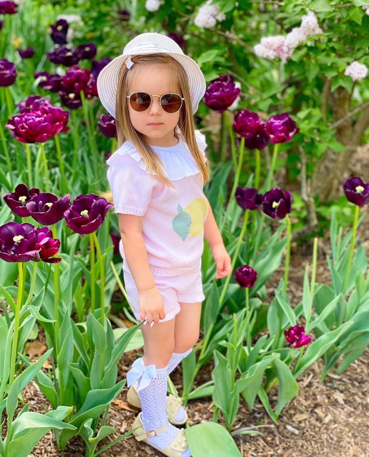 MI LOVES Lemon Fine Knit Summer set with ruffle neck details.