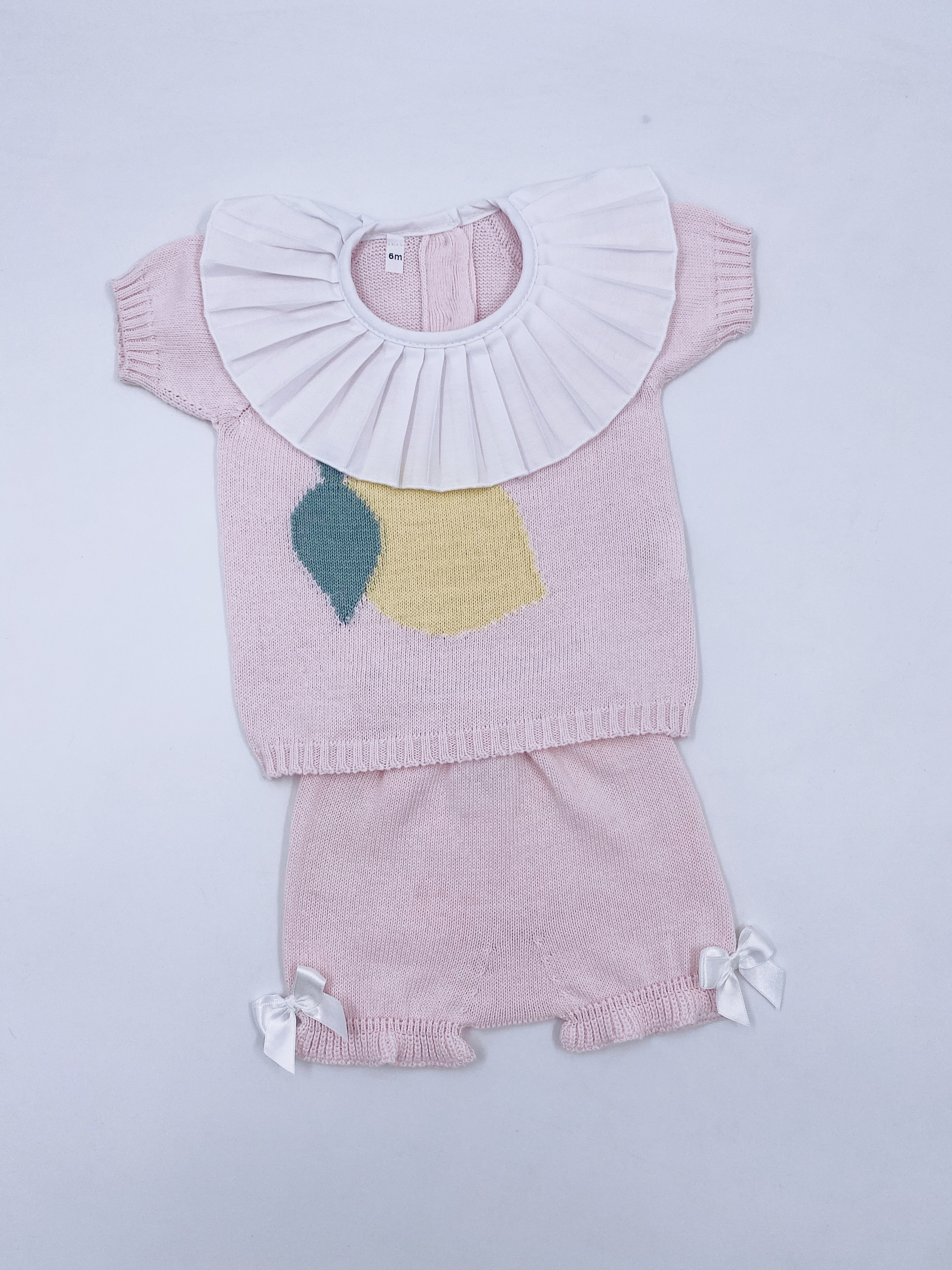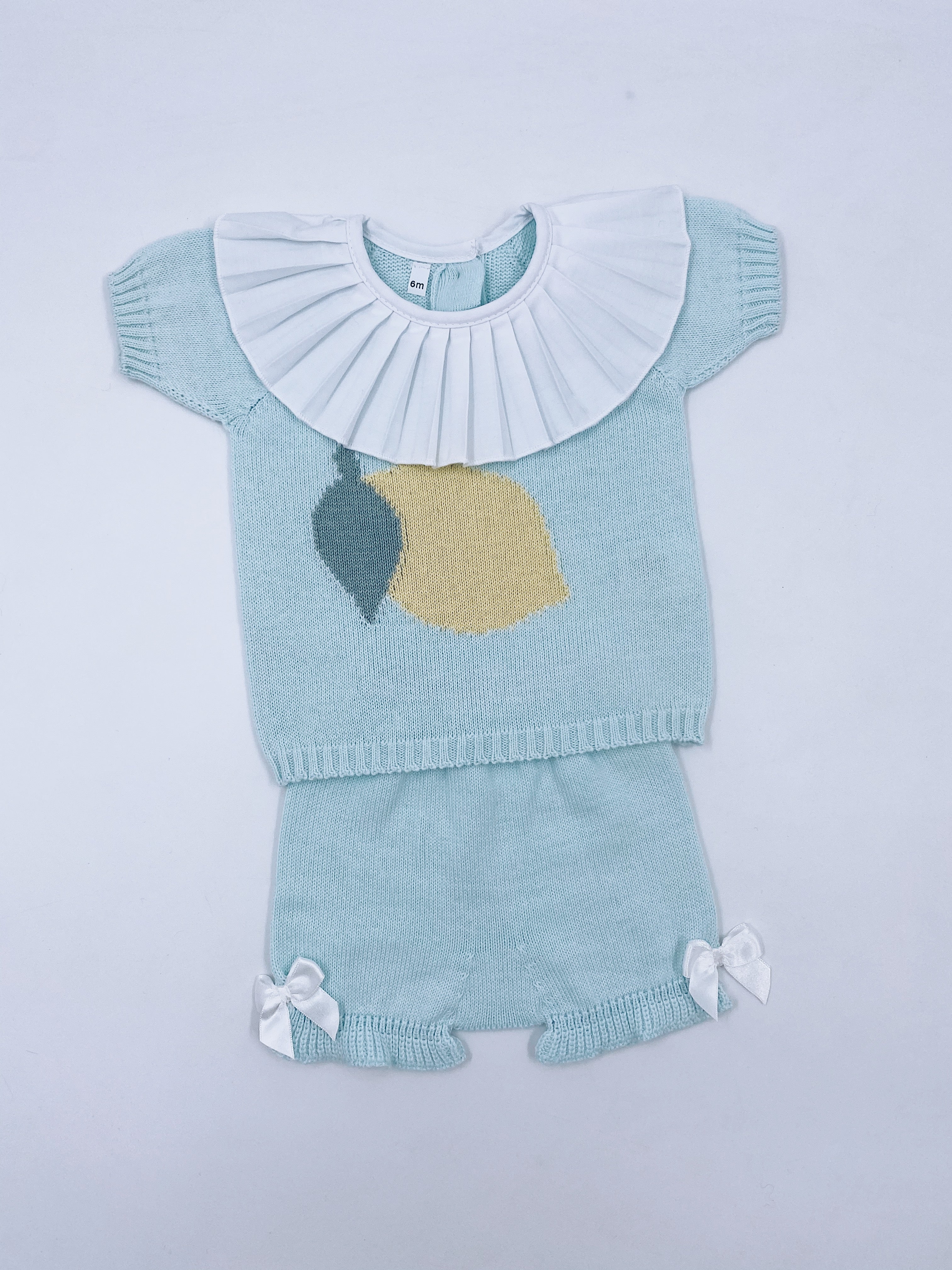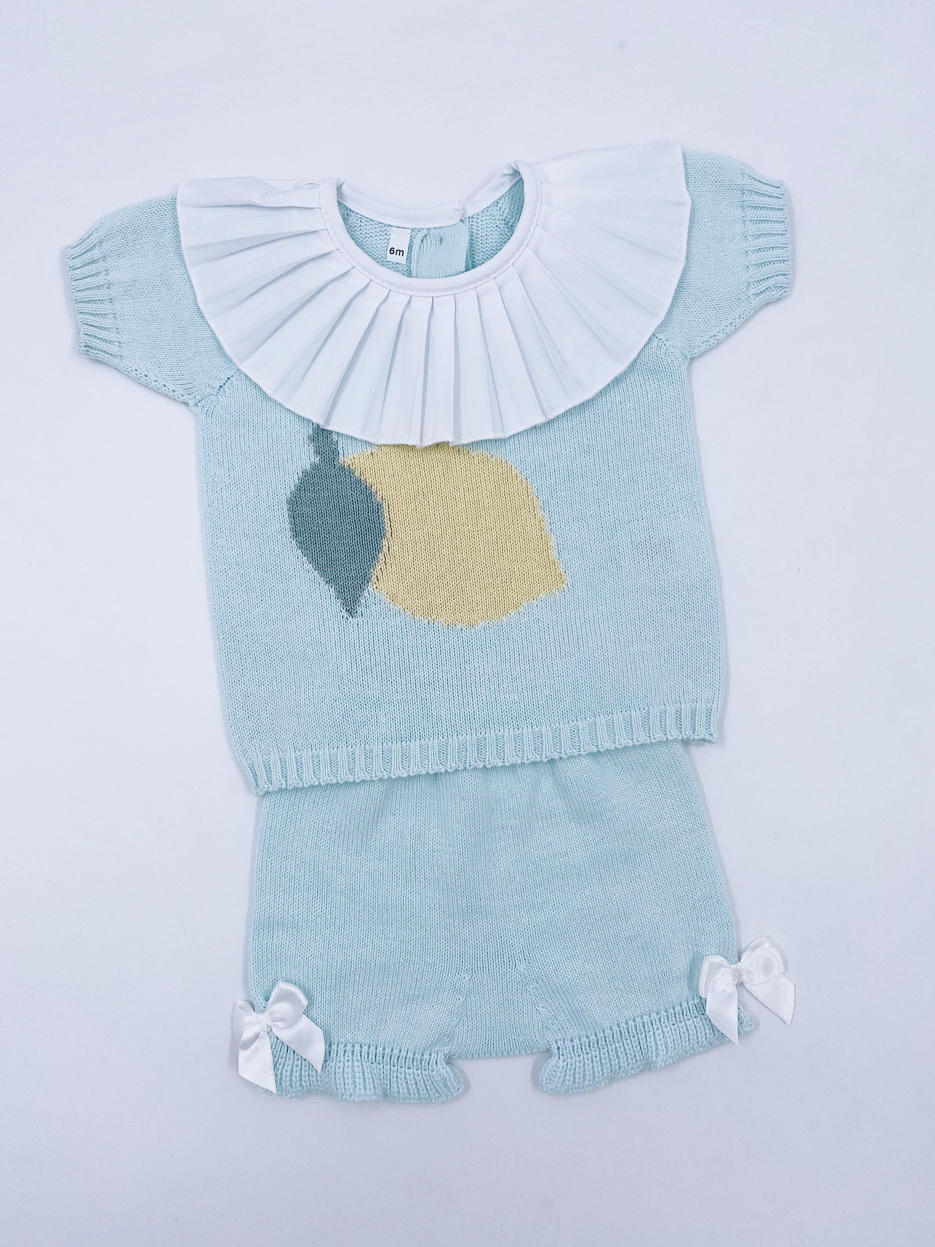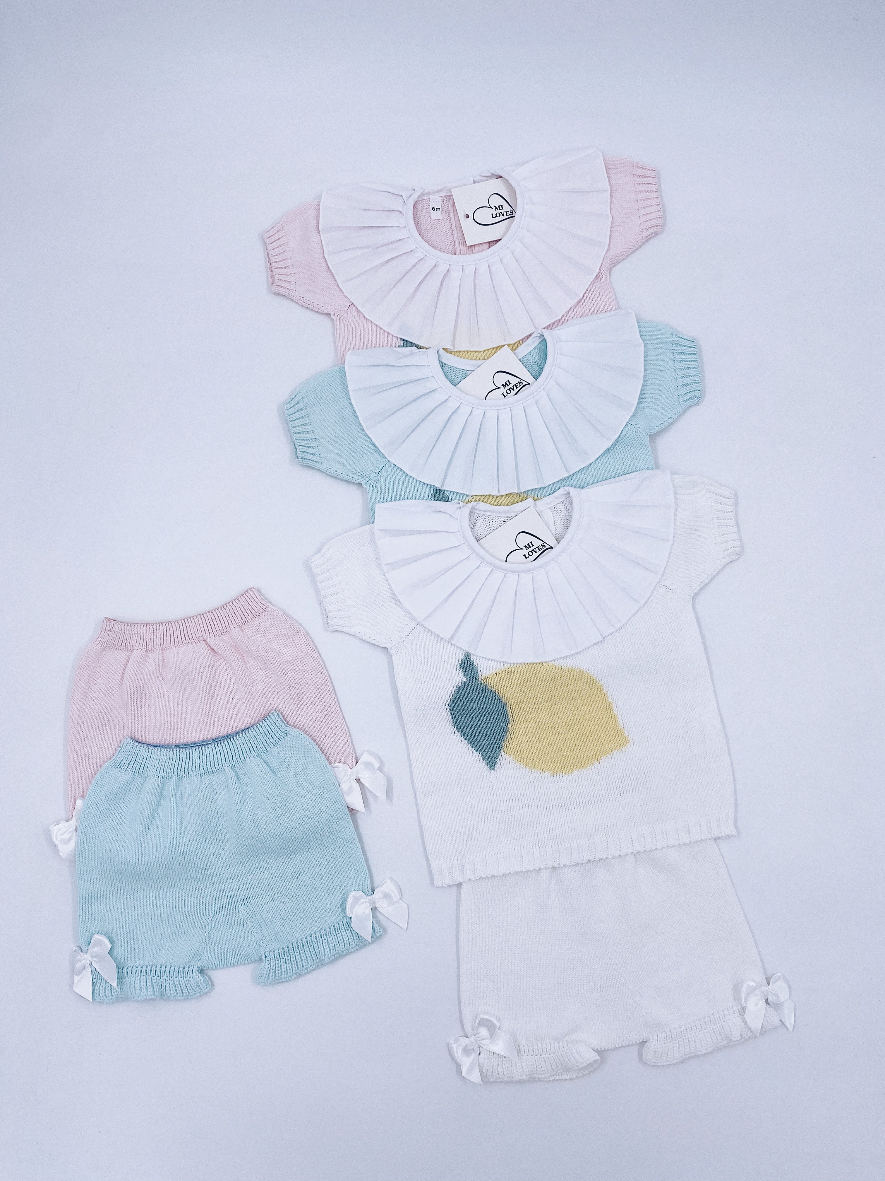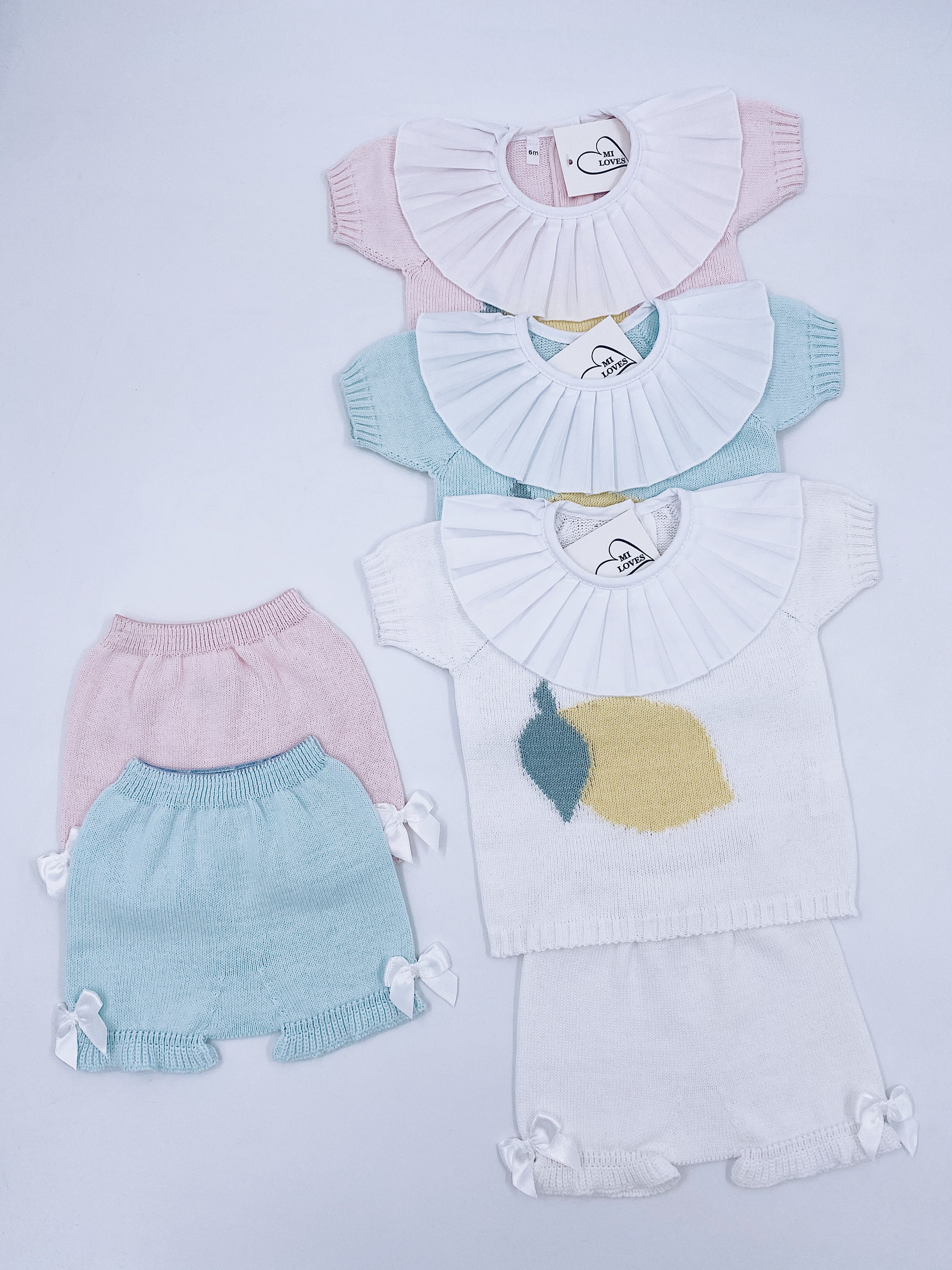 MI LOVES Lemon Fine Knit Summer set with ruffle neck details