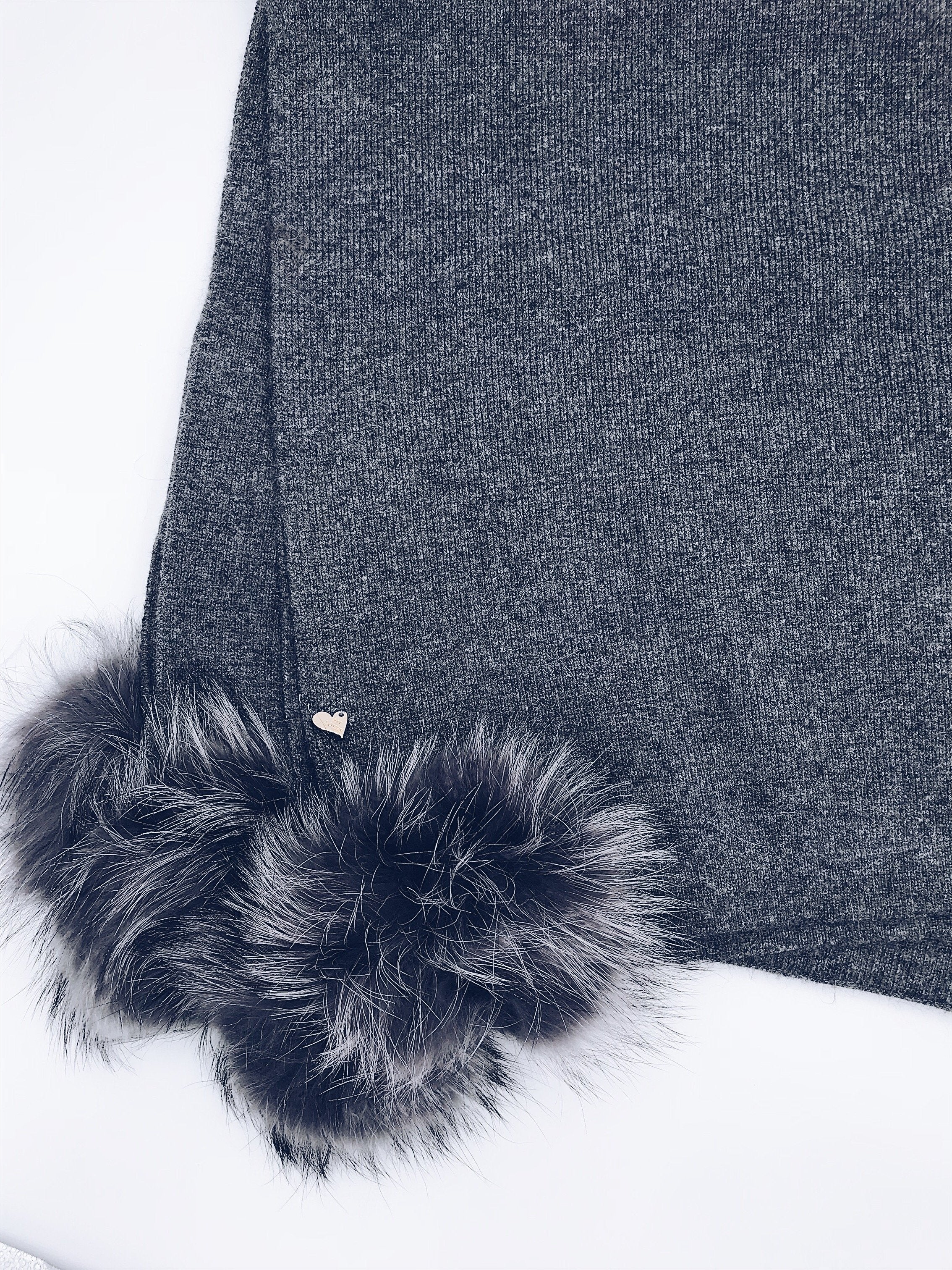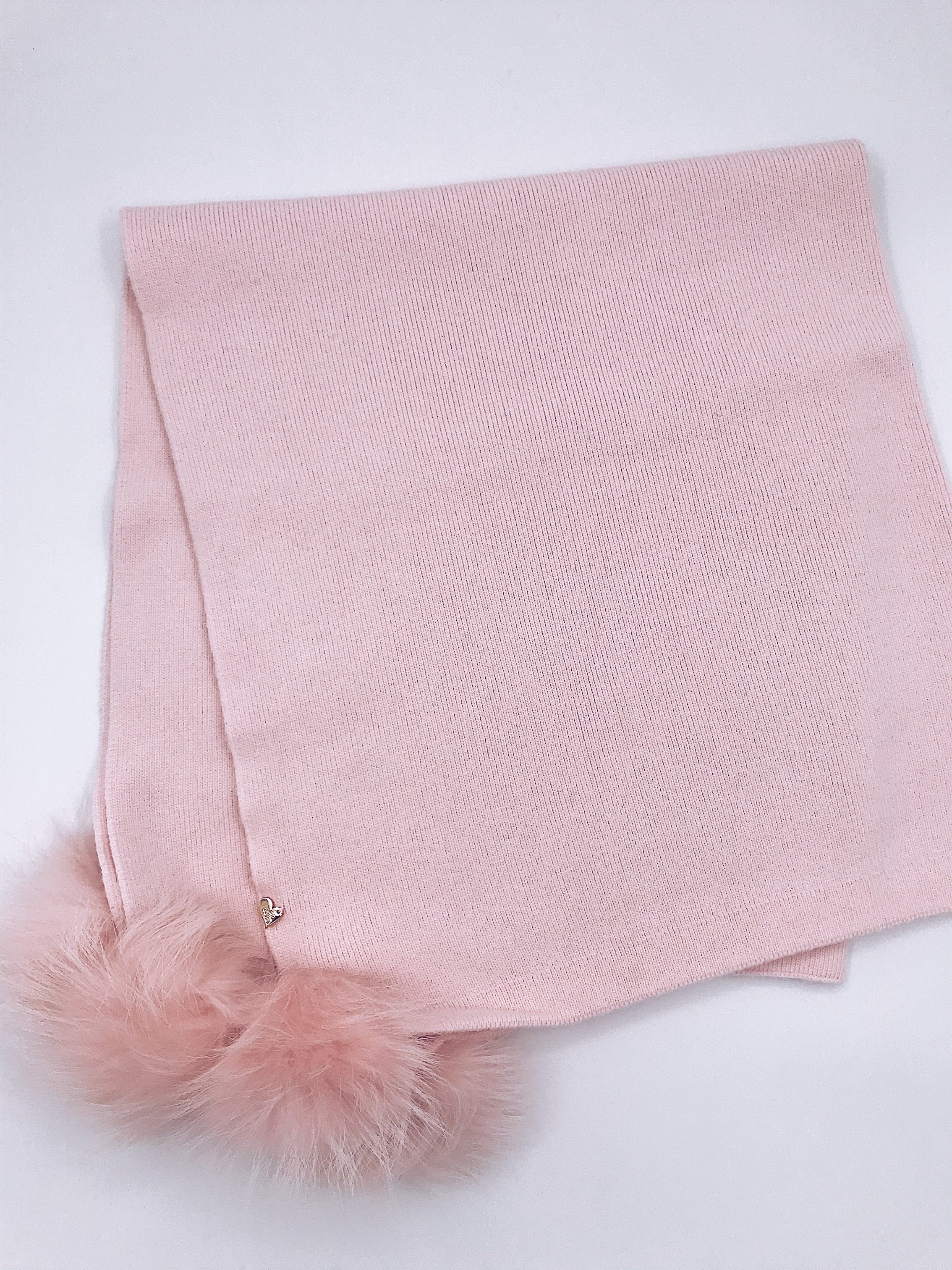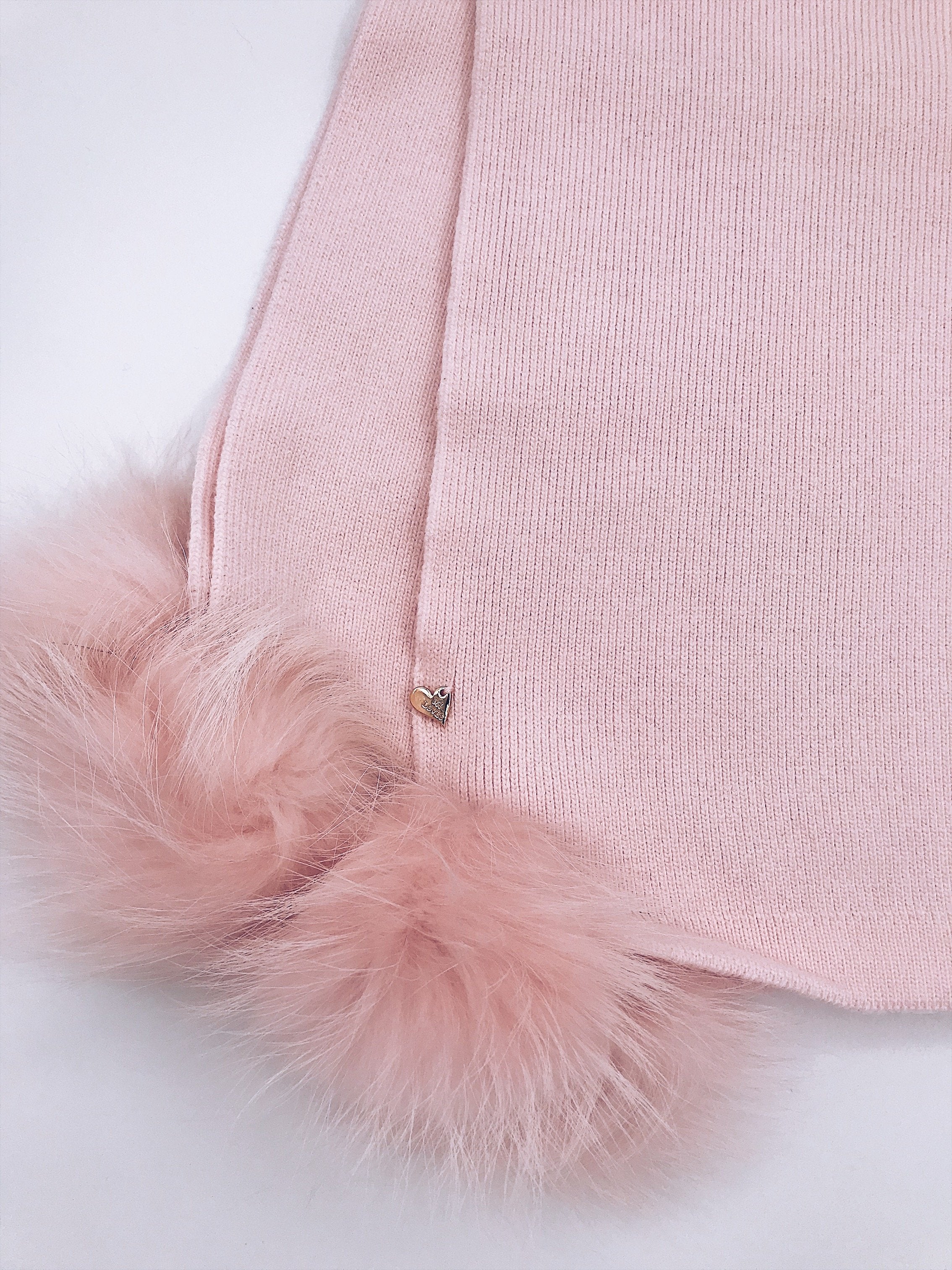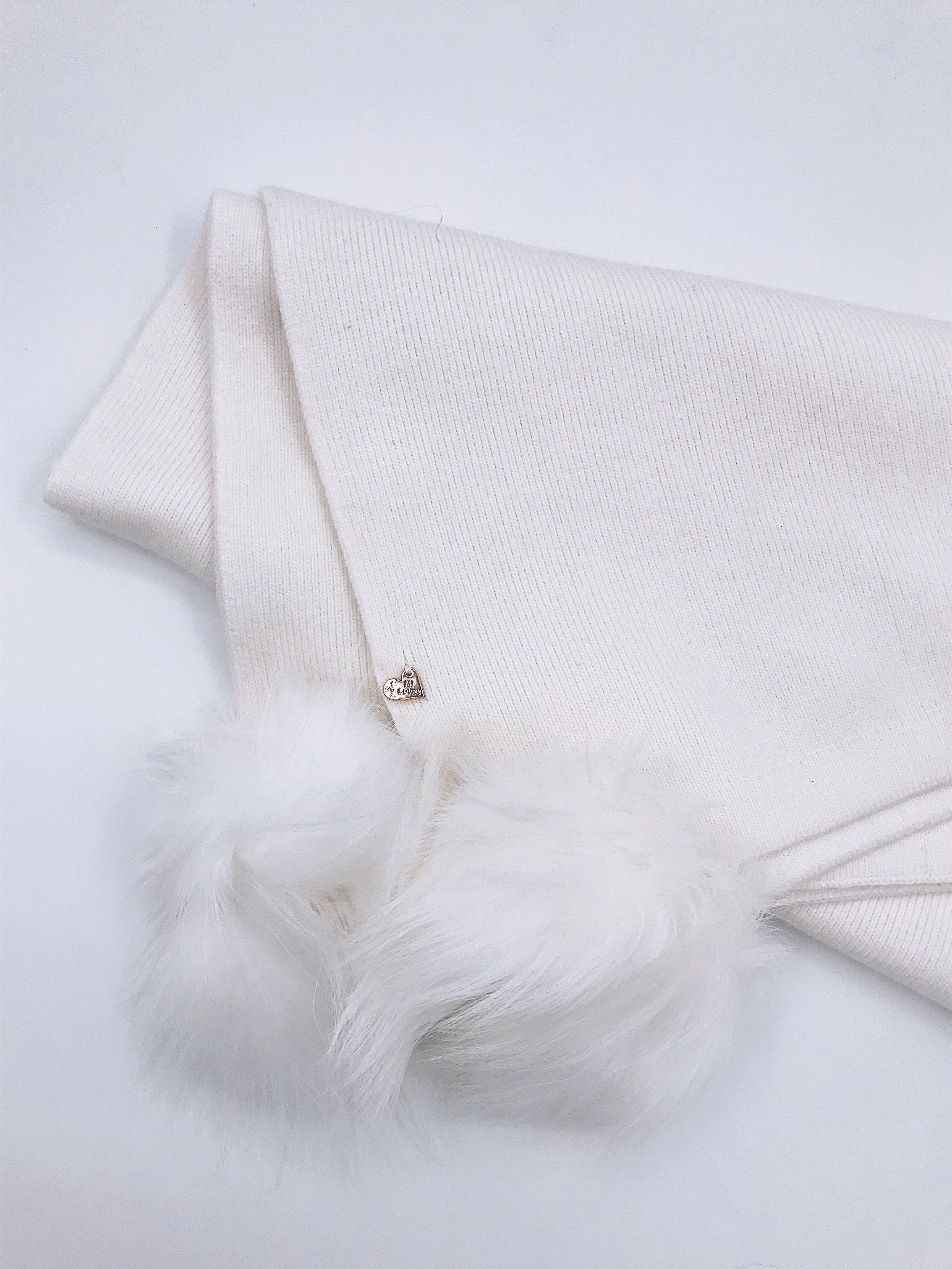 NEW!!MI LOVES SIGNATURE Knitted Angora baby blanket with 4 pompoms !Super soft and cosy ,perfect for winter walks !