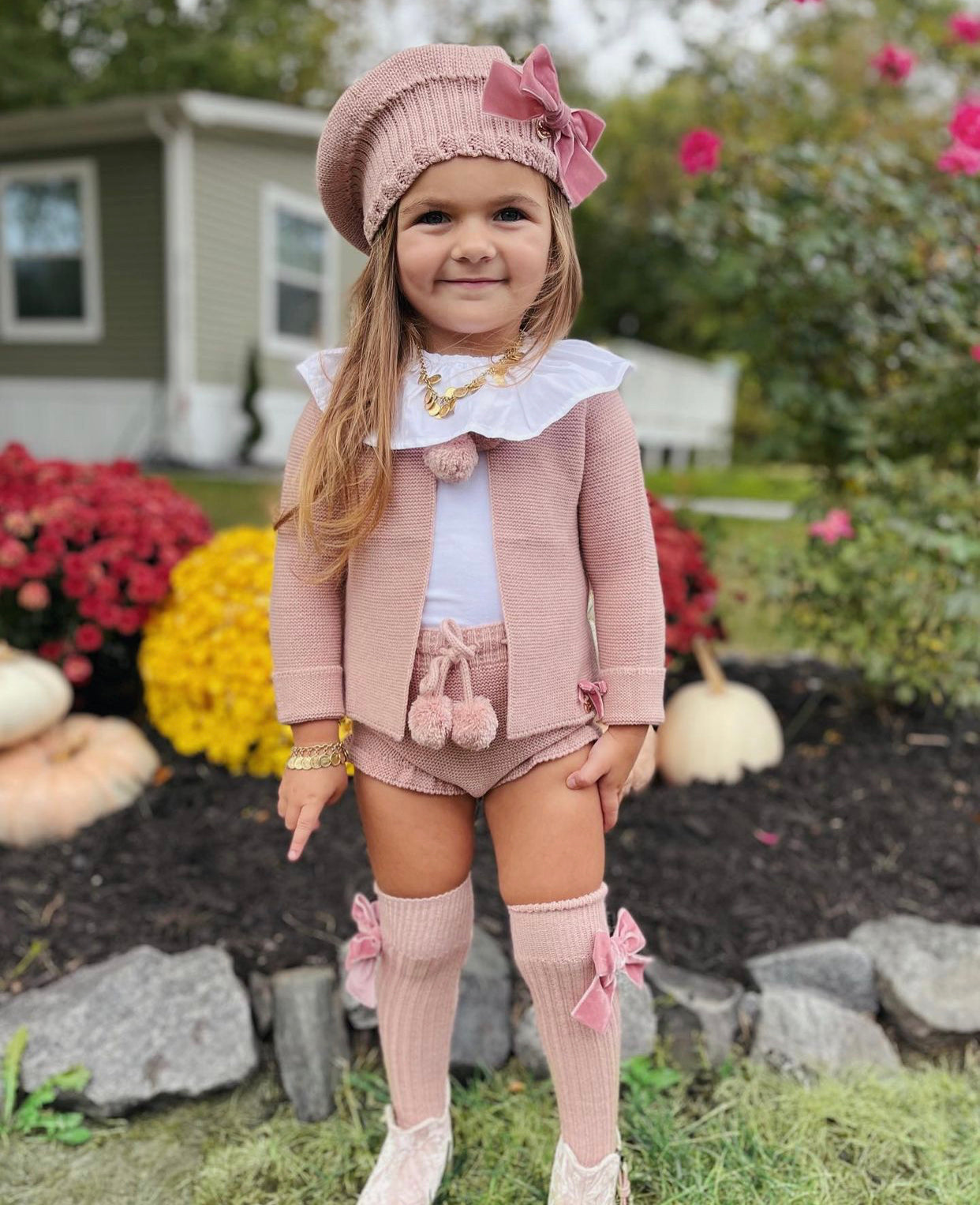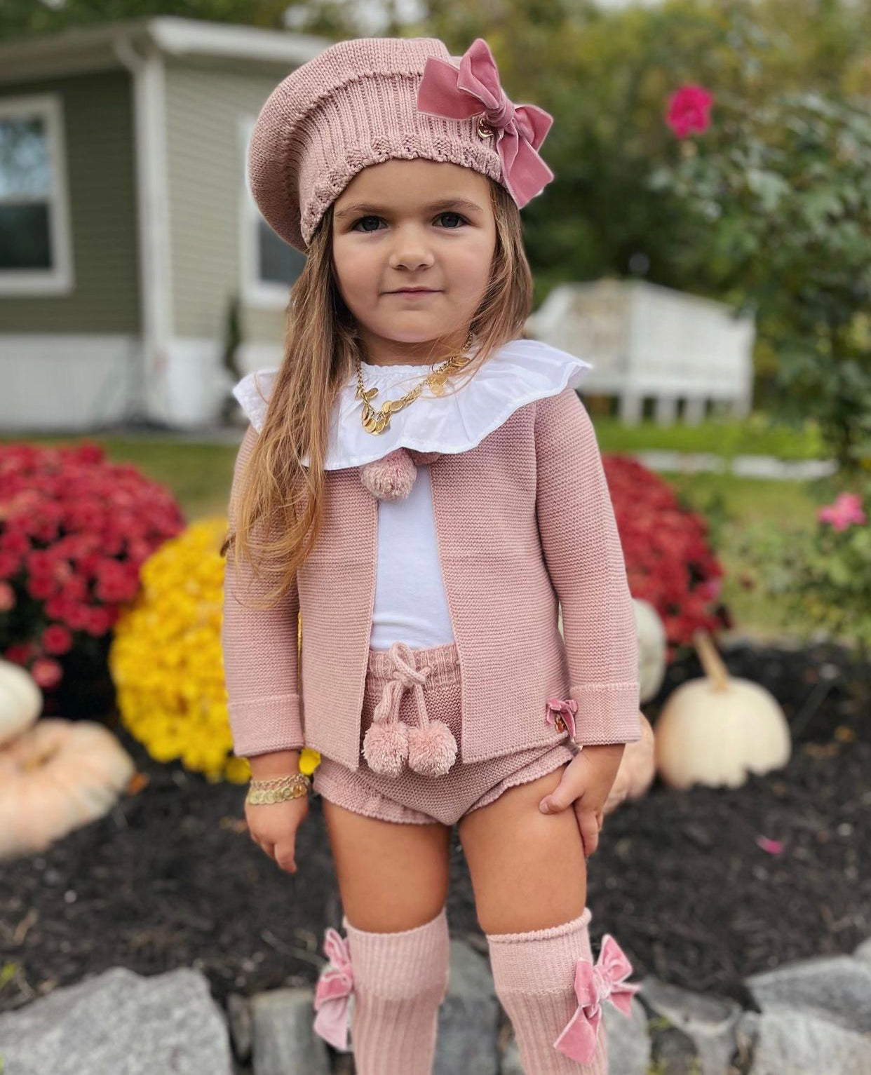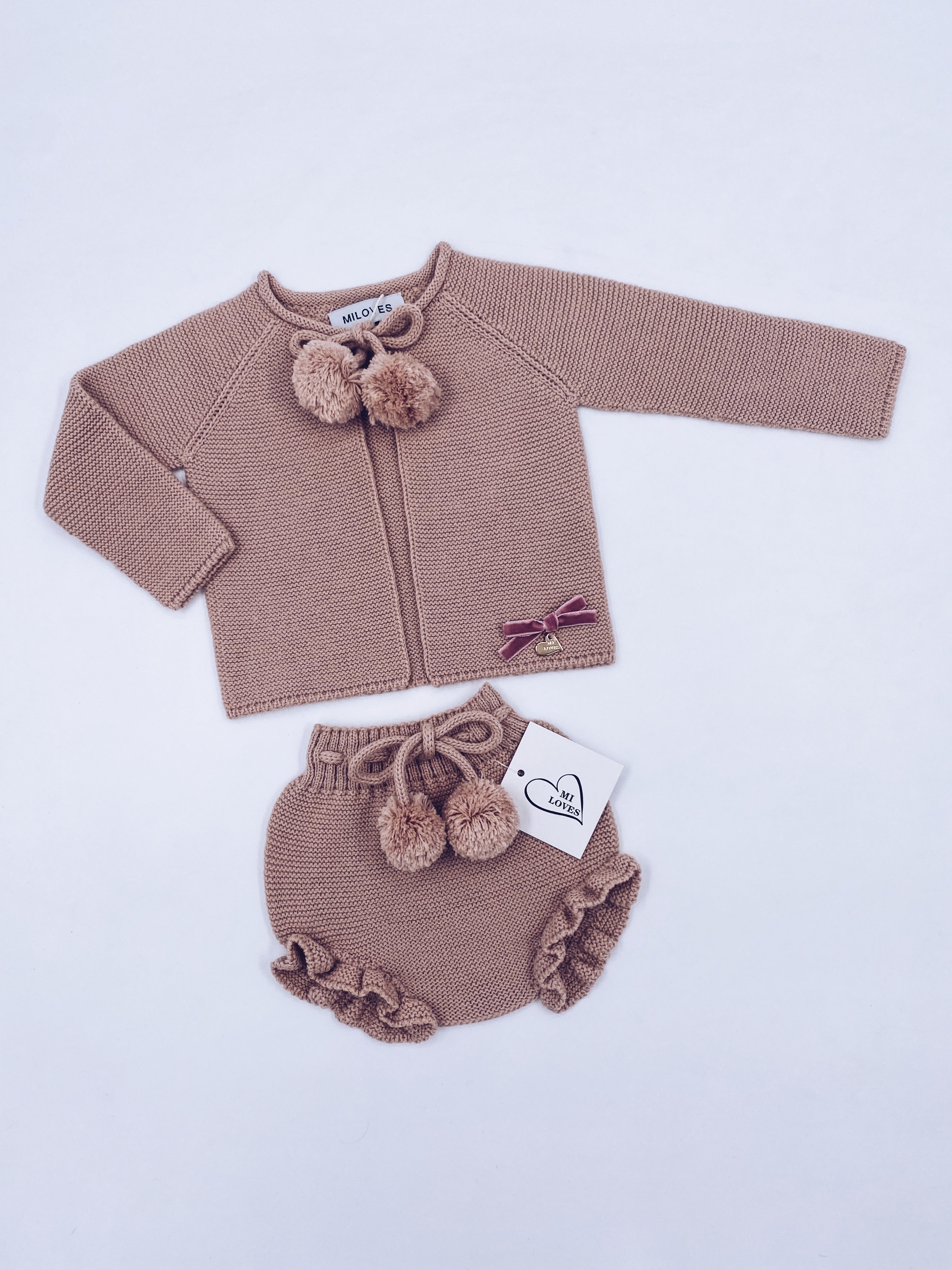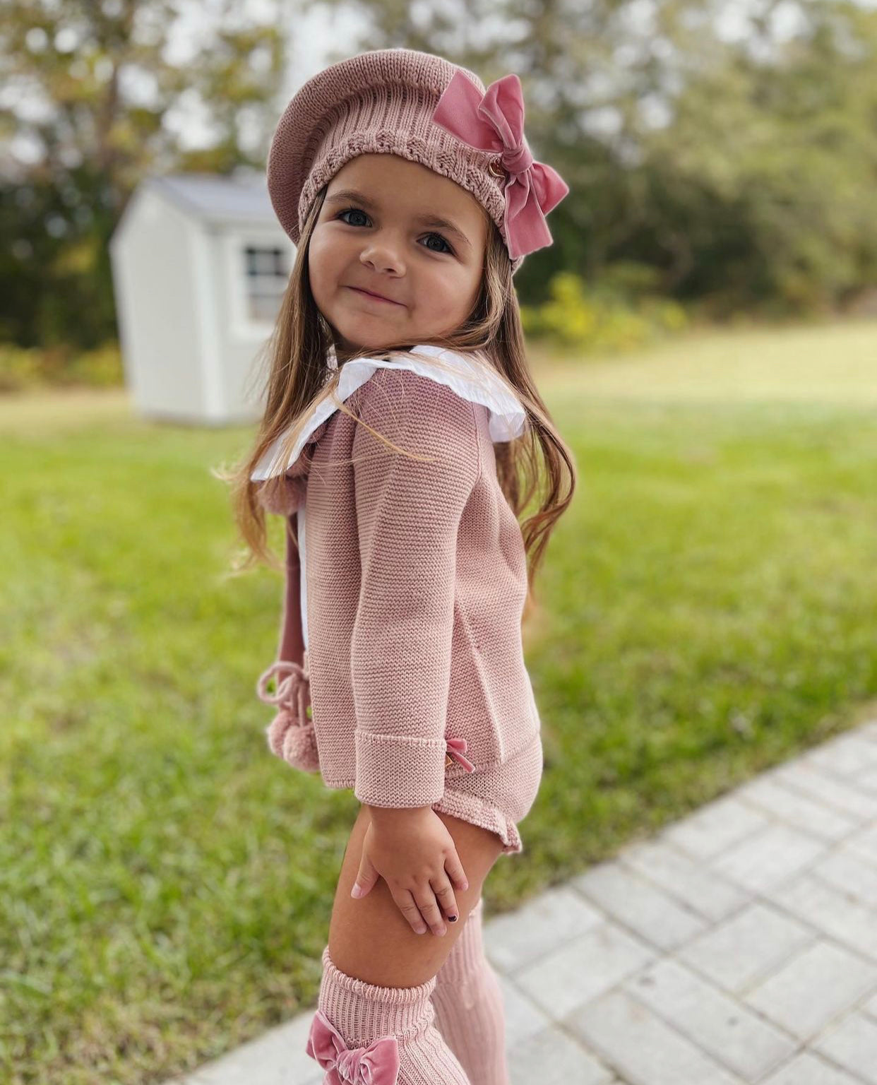 MI LOVES SIGNATURE Knitted Cardigan/short 2 piece set in Dusty Pink.