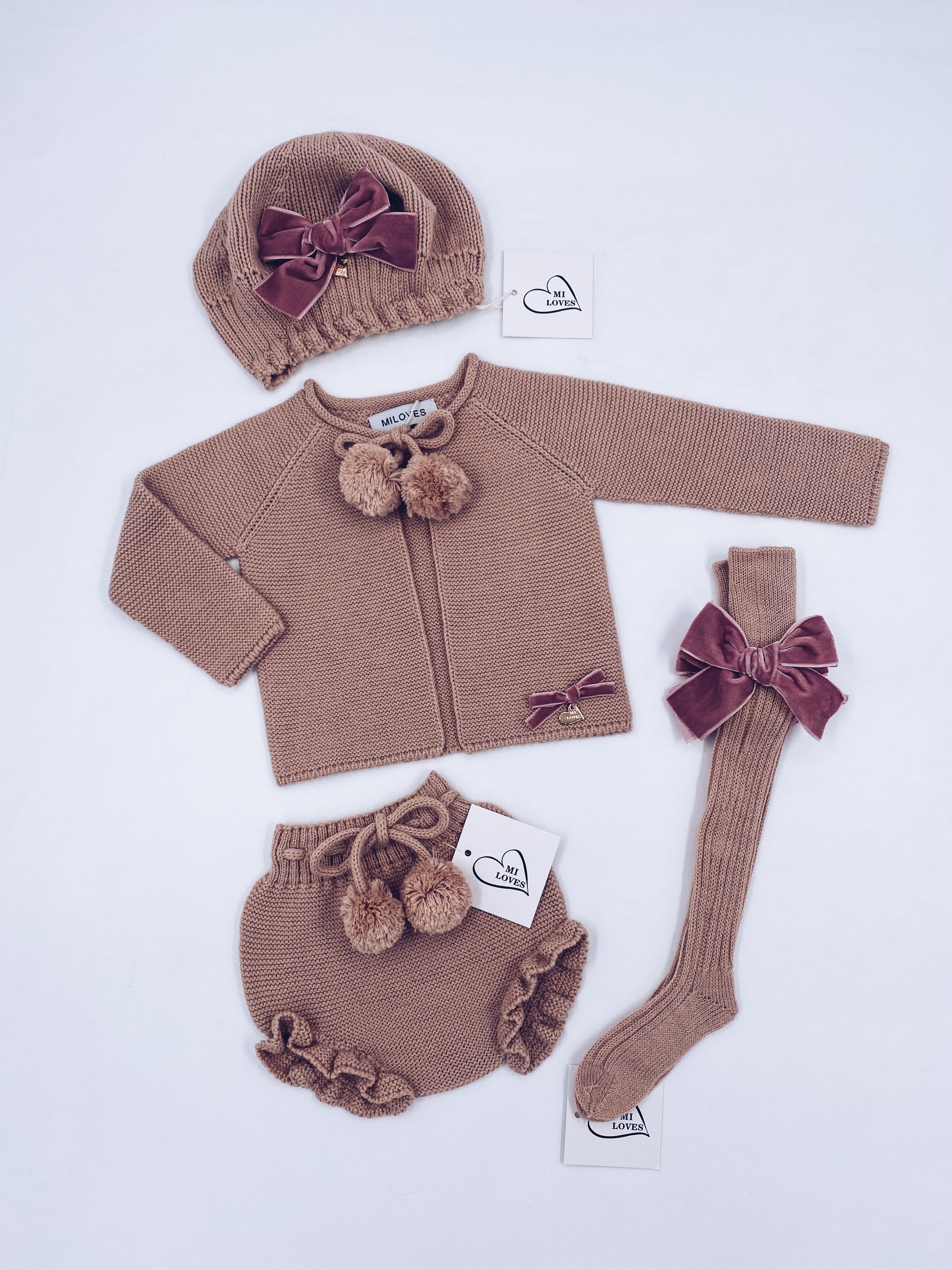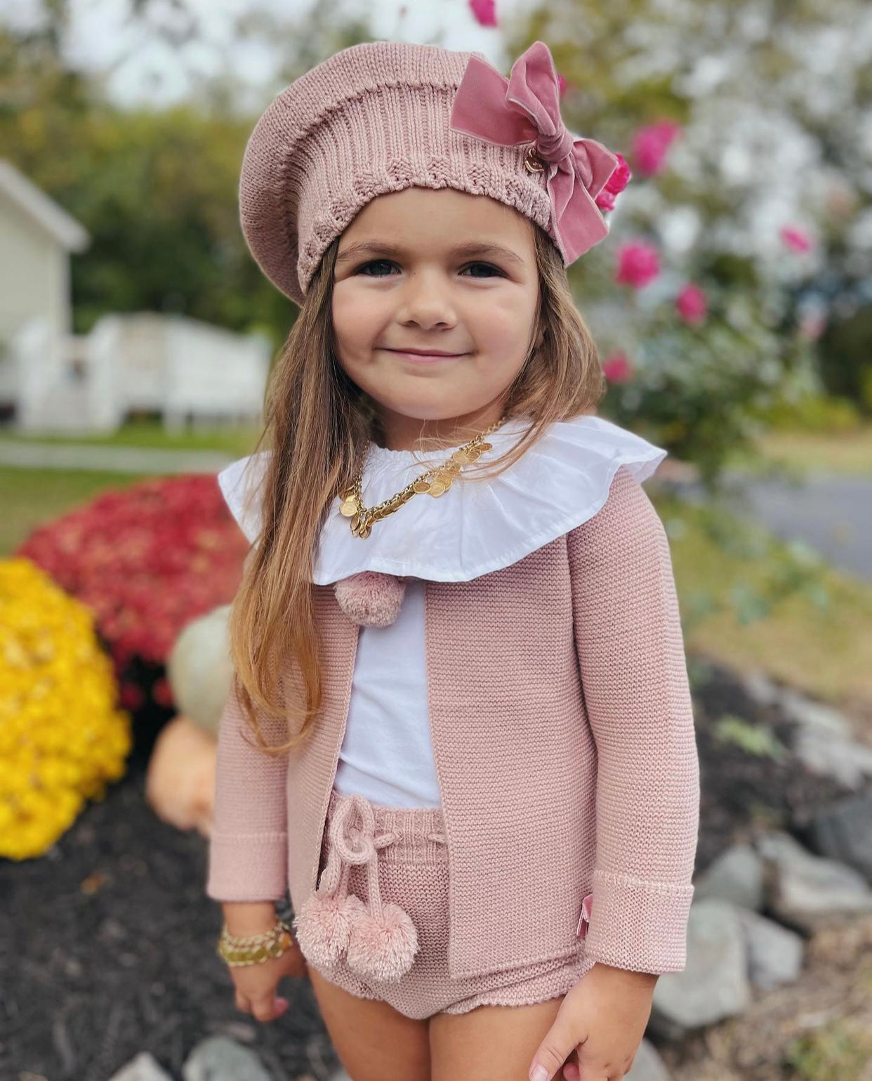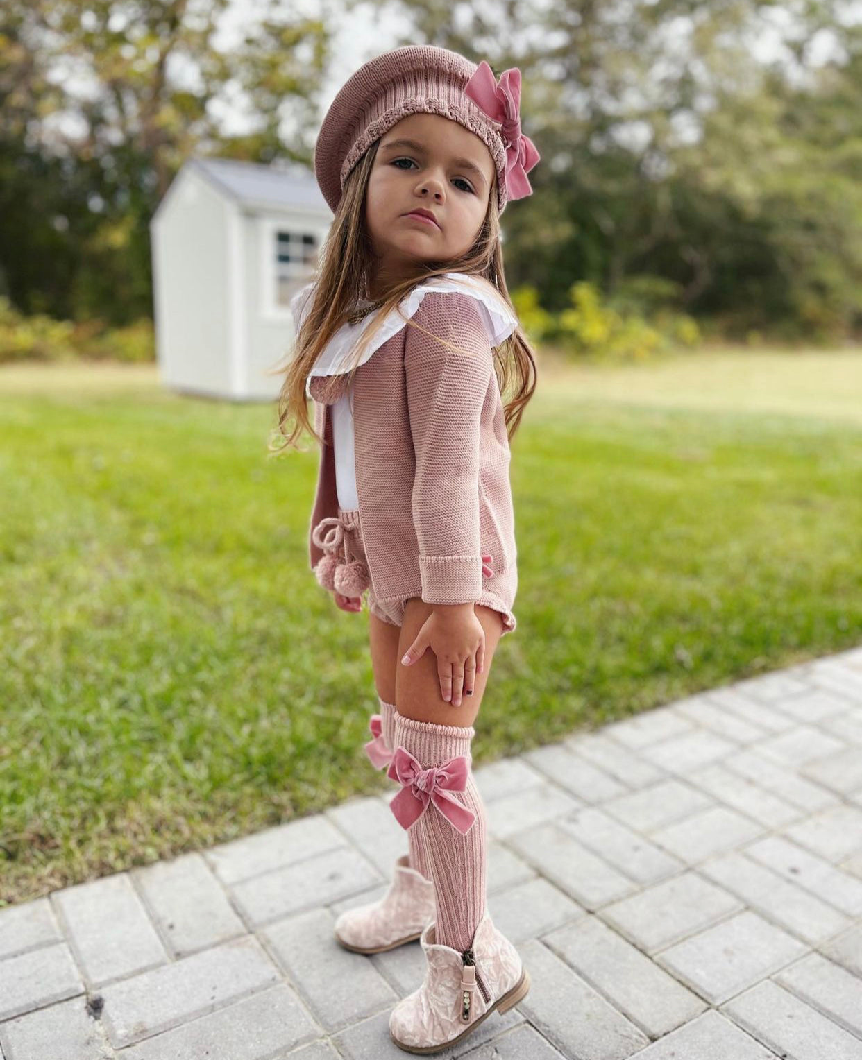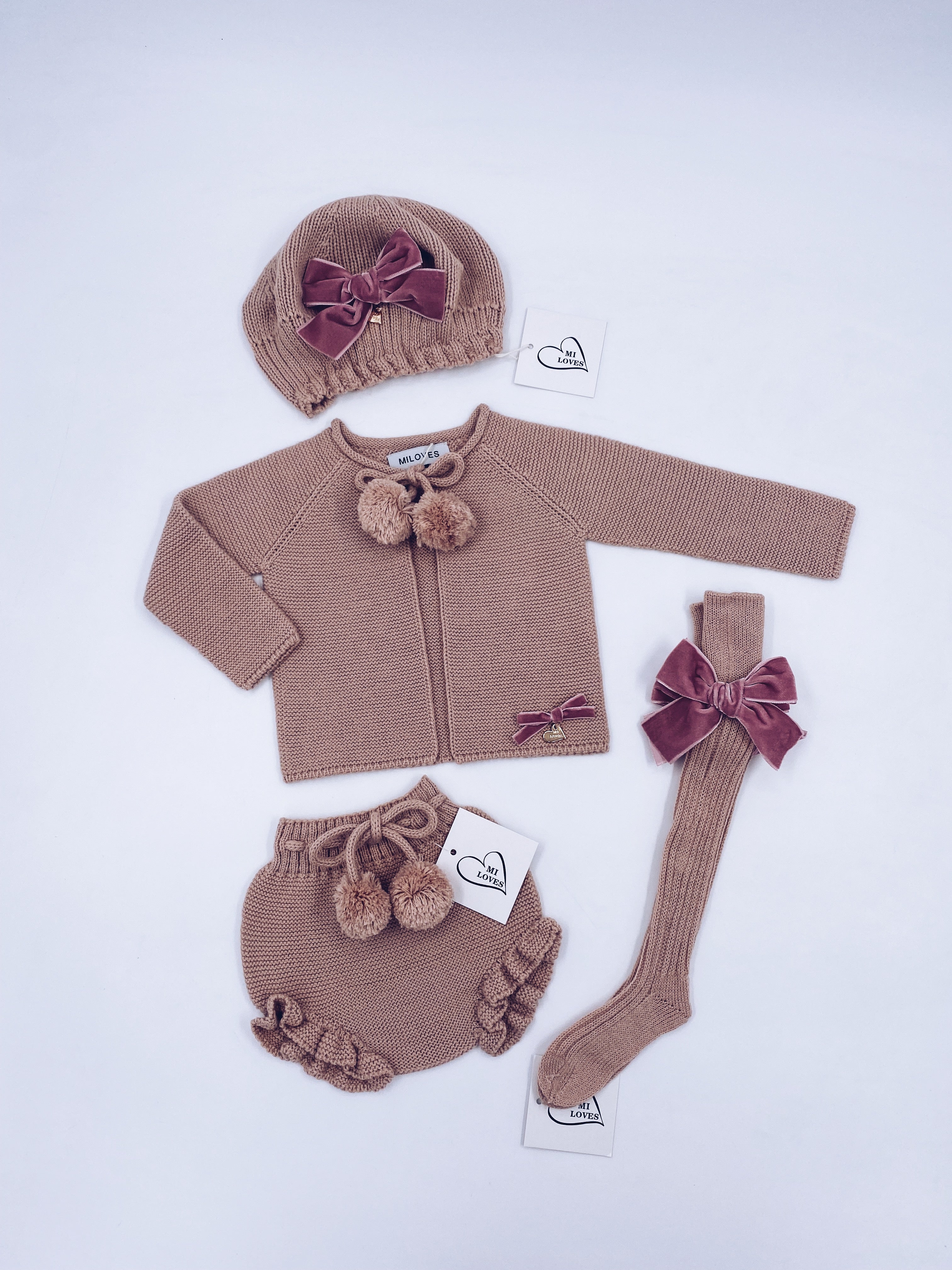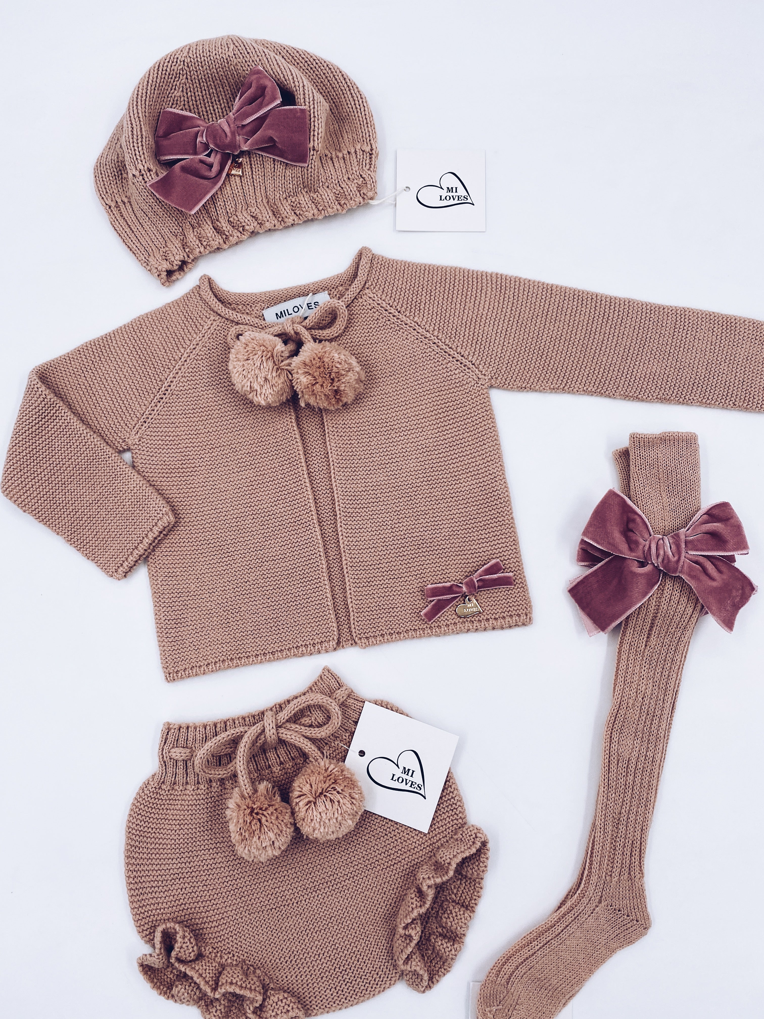 MI LOVES SIGNATURE Knitted Cardigan/short 2 piece set in Dusty Pink.