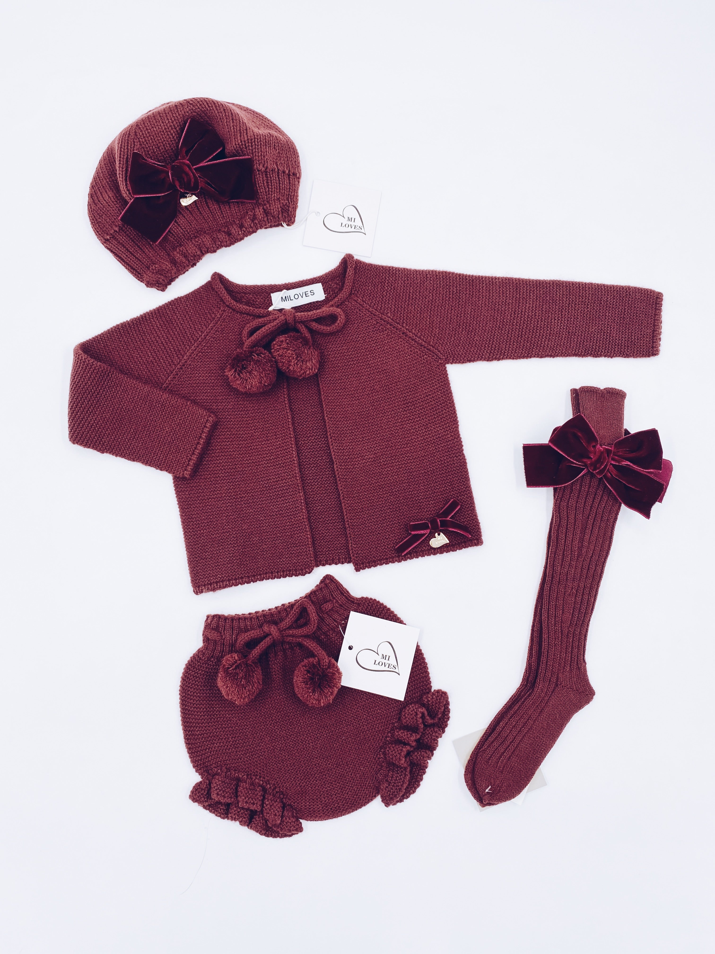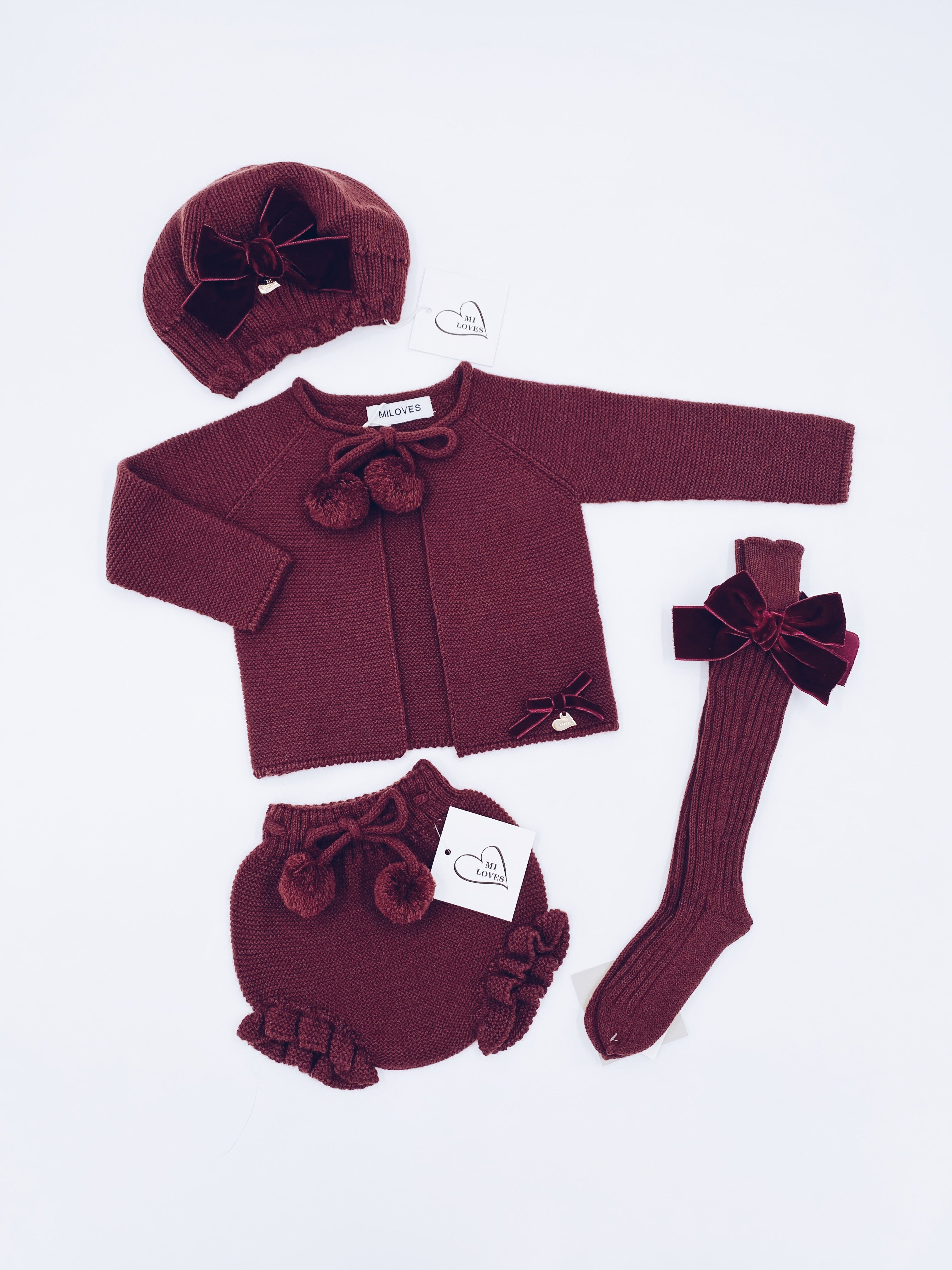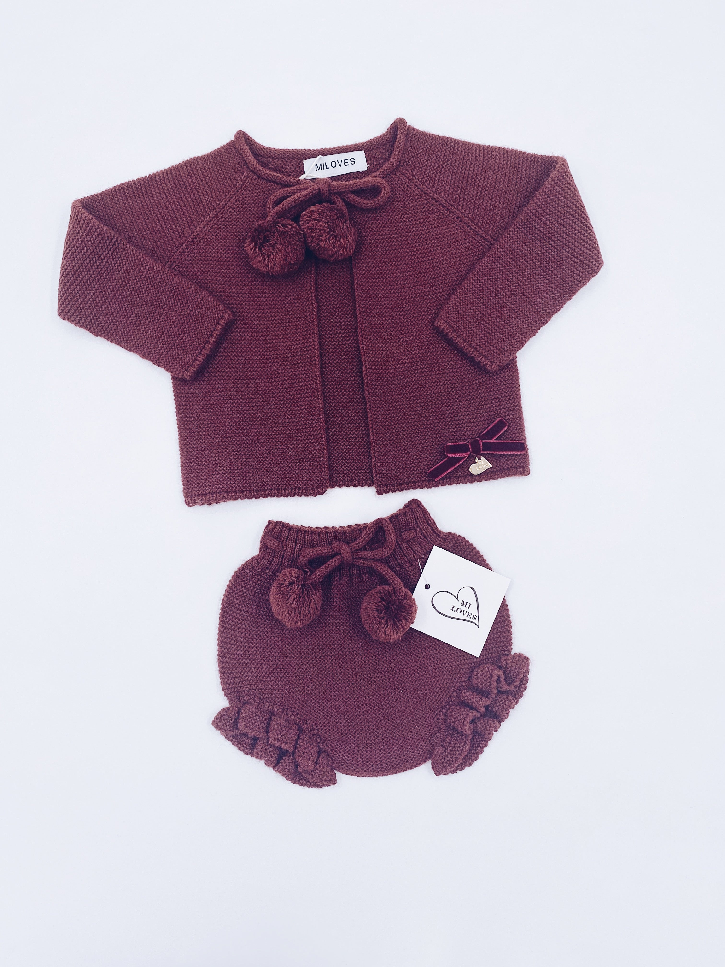 MI LOVES SIGNATURE Knitted Cardigan/short 2 piece set in Burgundy.