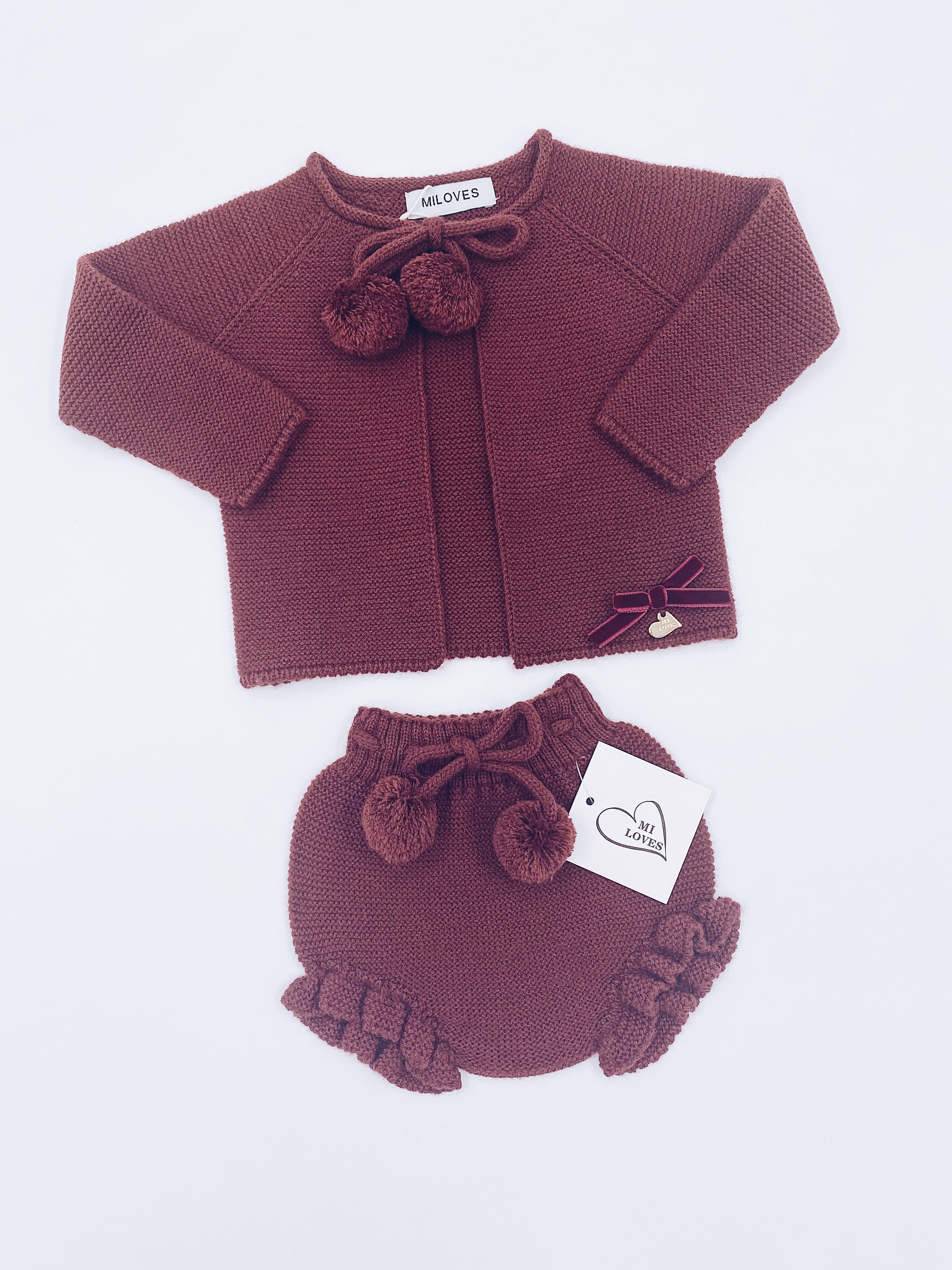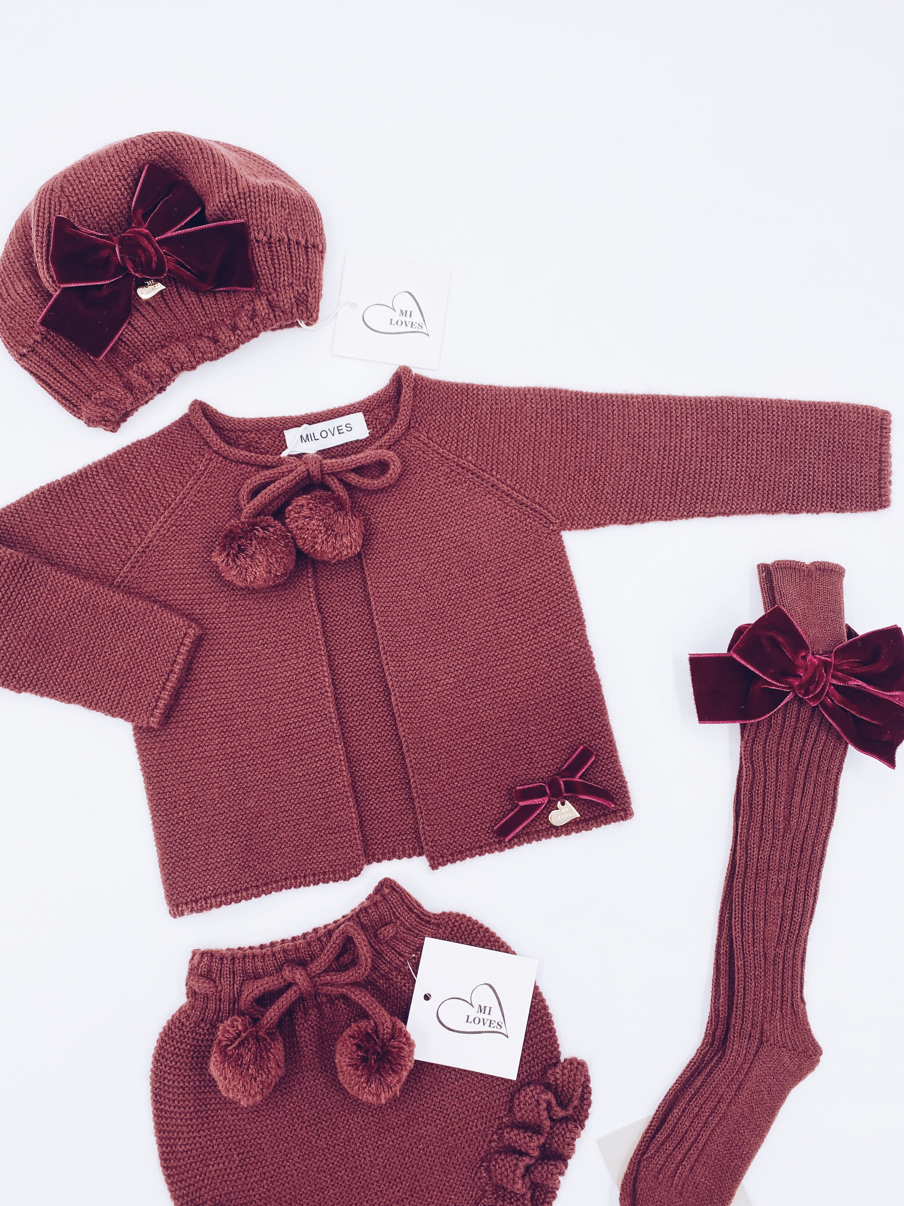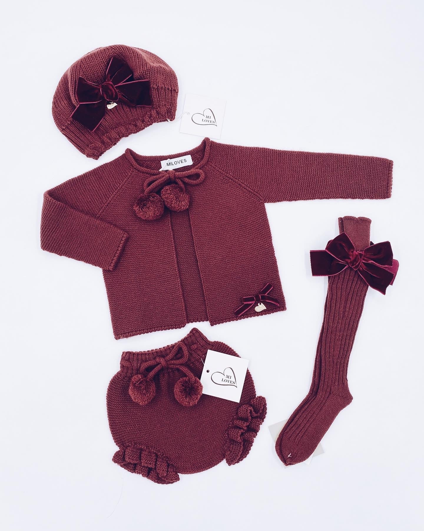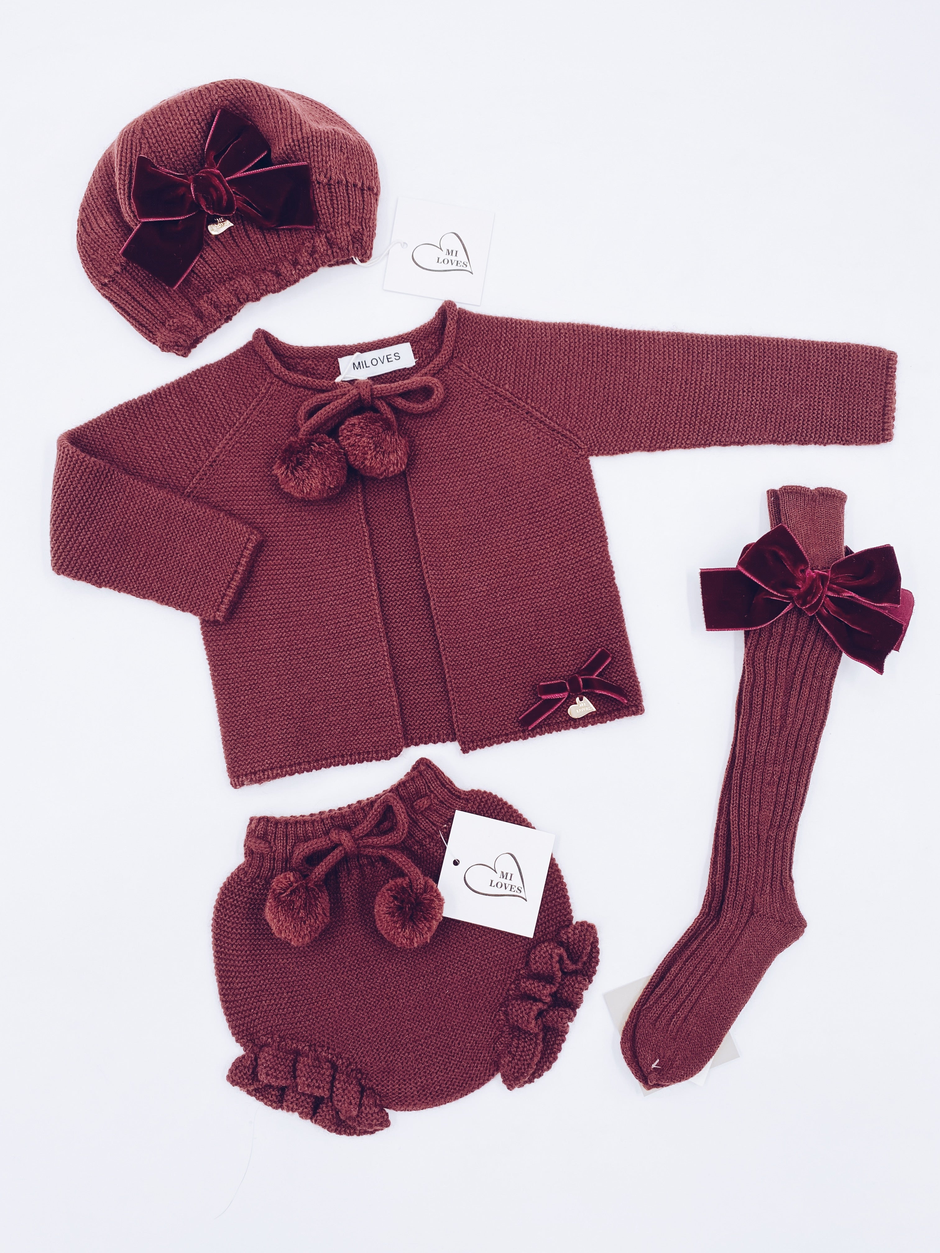 MI LOVES SIGNATURE Knitted Cardigan/short 2 piece set in Burgundy.
