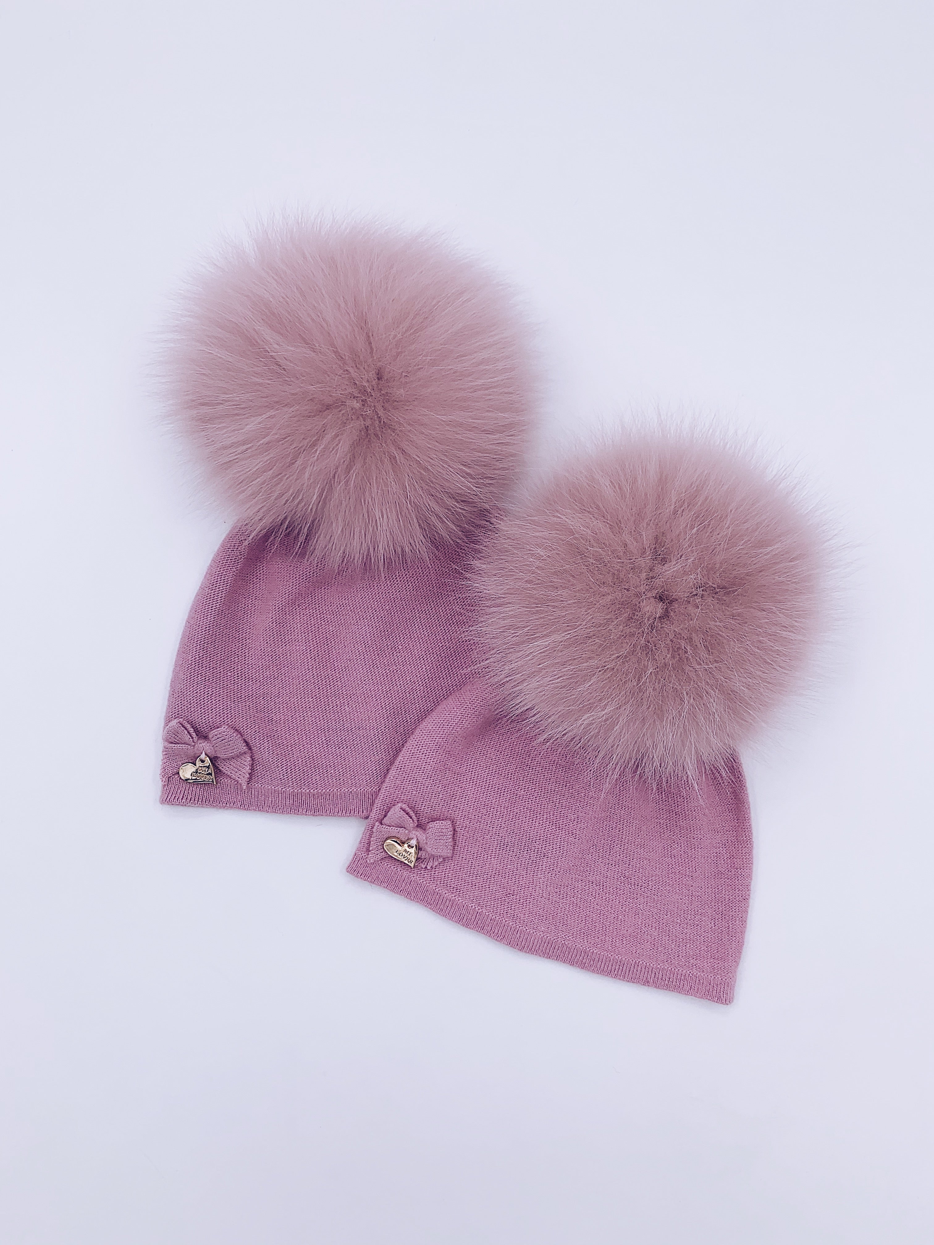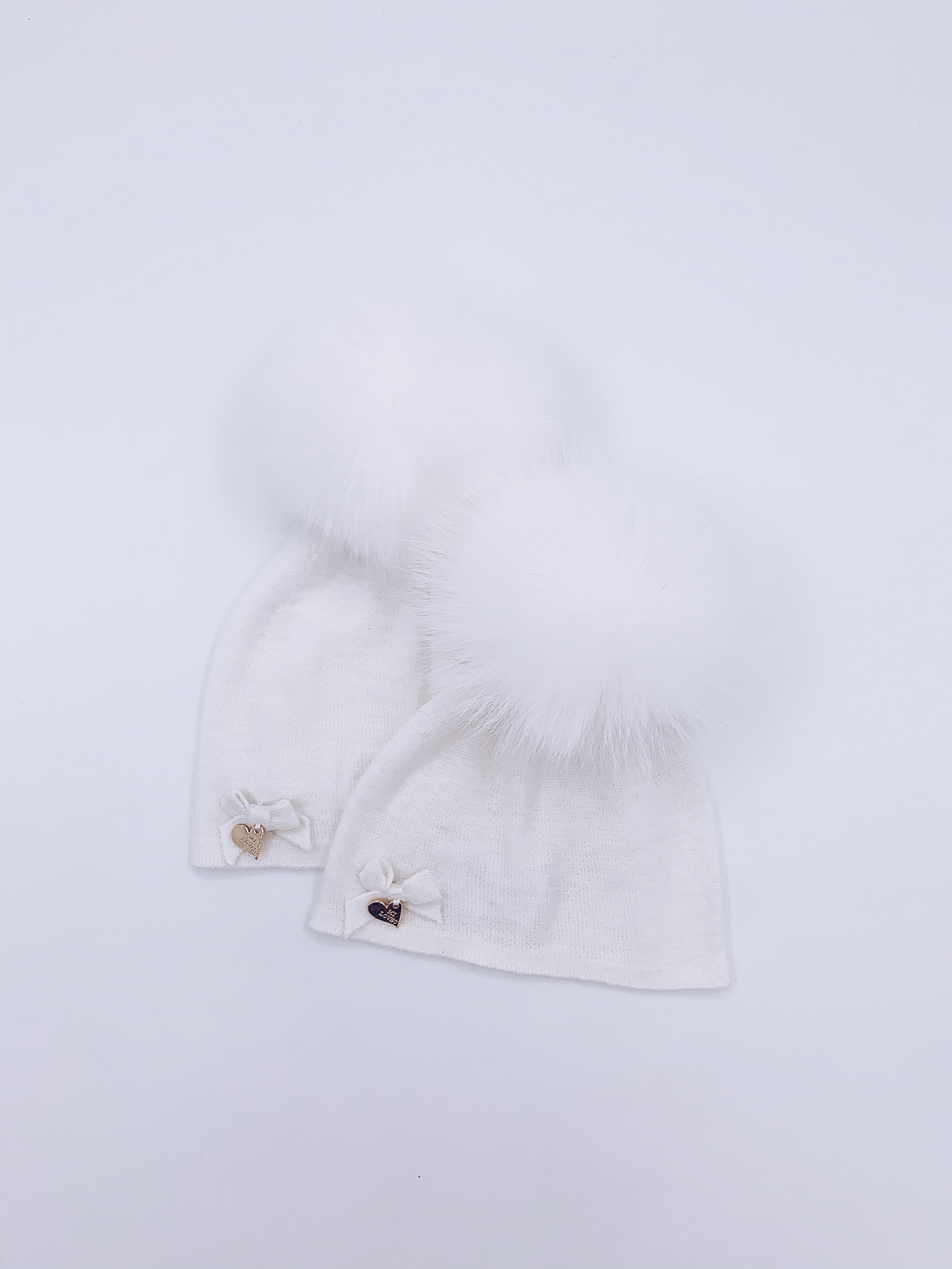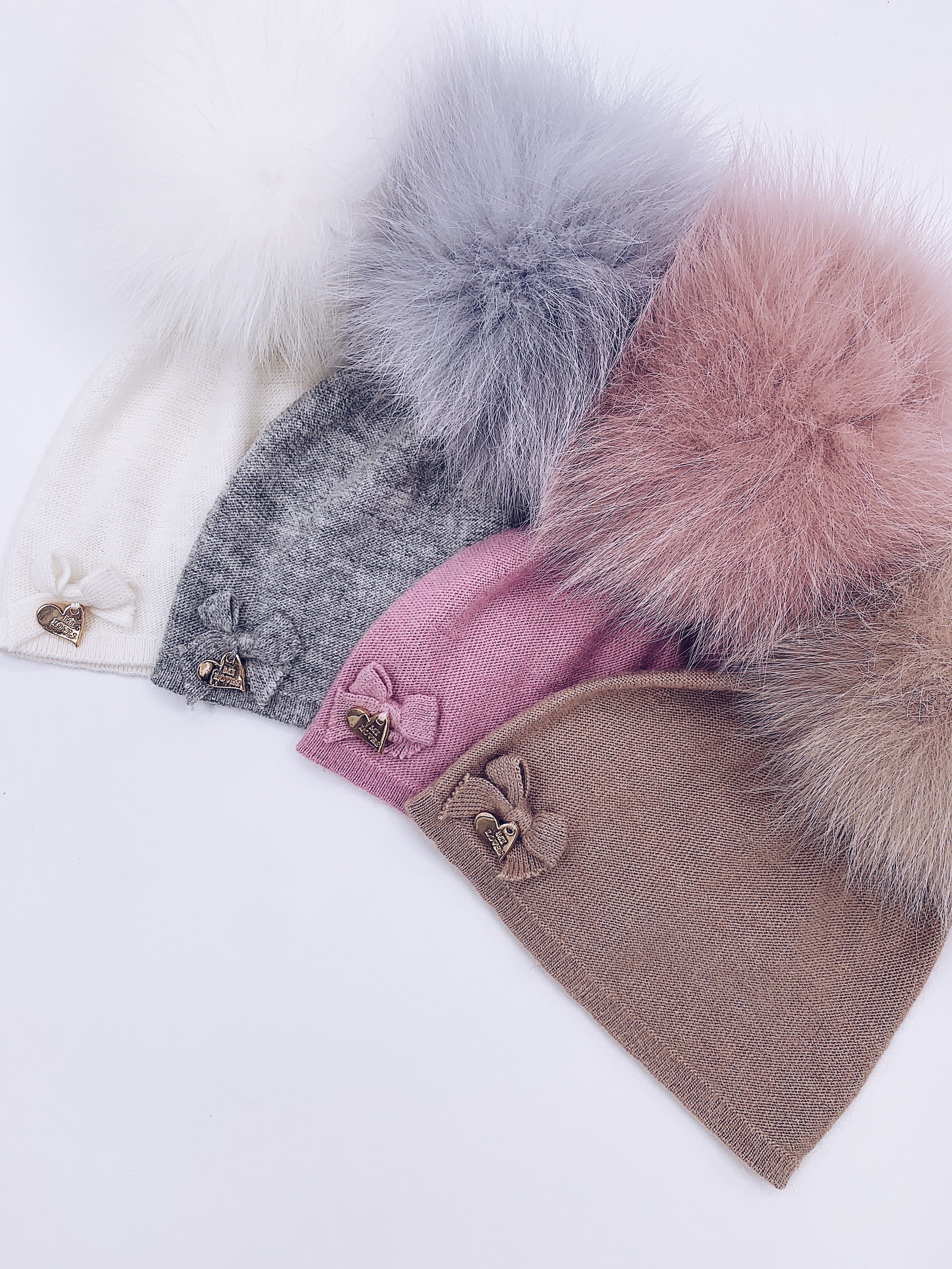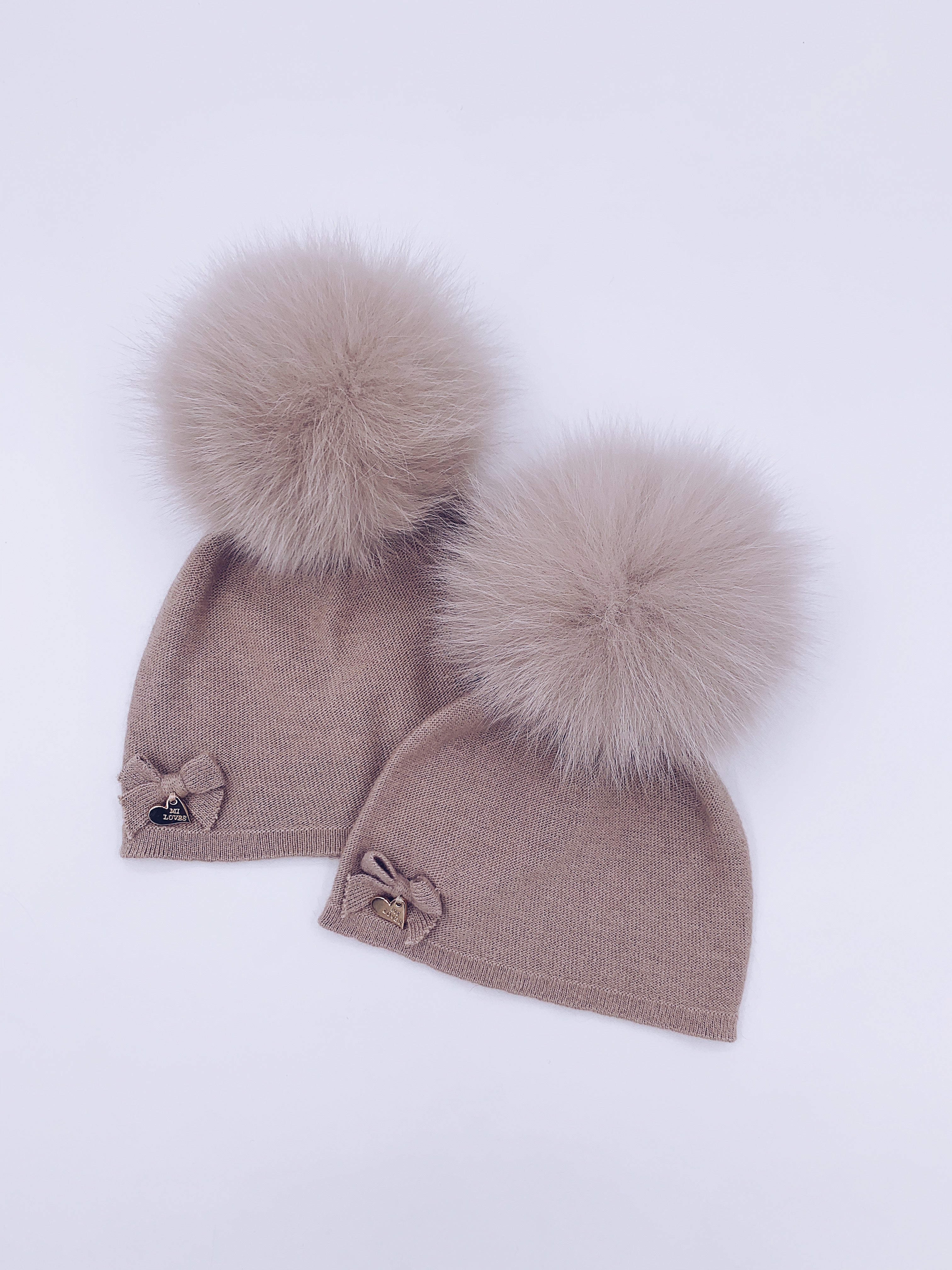 MI LOVES SIGNATURE LUXURIOUS FINE KNIT ANGORA HAT WITH FOX FUR POMPOM (with Bow)
