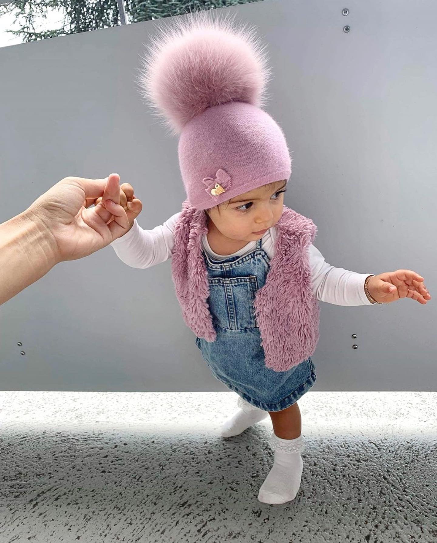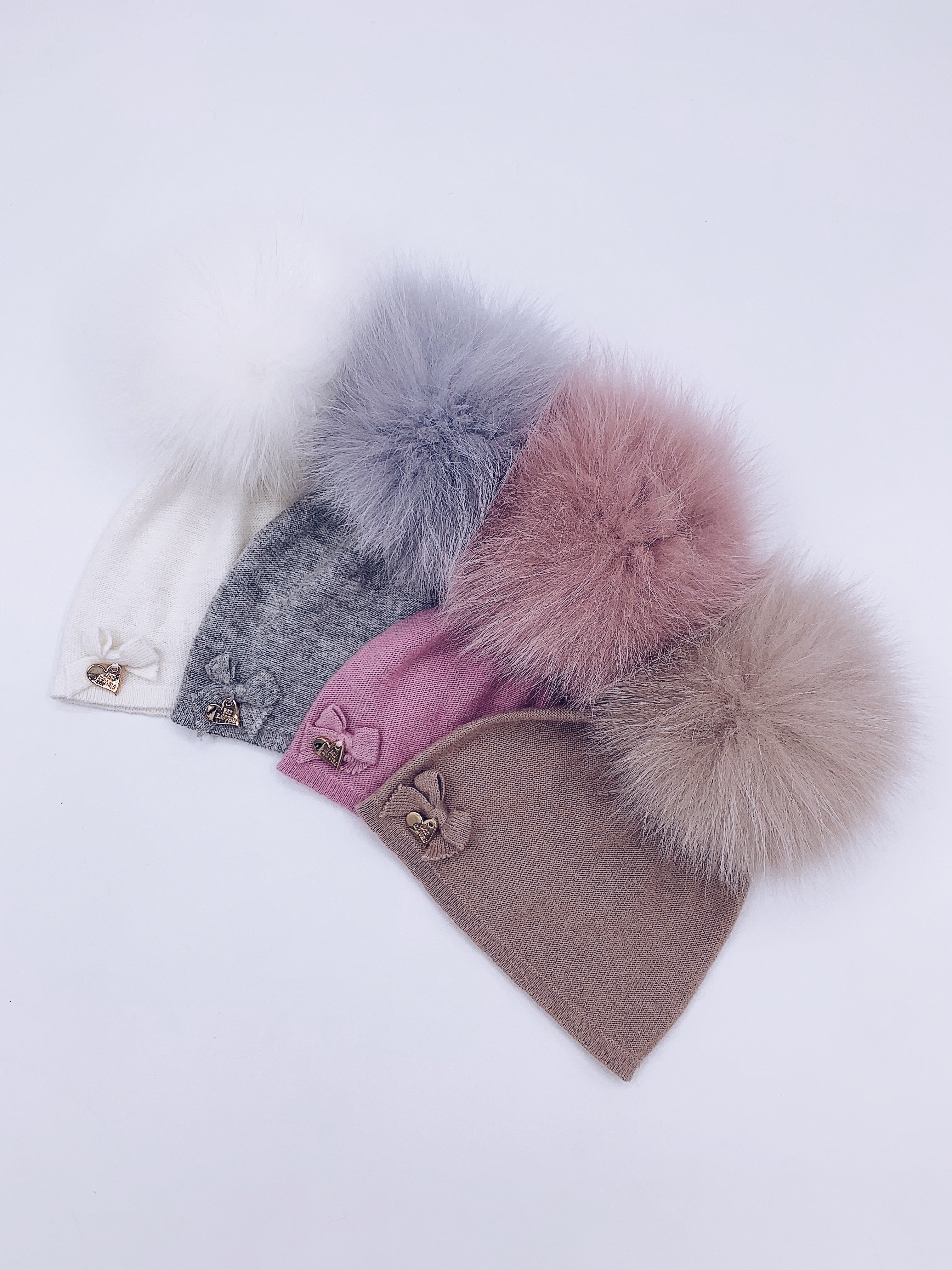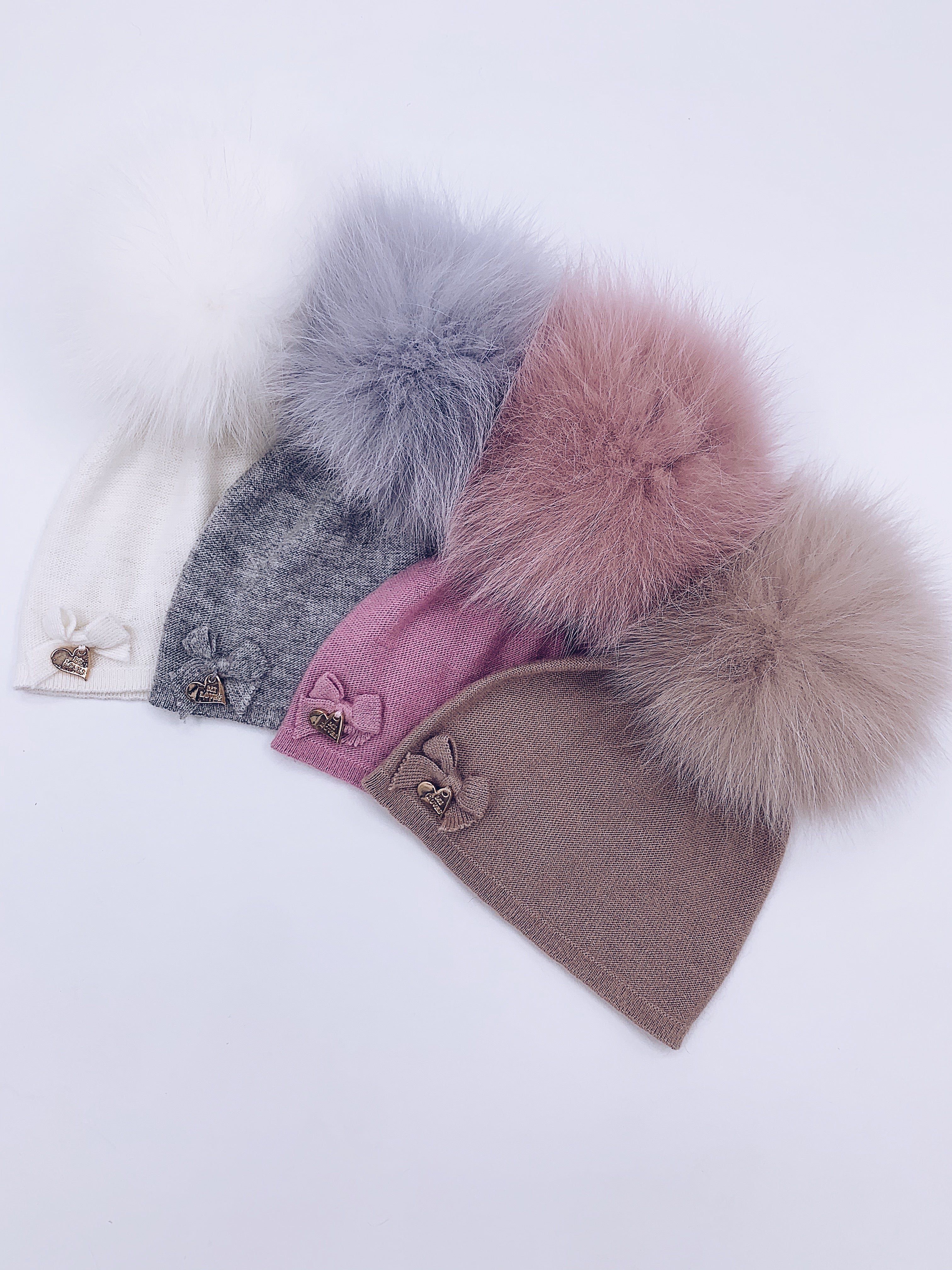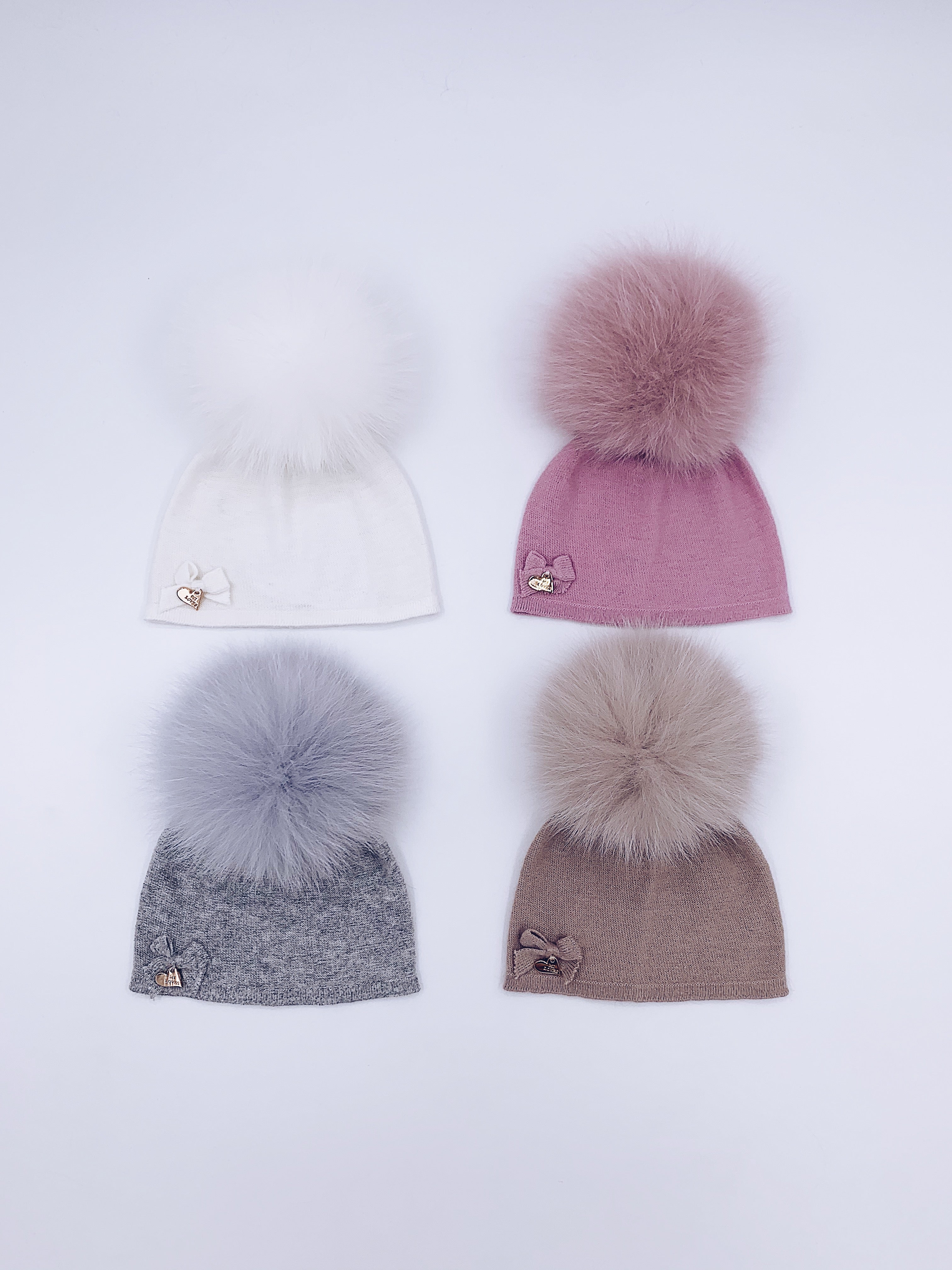 MI LOVES SIGNATURE LUXURIOUS FINE KNIT ANGORA HAT WITH FOX FUR POMPOM (with Bow)