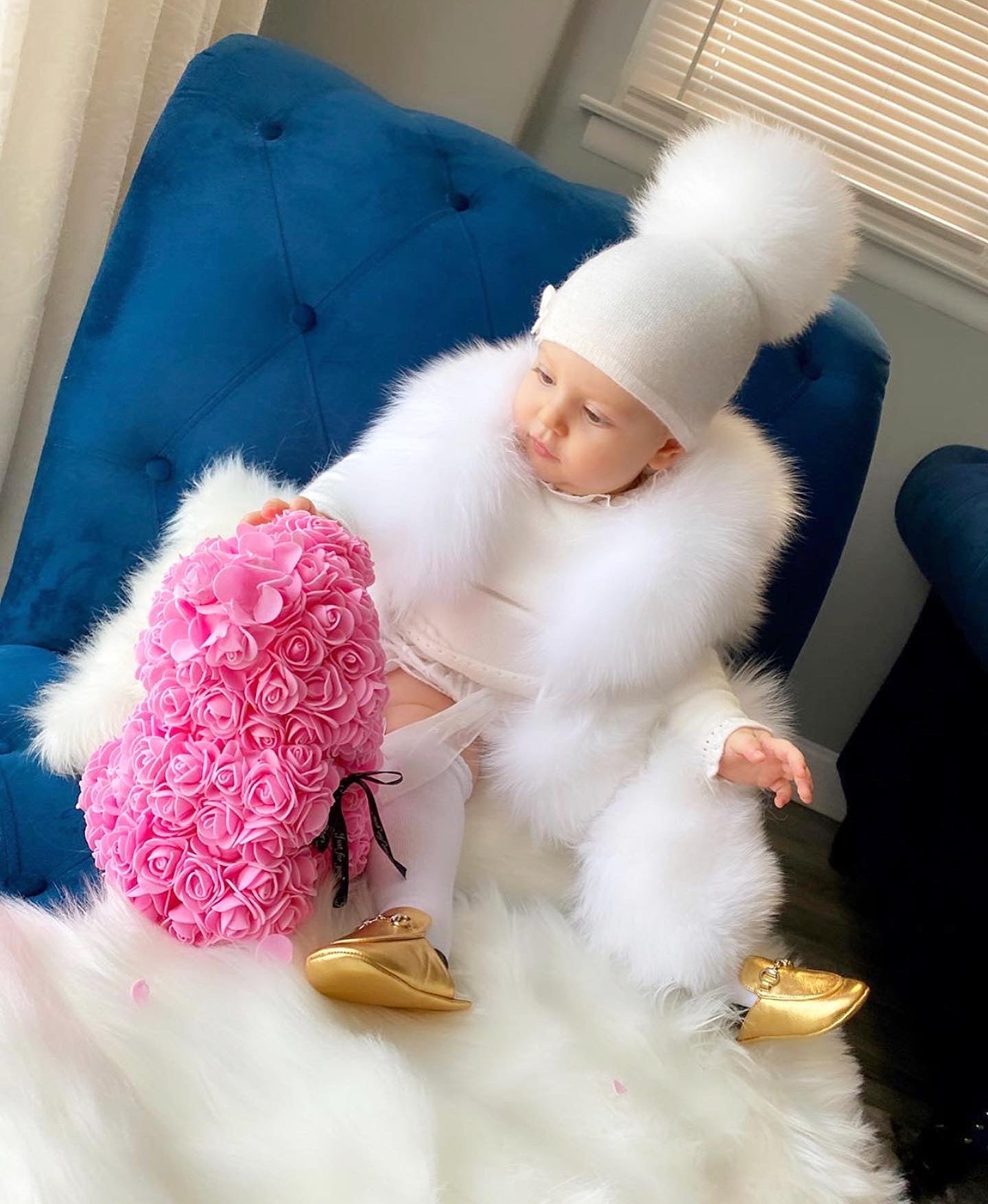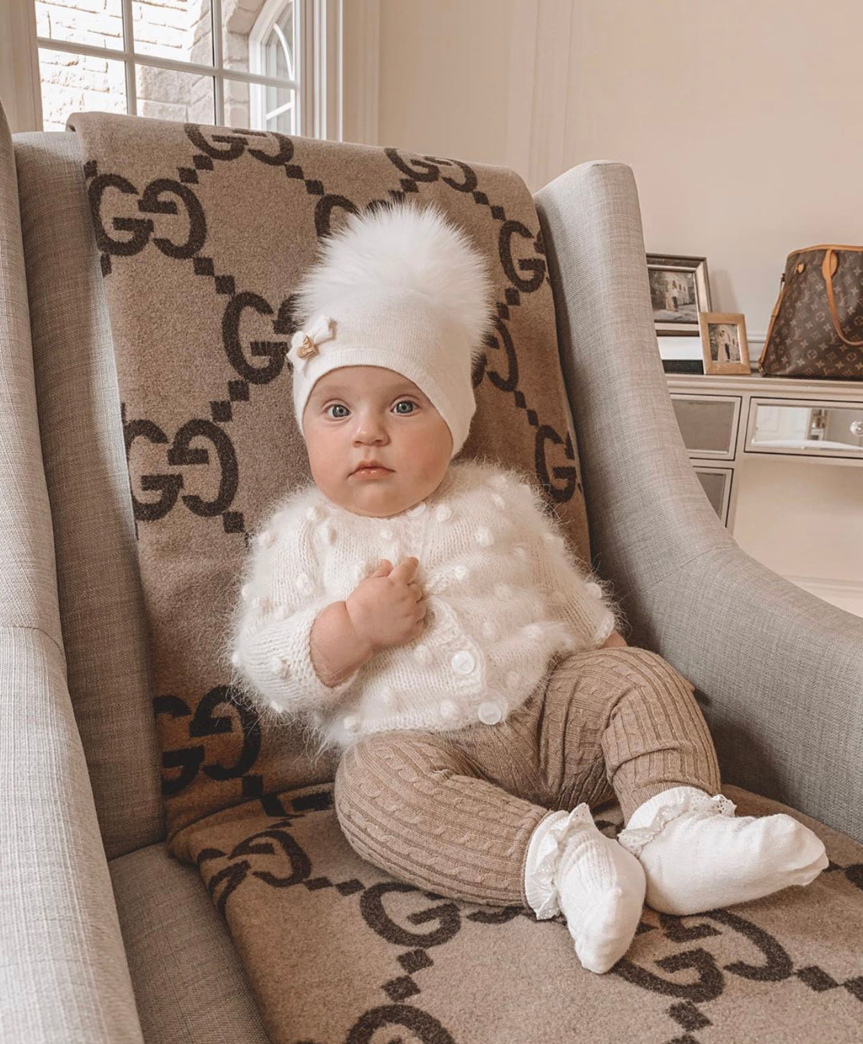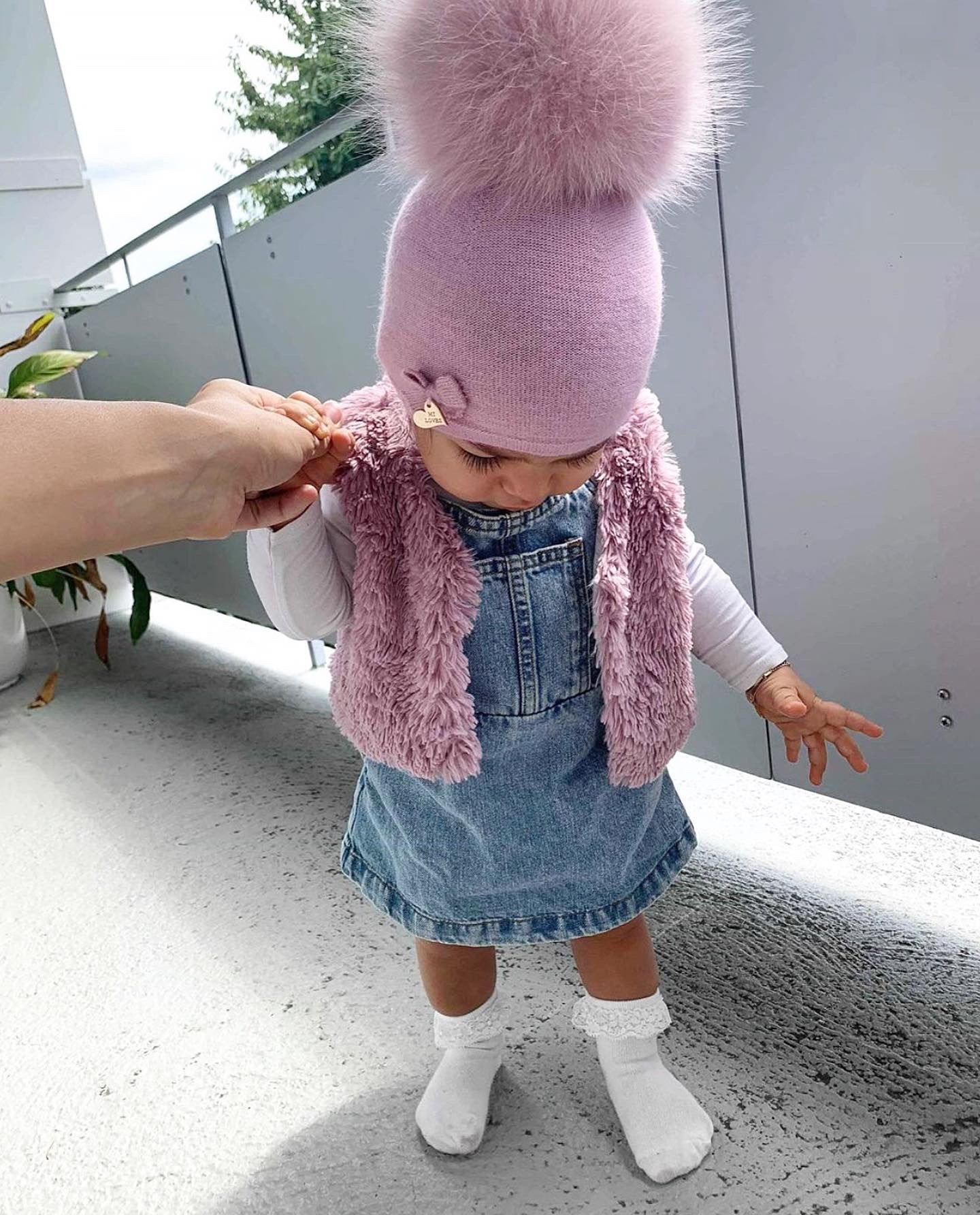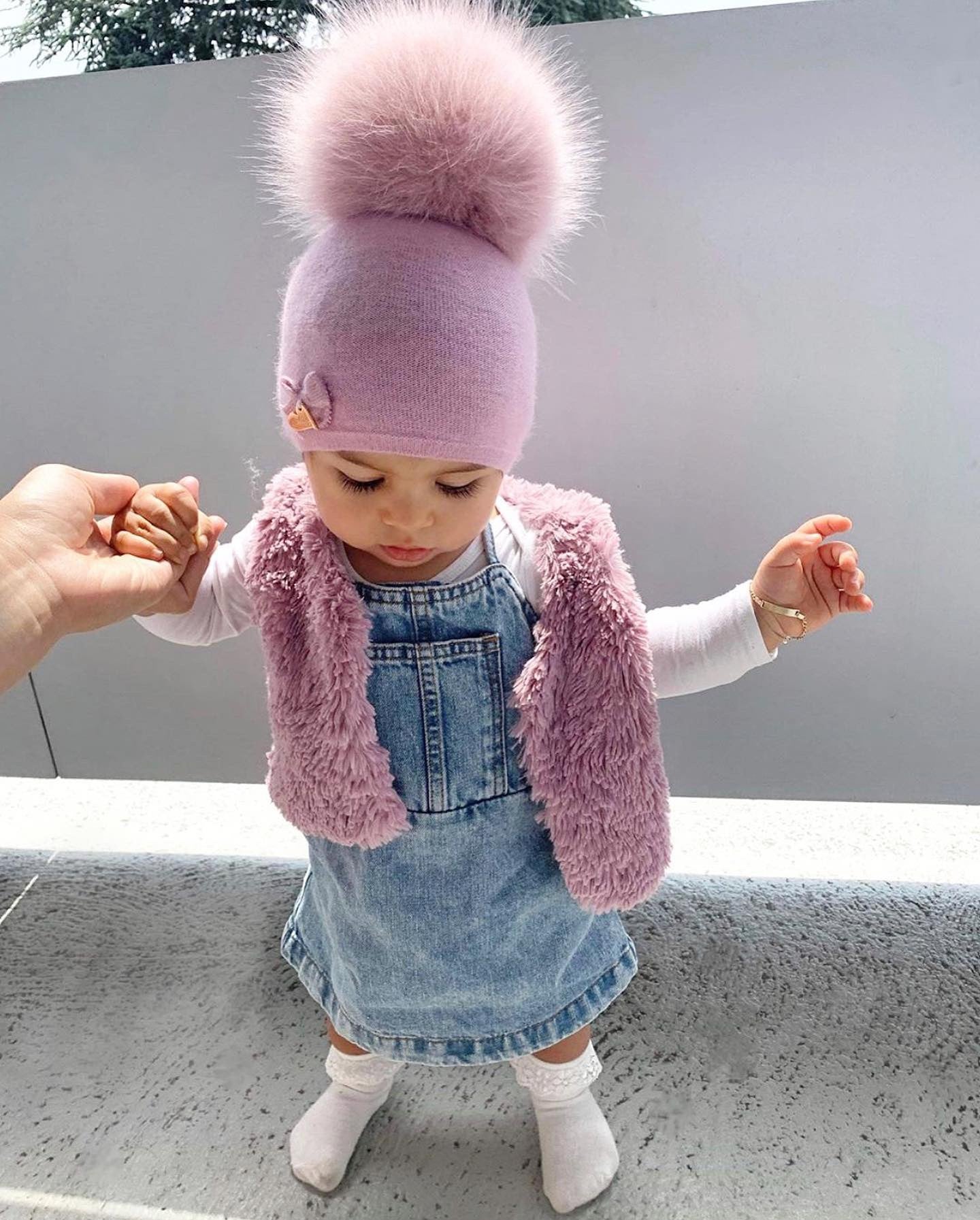 MI LOVES SIGNATURE LUXURIOUS FINE KNIT ANGORA HAT WITH FOX FUR POMPOM (with Bow)