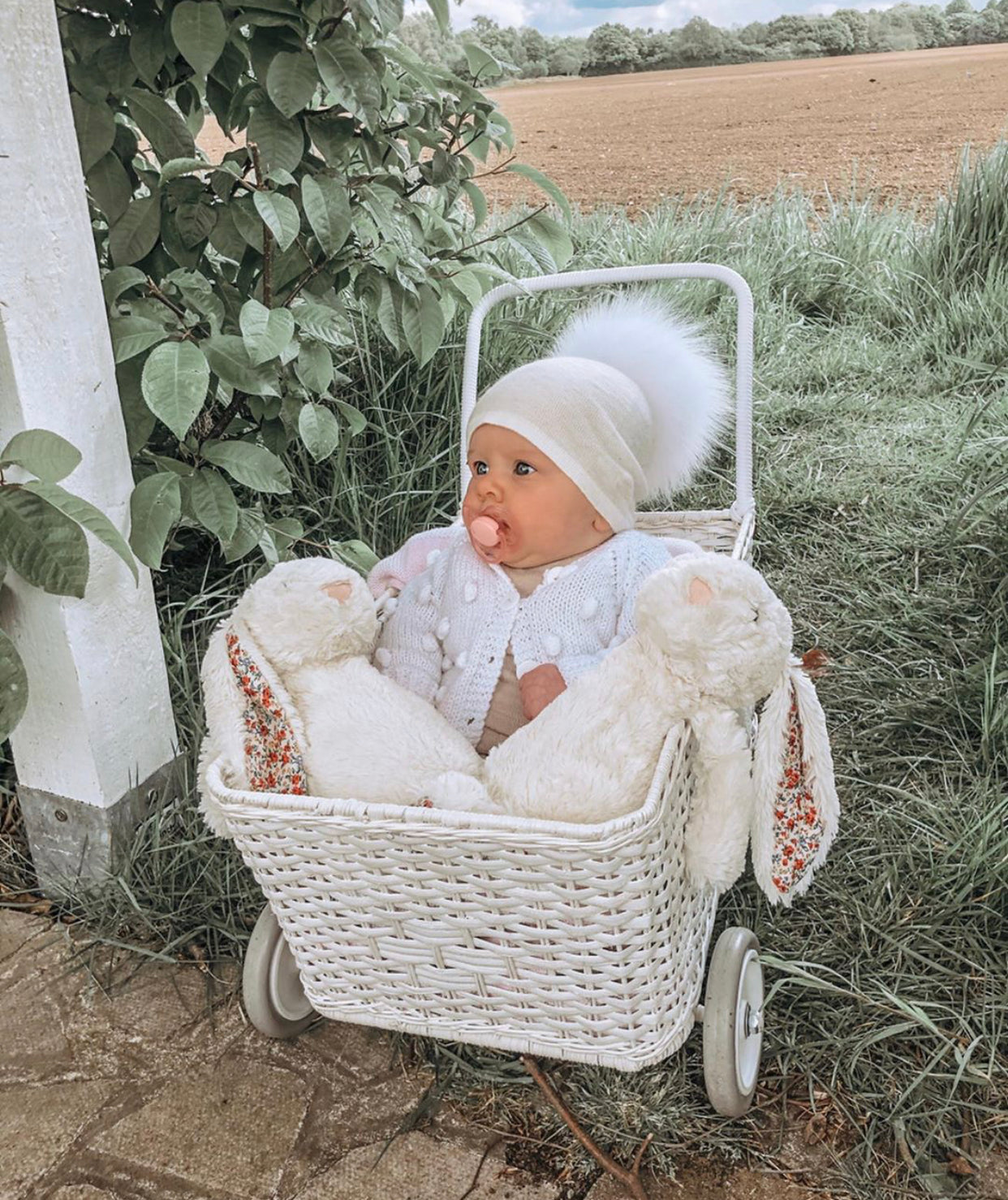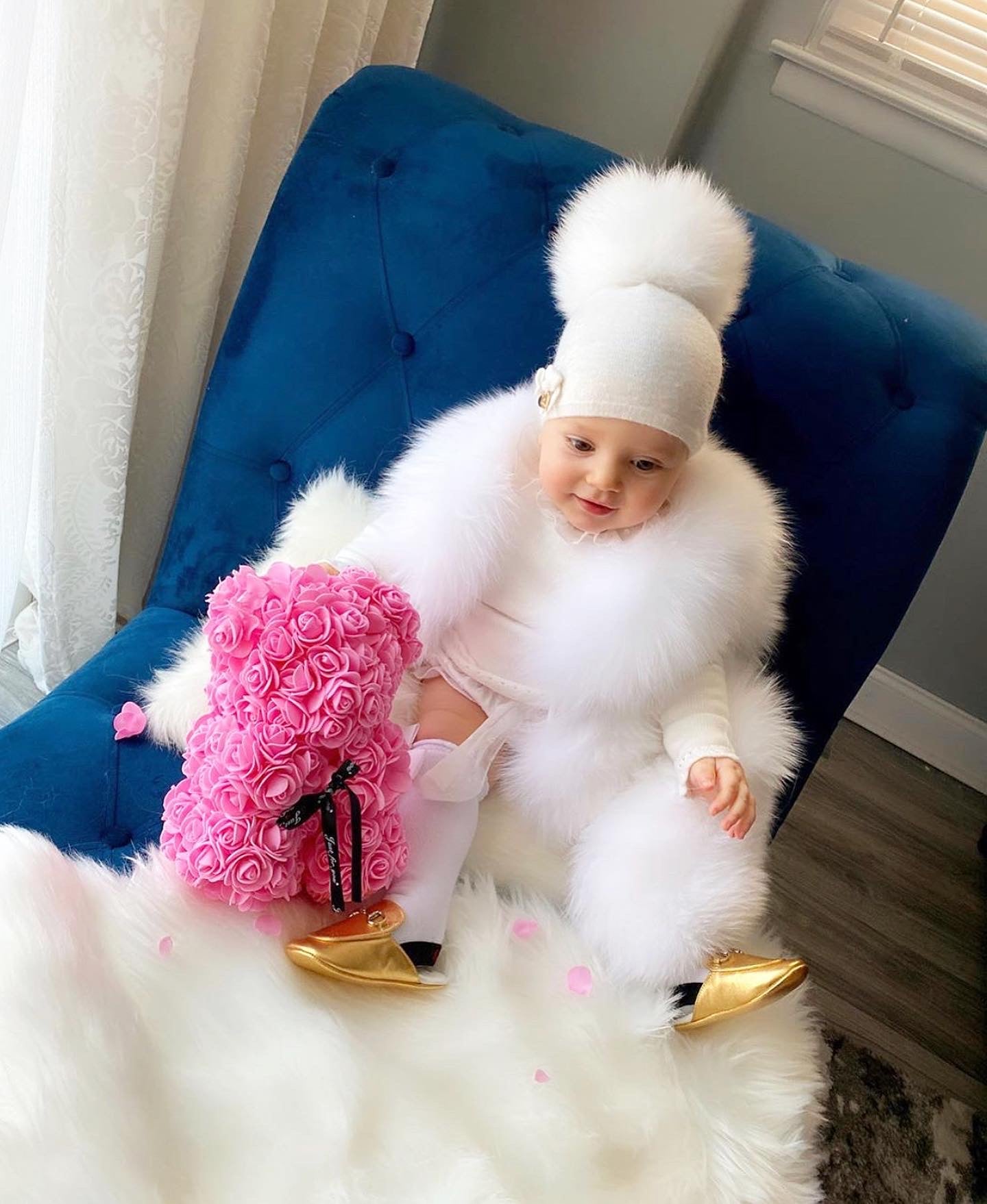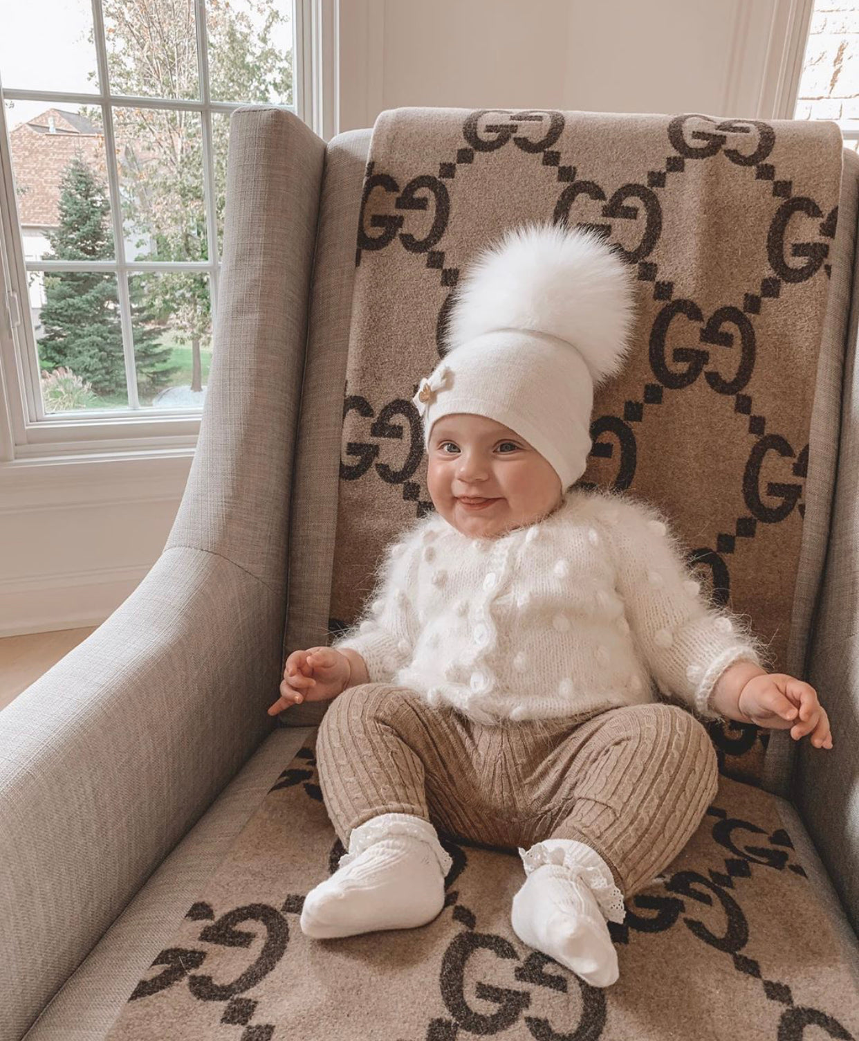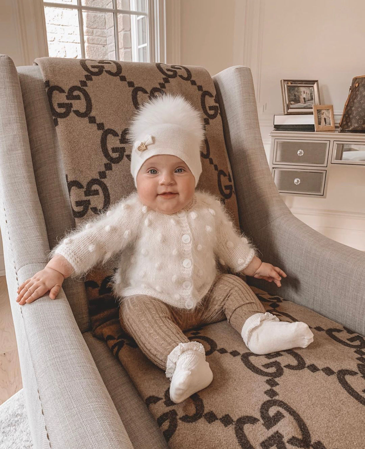 MI LOVES SIGNATURE LUXURIOUS FINE KNIT ANGORA HAT WITH FOX FUR POMPOM (with Bow)