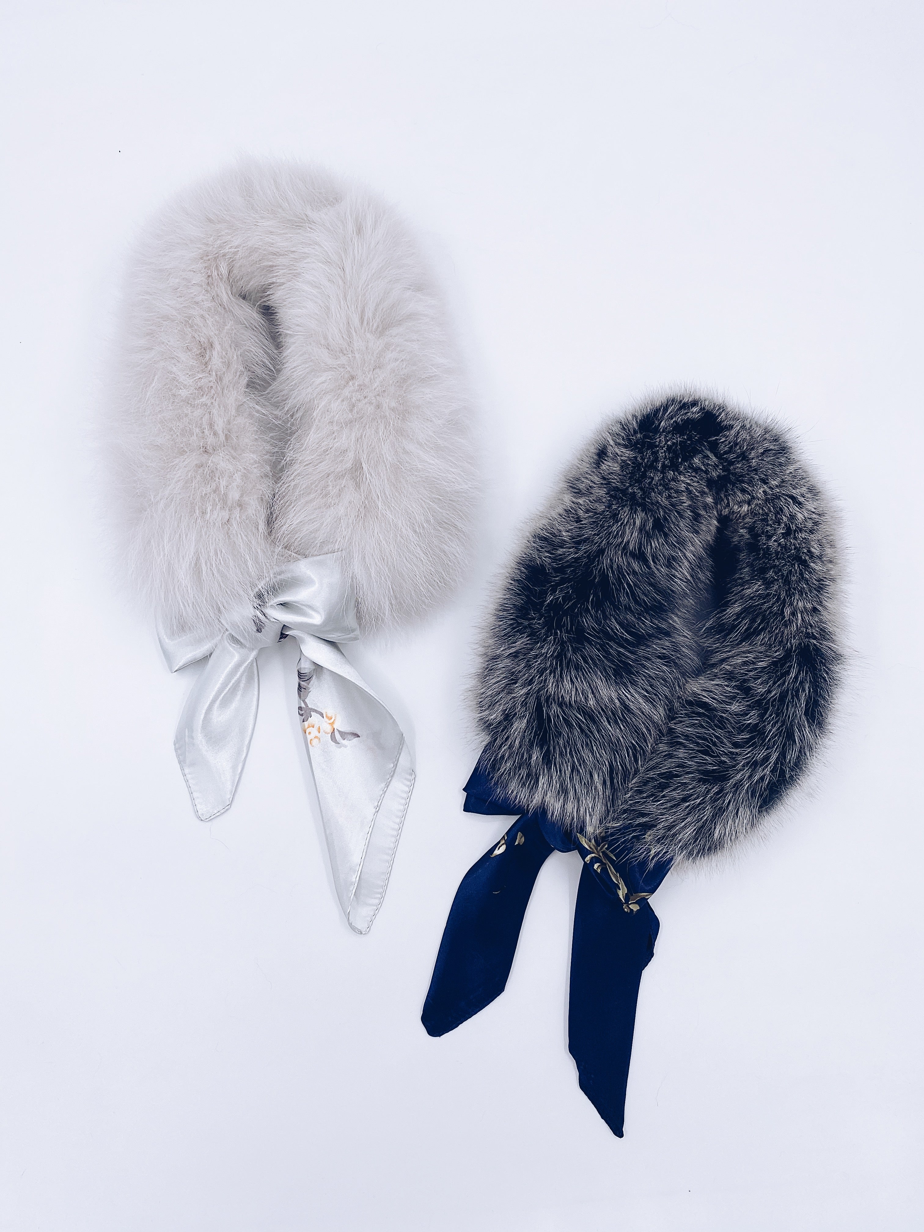 MI LOVES Signature Luxurious Fox fur collar with beautiful silk scarf.