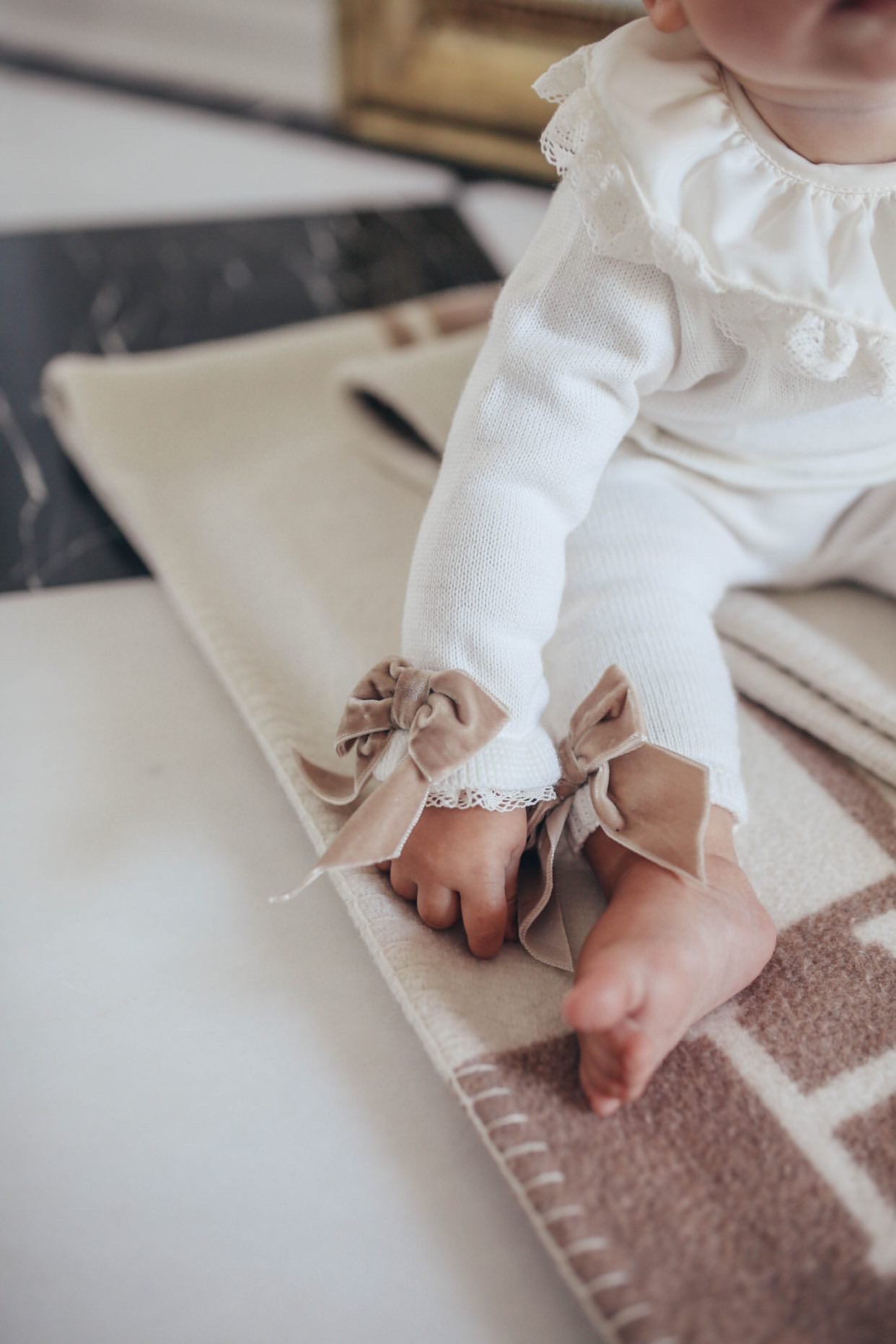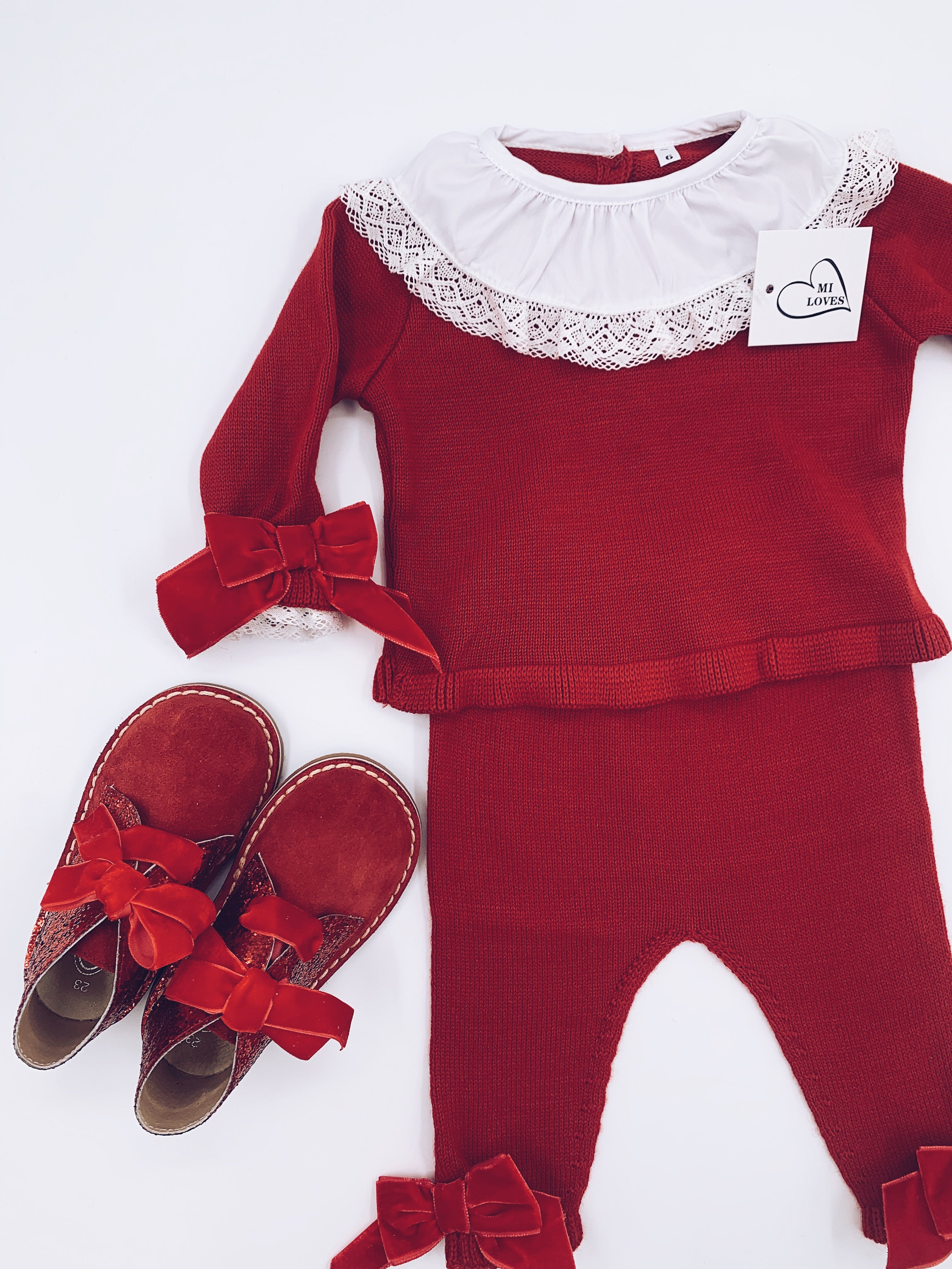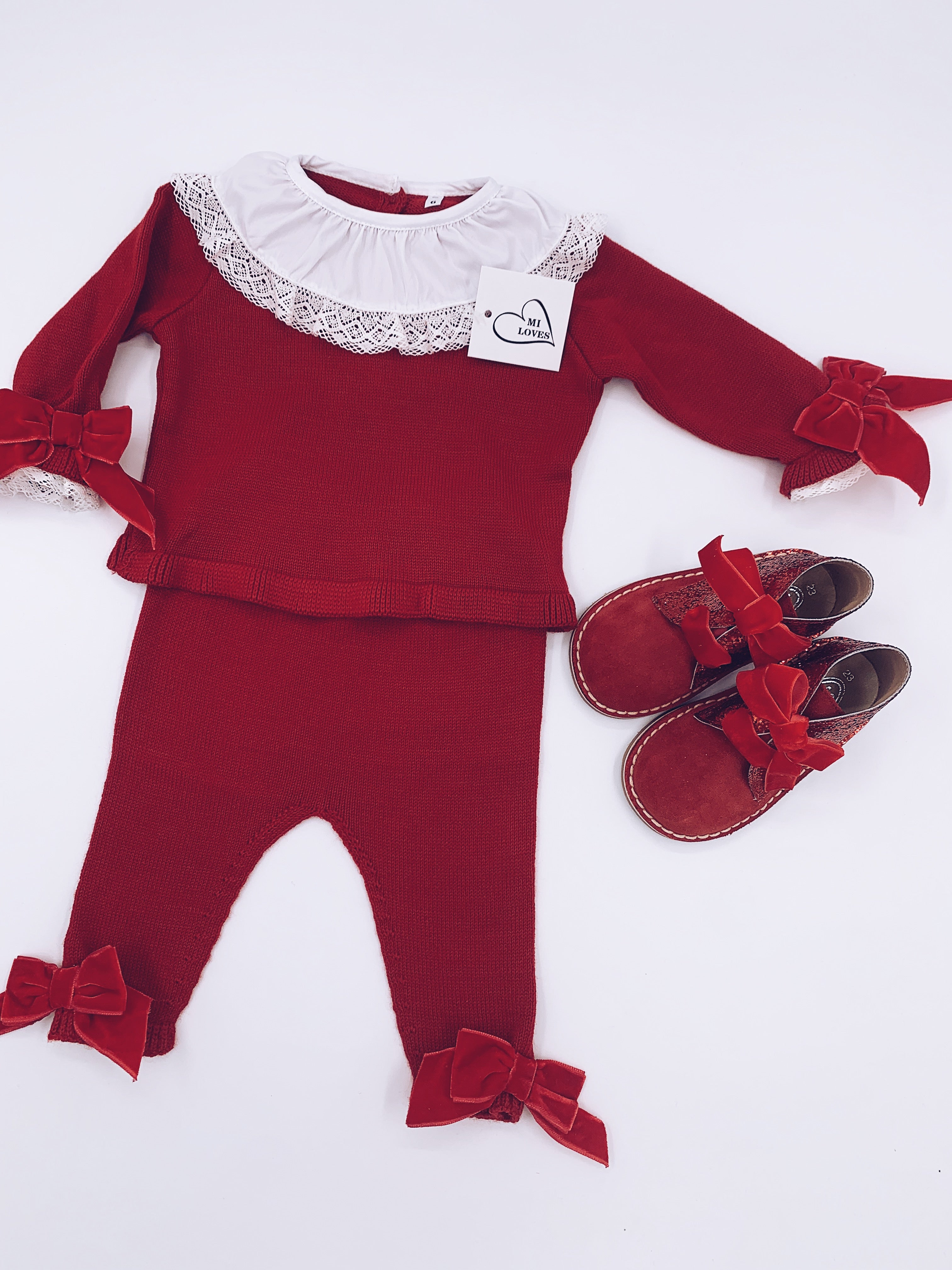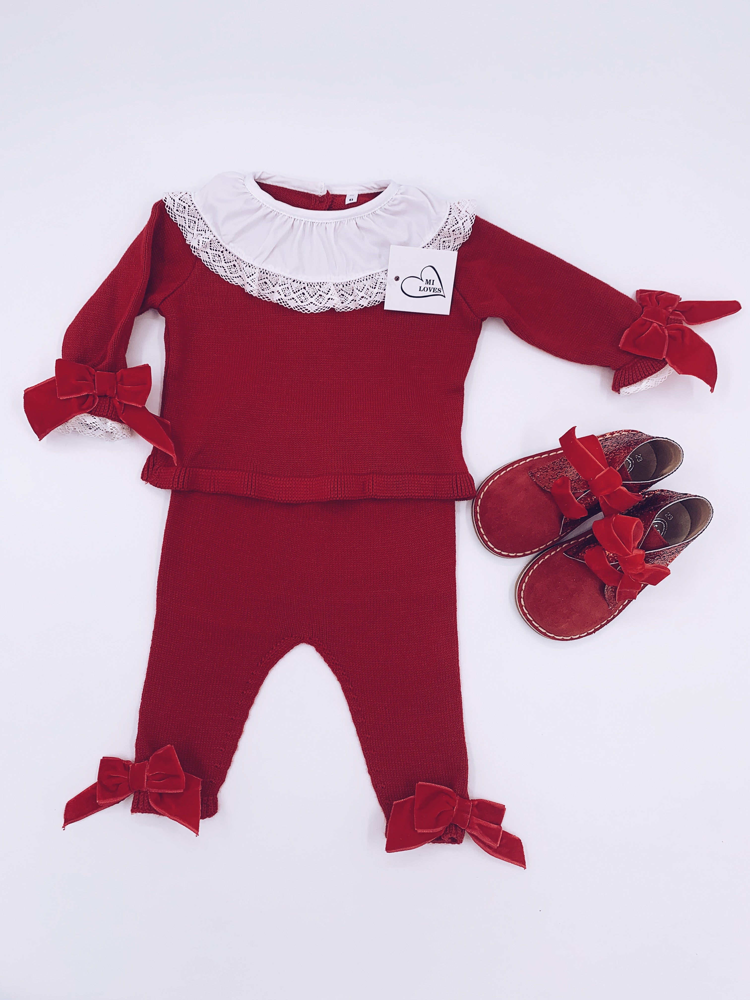 MI LOVES SIGNATURE LUXURIOUS Knitted suit with velvet bows in Red.