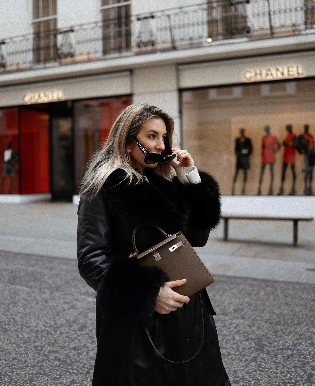 MI LOVES SIGNATURE Luxurious leather trench coat with Synthetic fur trim/cuffs
