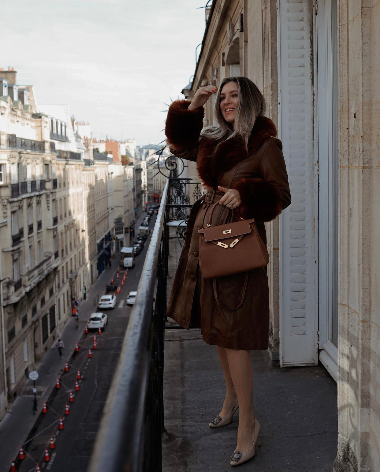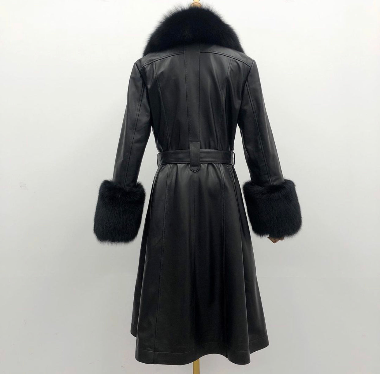 MI LOVES SIGNATURE Luxurious leather trench coat with Synthetic fur trim/cuffs.