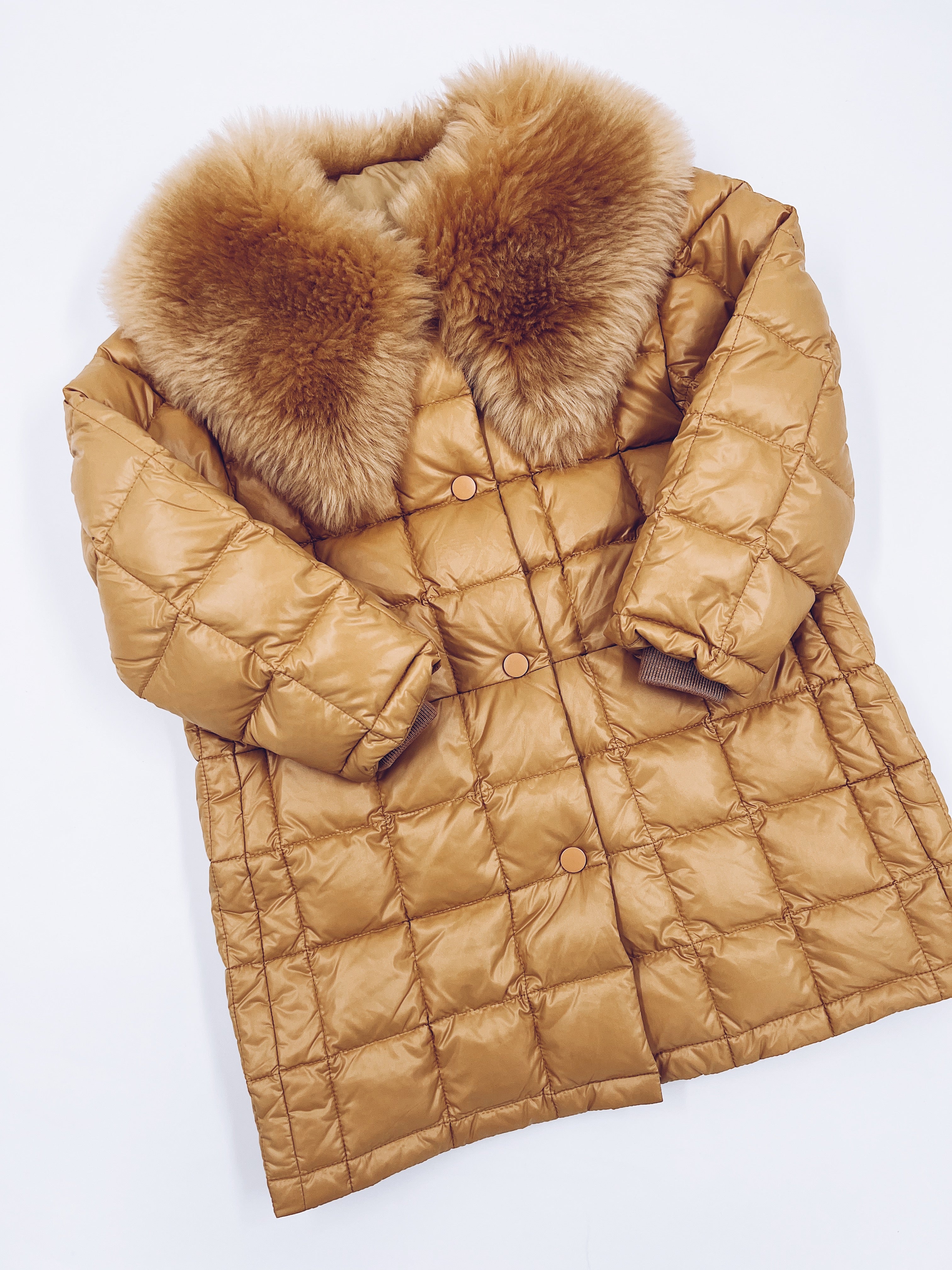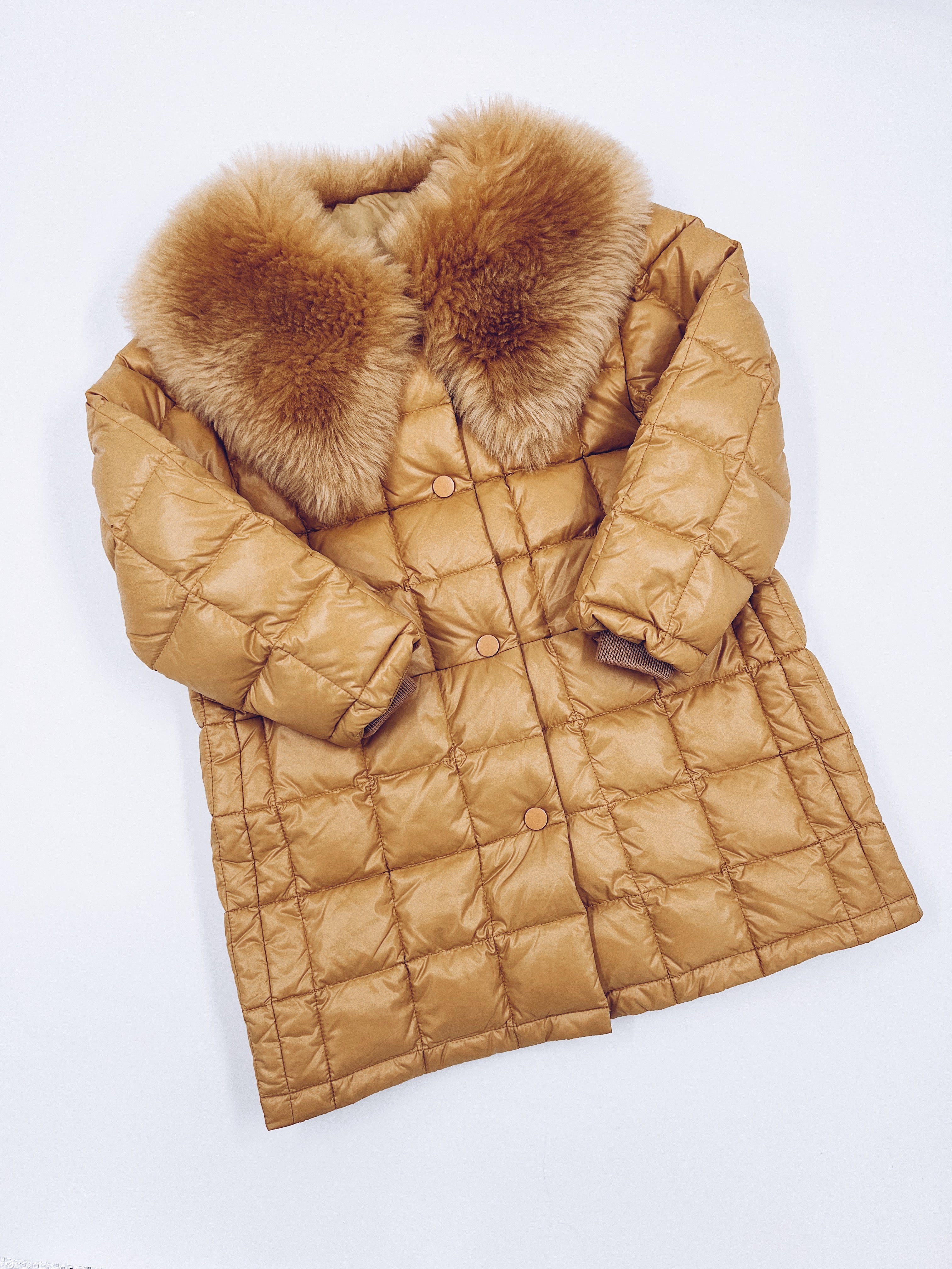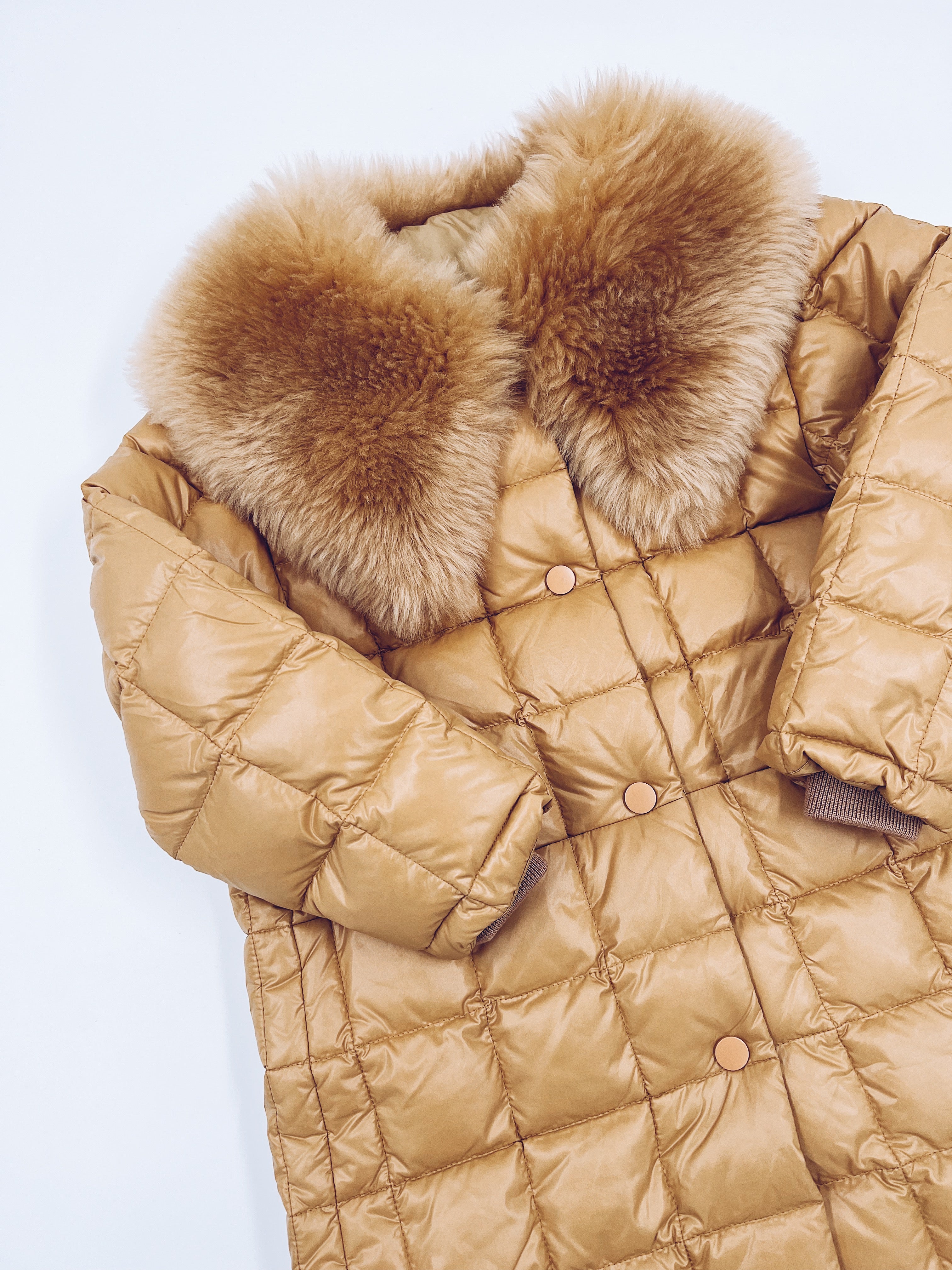 MI LOVES SIGNATURE Luxurious LONG LINE puff jacket with shearling fur collar.