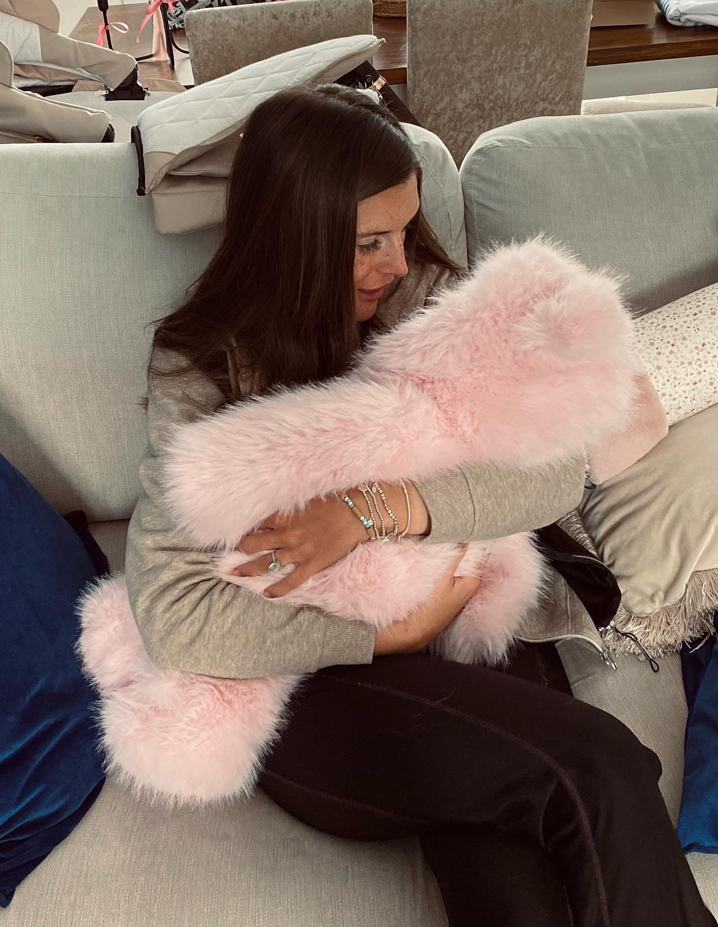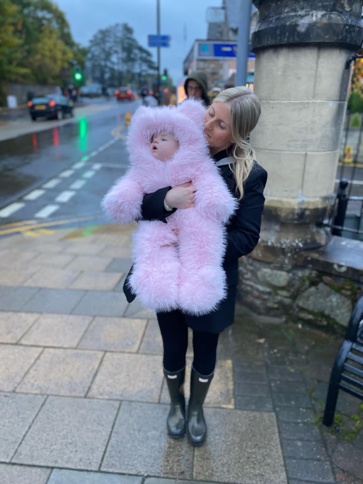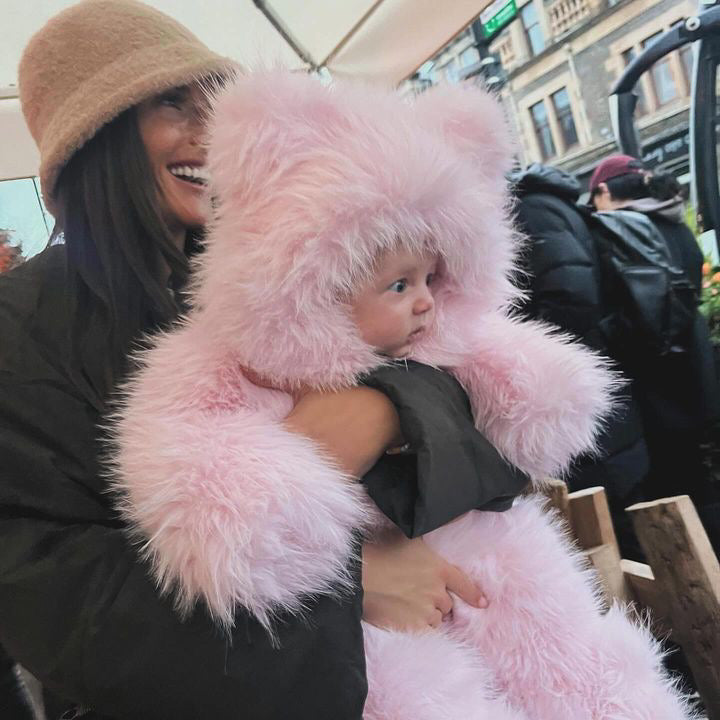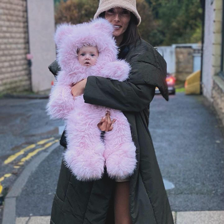 MI LOVES SIGNATURE SYNTHETIC Little Bear Pramsuit in Pink .Beautiful,warm and thick pramsuit is perfect for AW season.