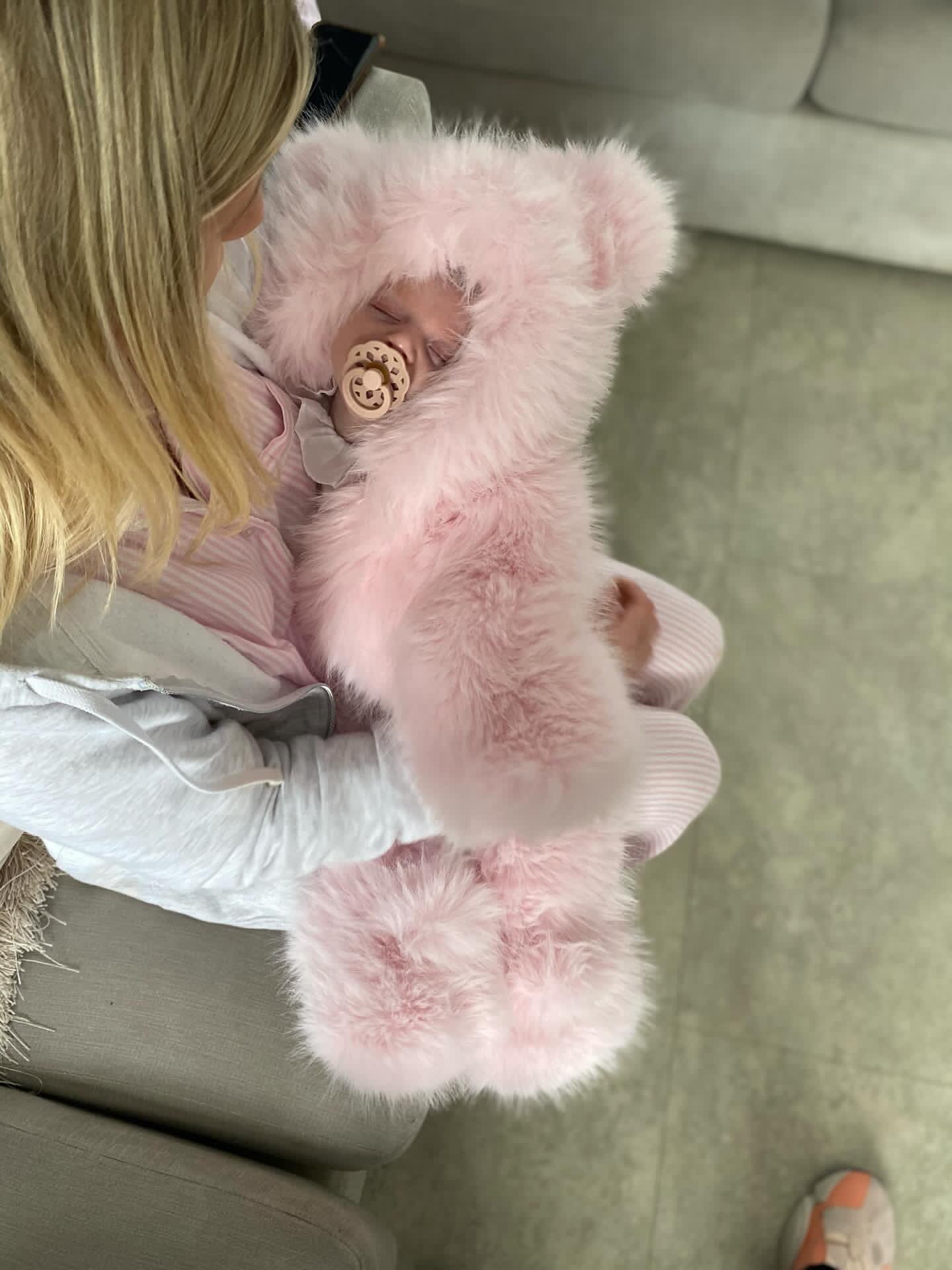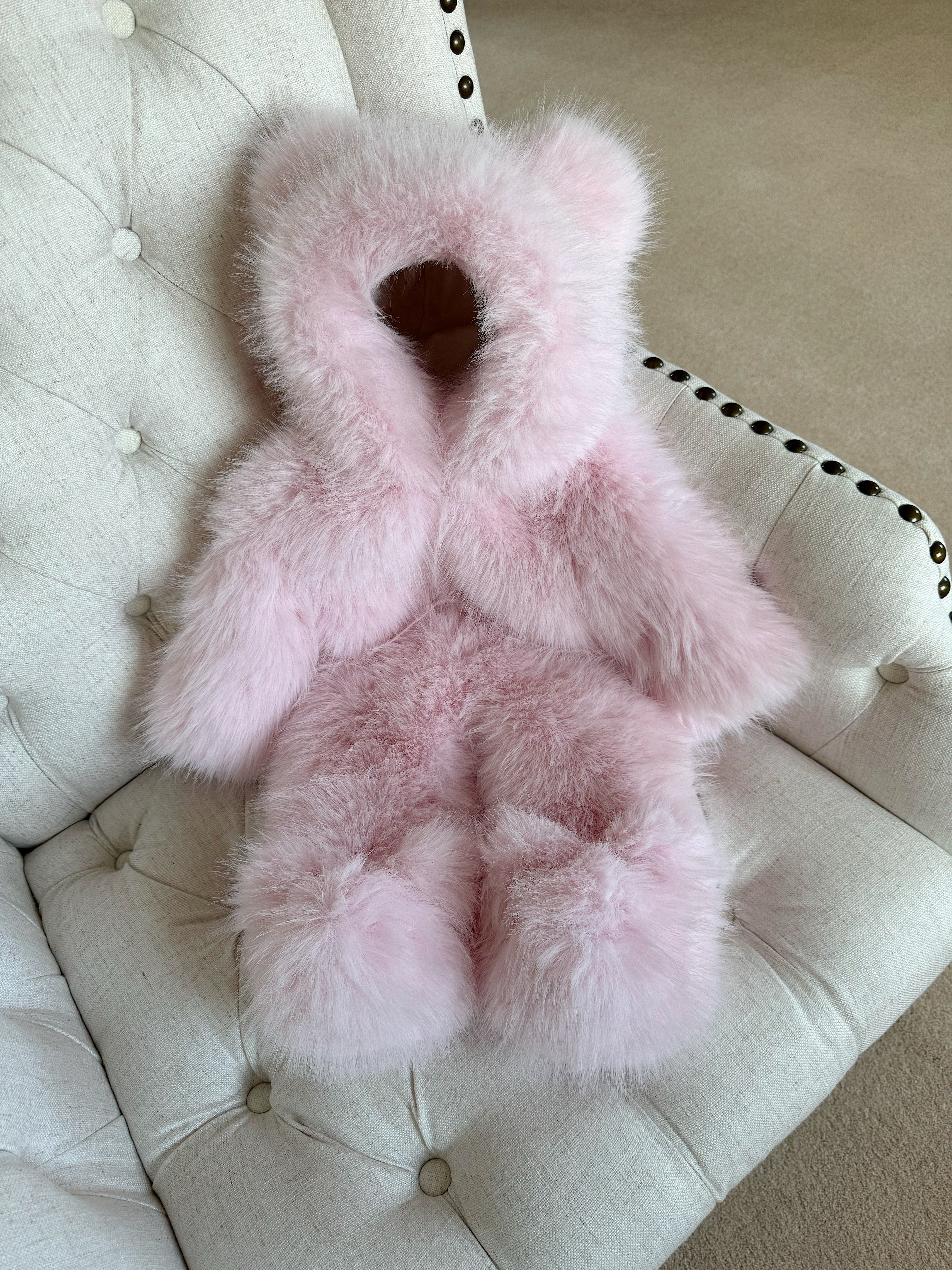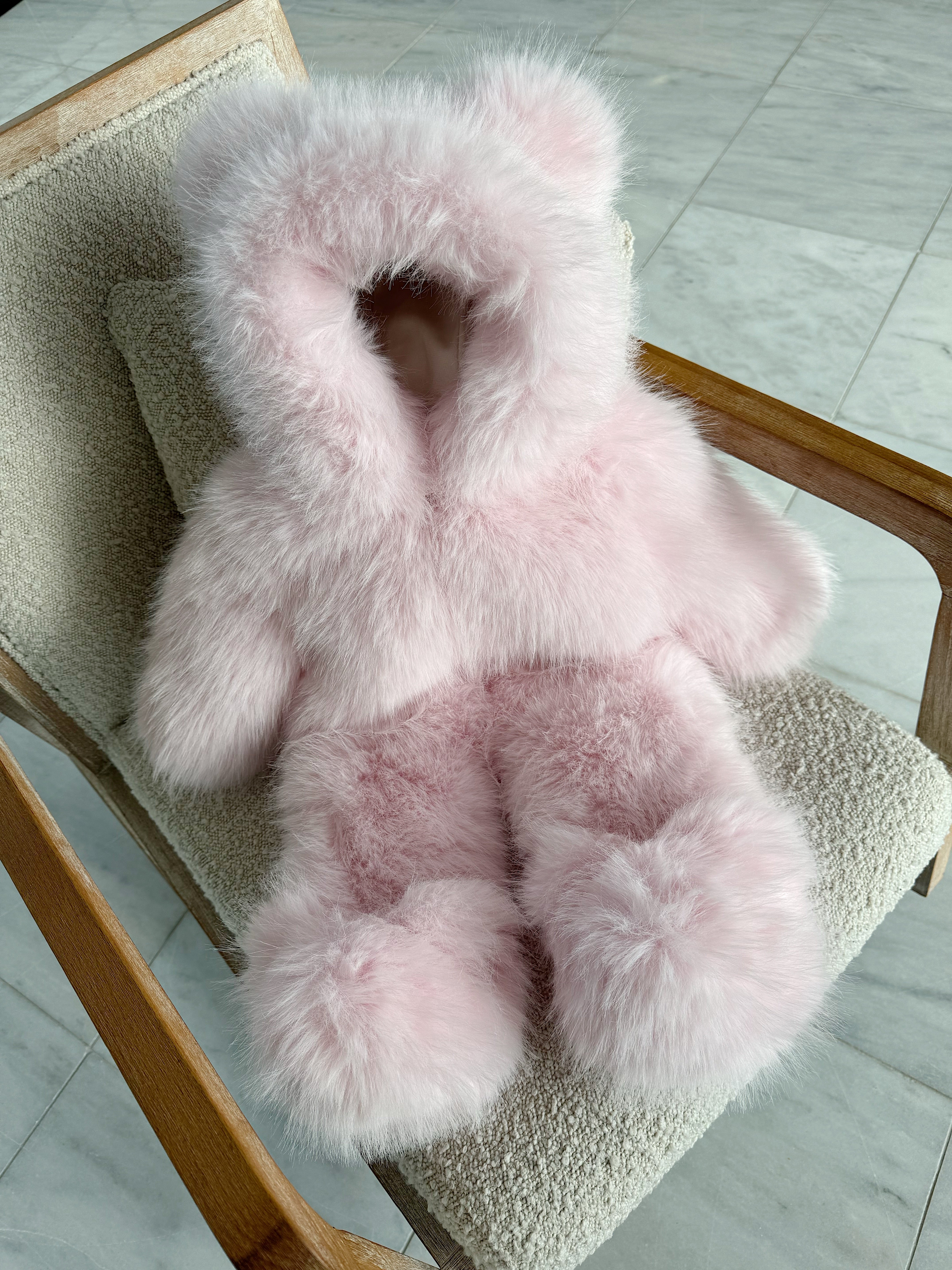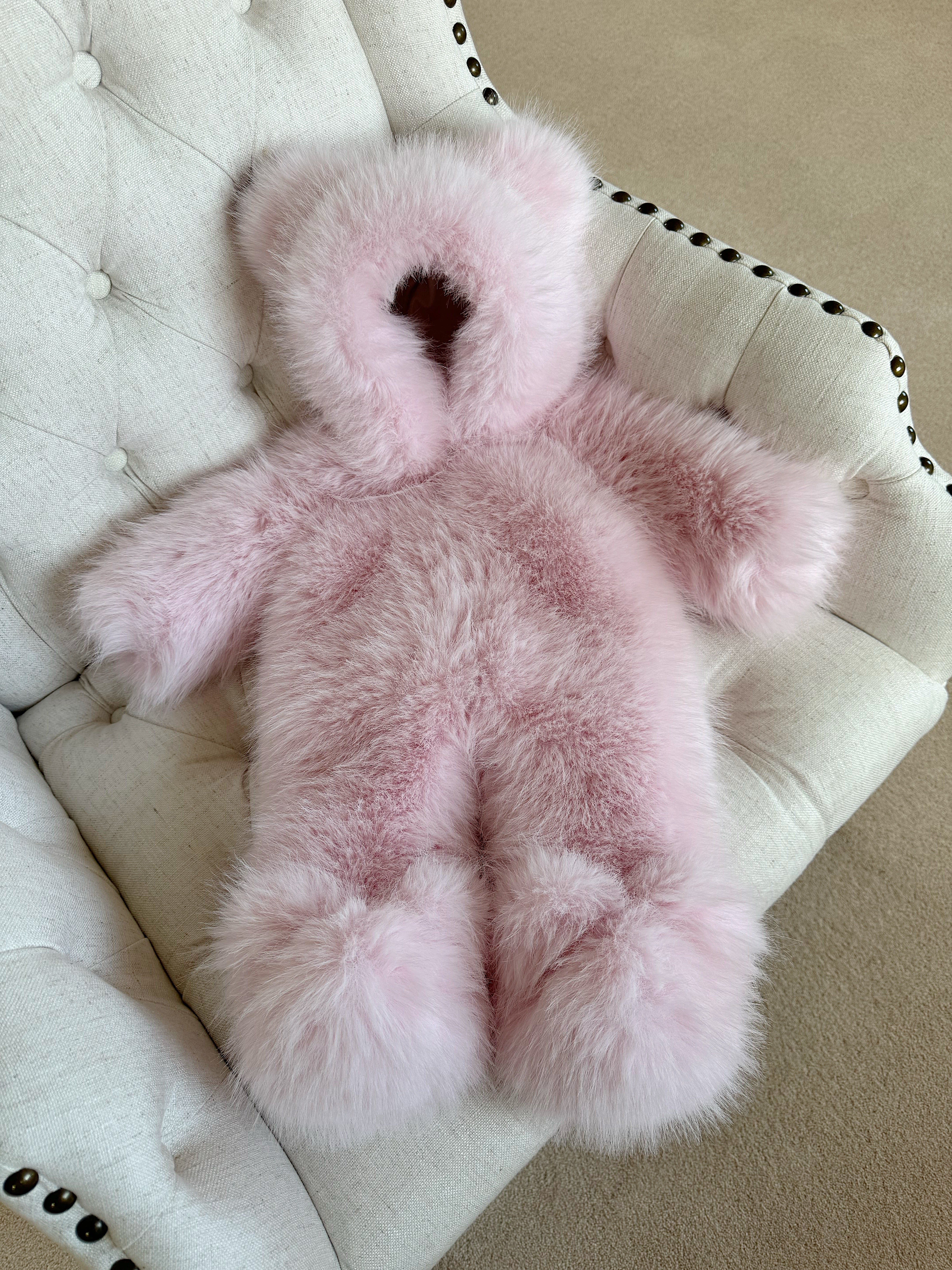 MI LOVES SIGNATURE SYNTHETIC Little Bear Pramsuit in Pink.