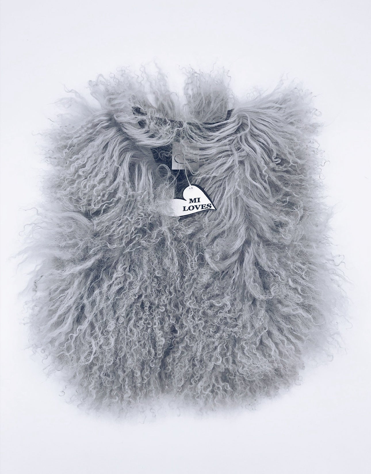 MILOVES Signature Luxurious Mongolian lamb fur kids vest in Grey.
