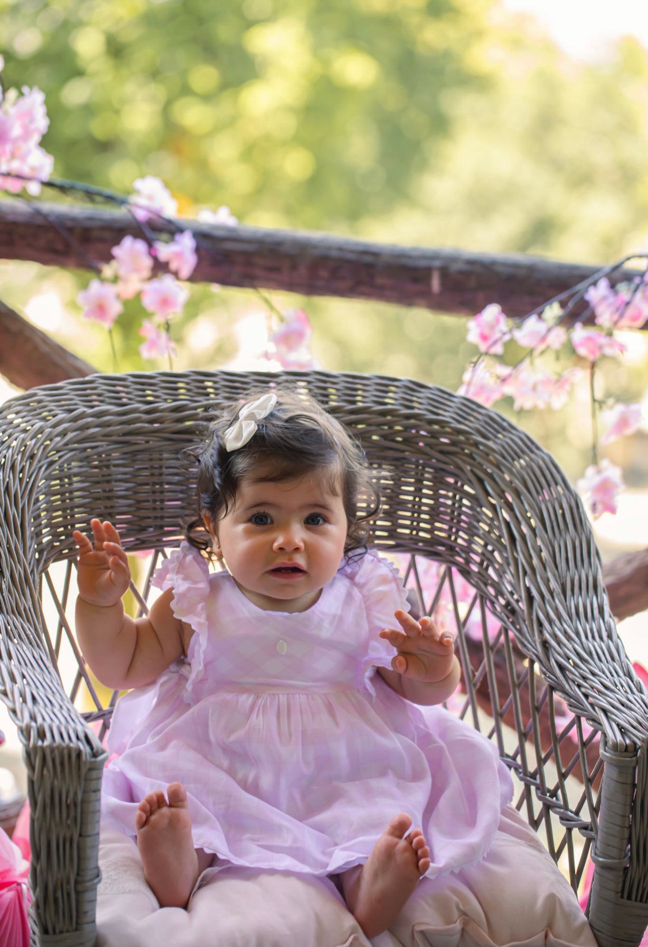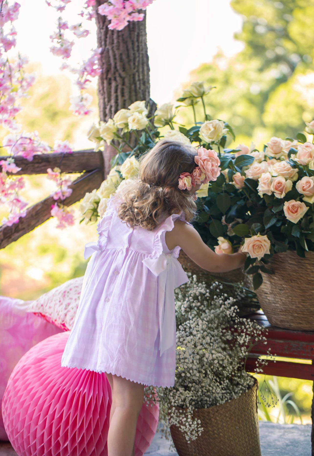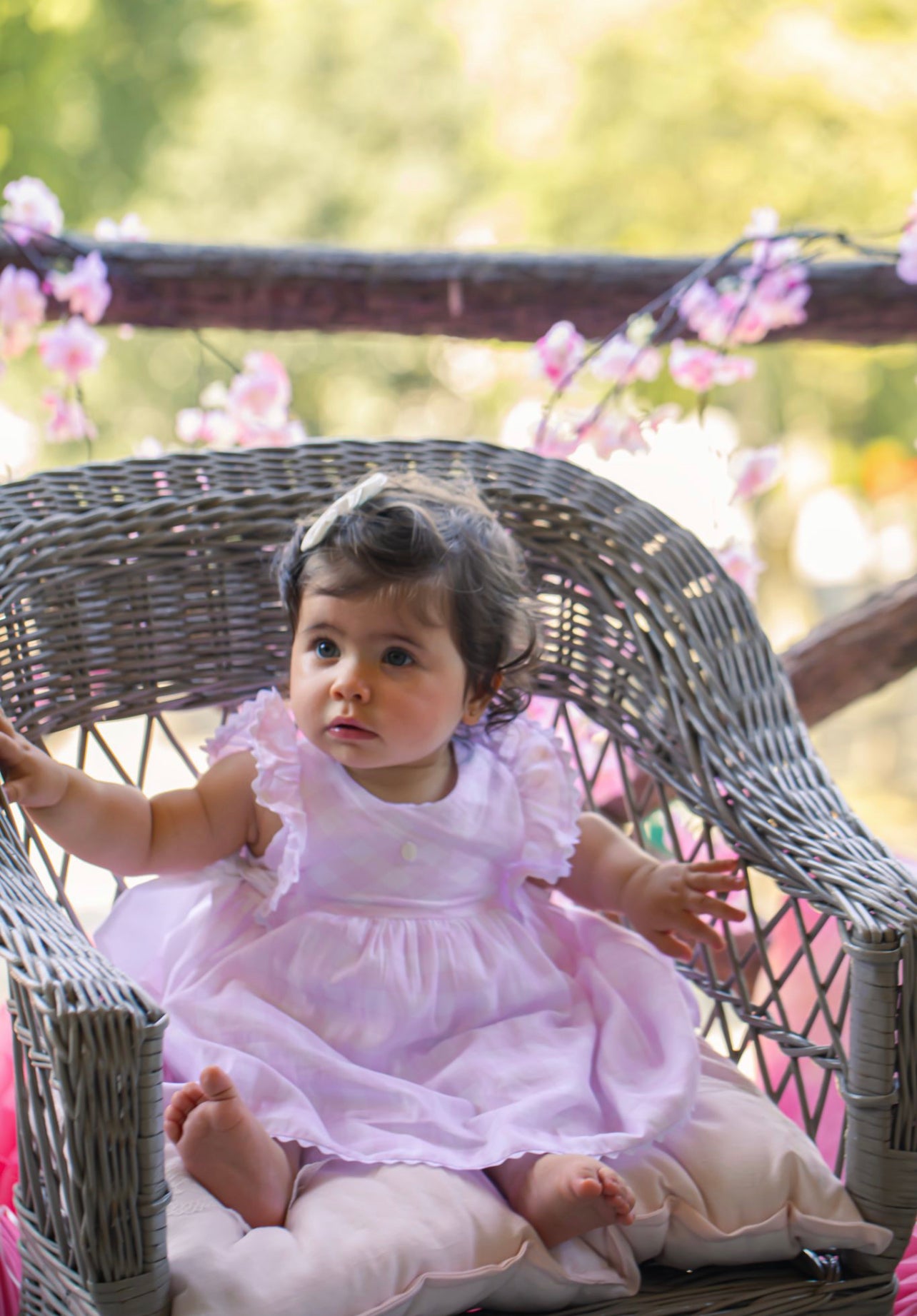 Patachou Beautiful Pink Baby Girl dress with white bow details.