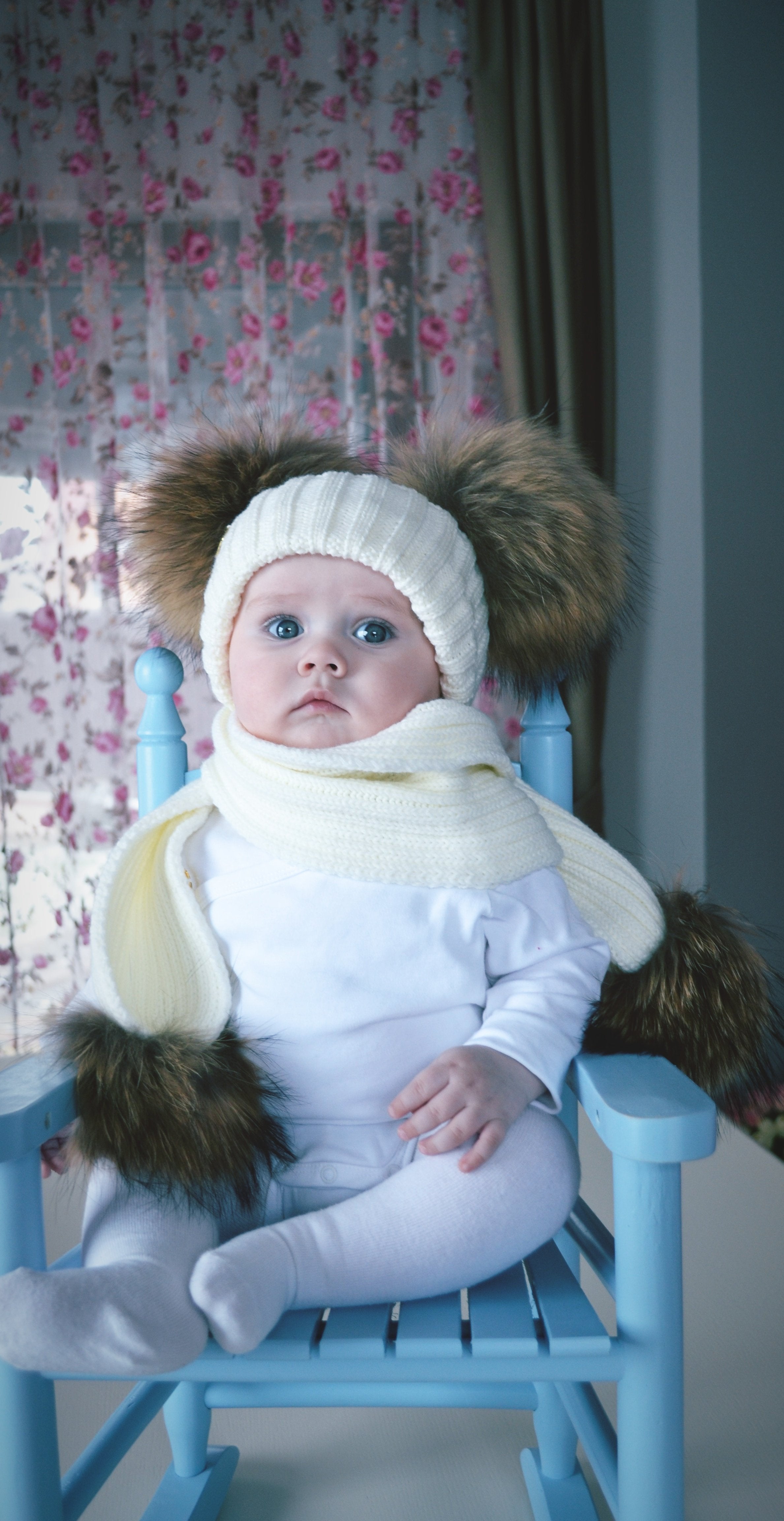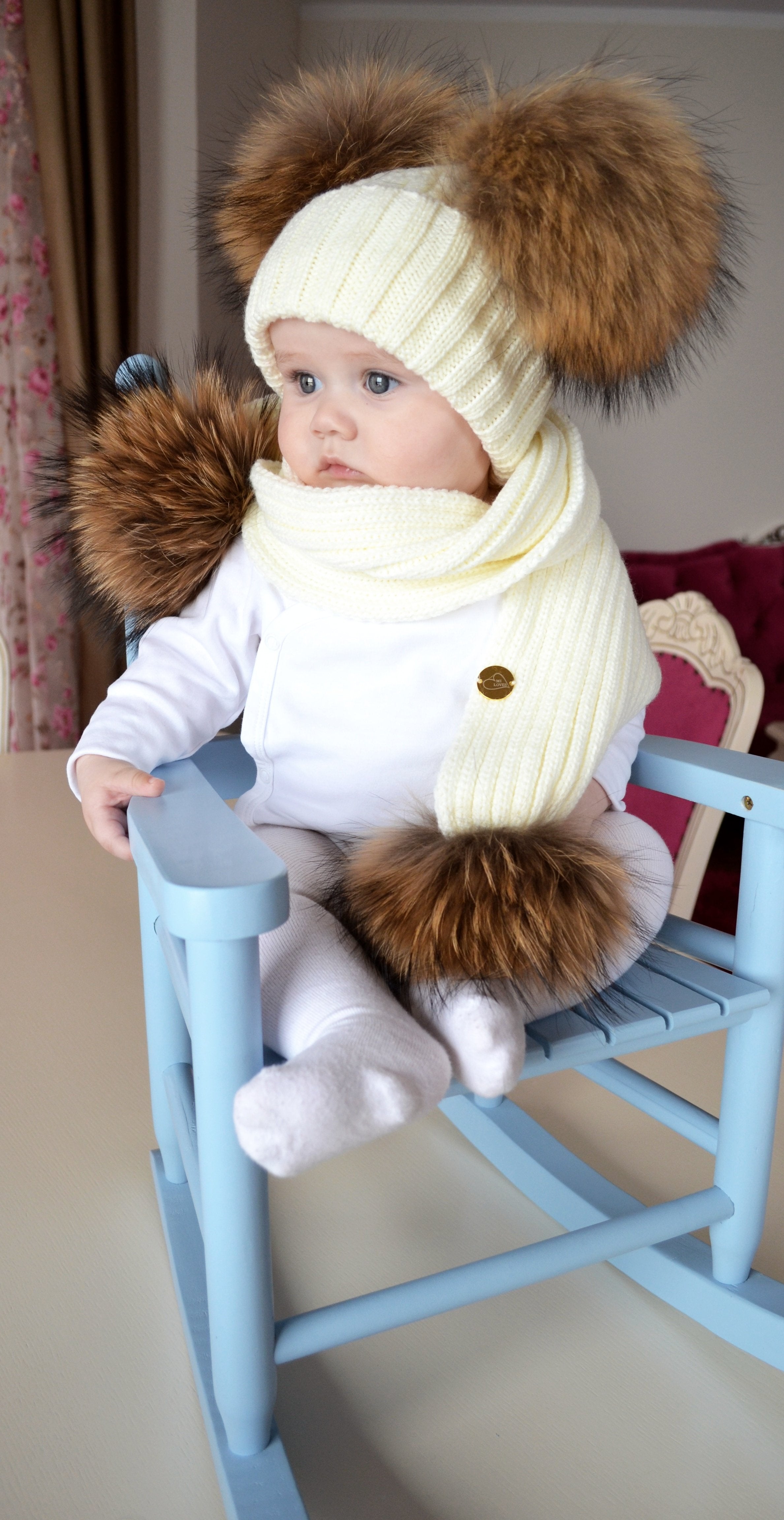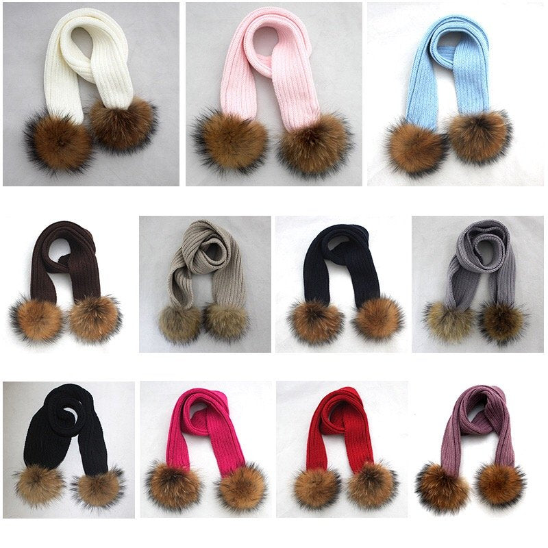 Kids Scarf with natural PomPom ,Fits 0-5 years old(SCARF ONLY)
