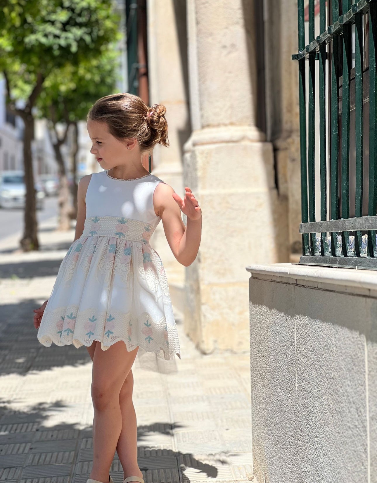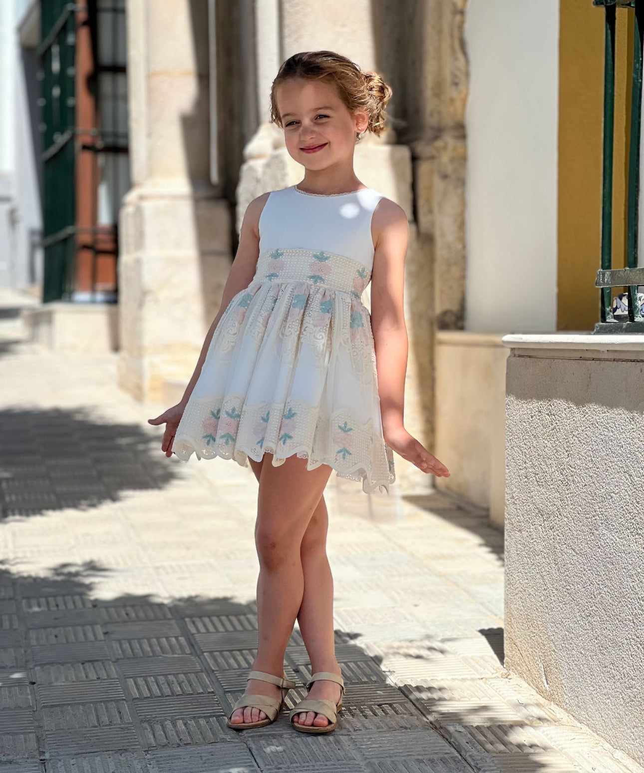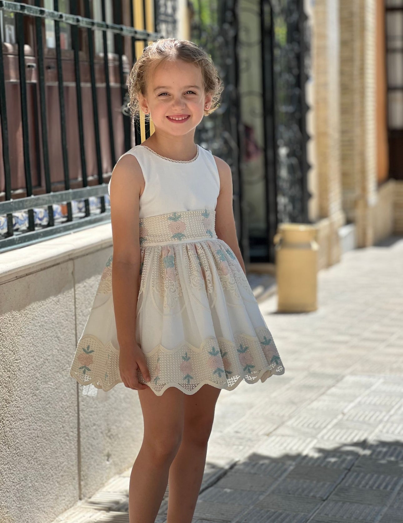 MI LOVES SIGNATURE Beautiful Ivory dress with lace and floral print details.