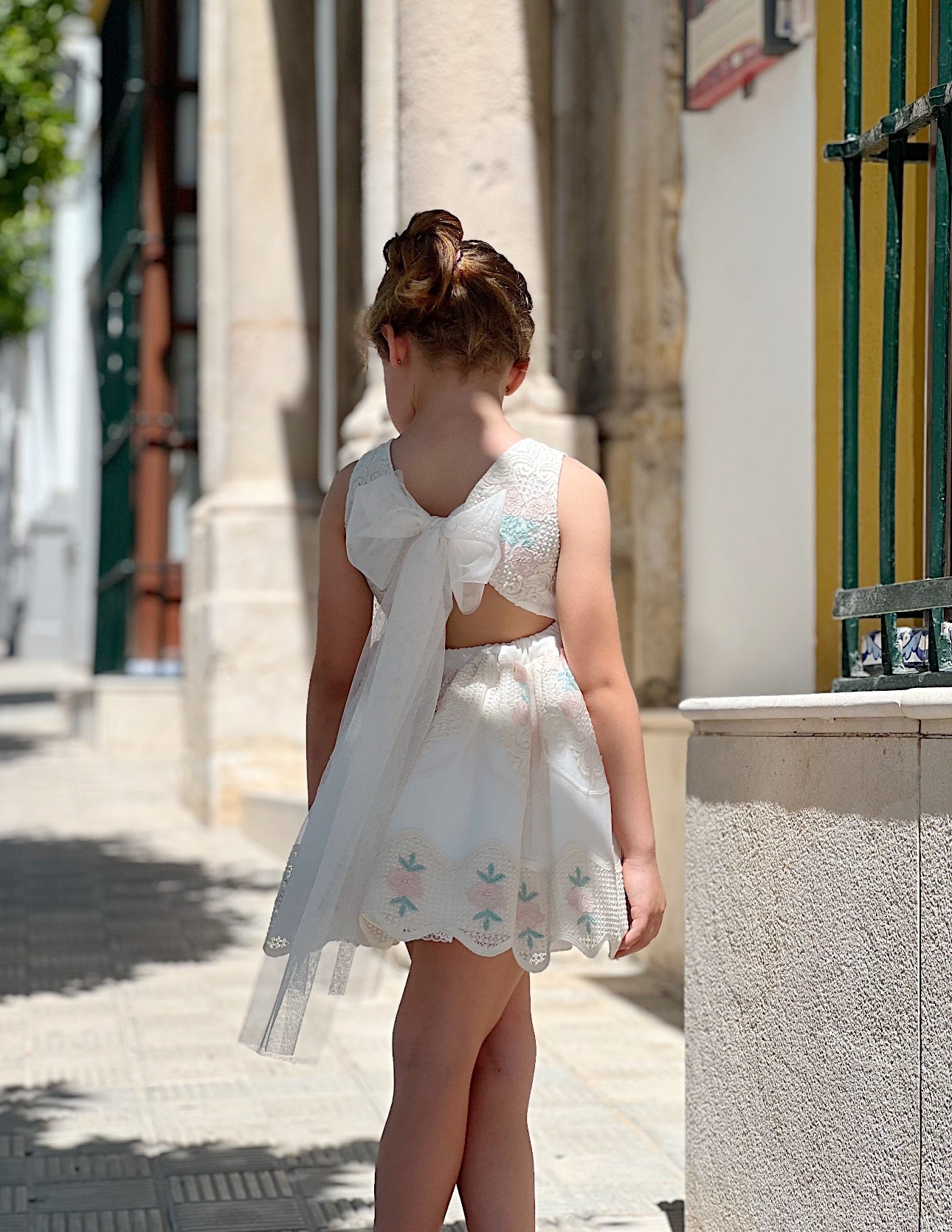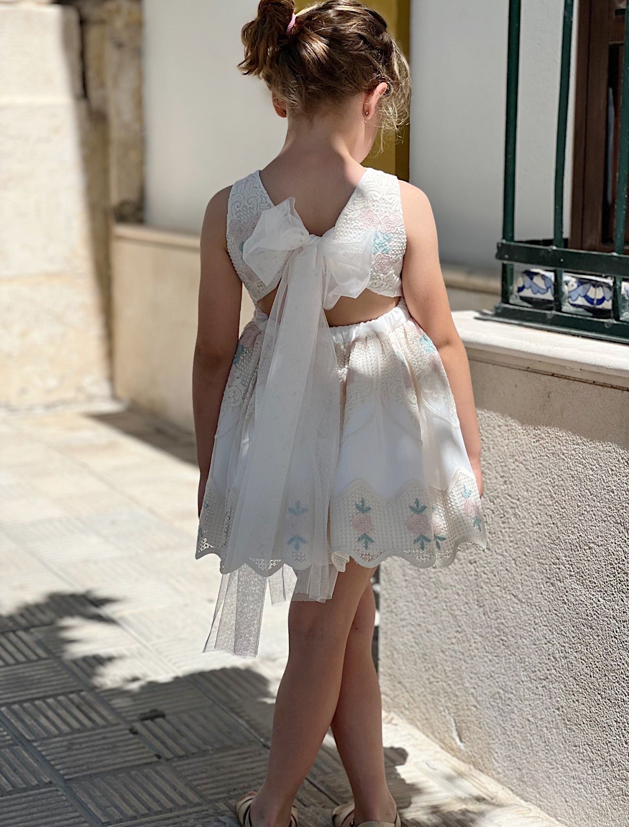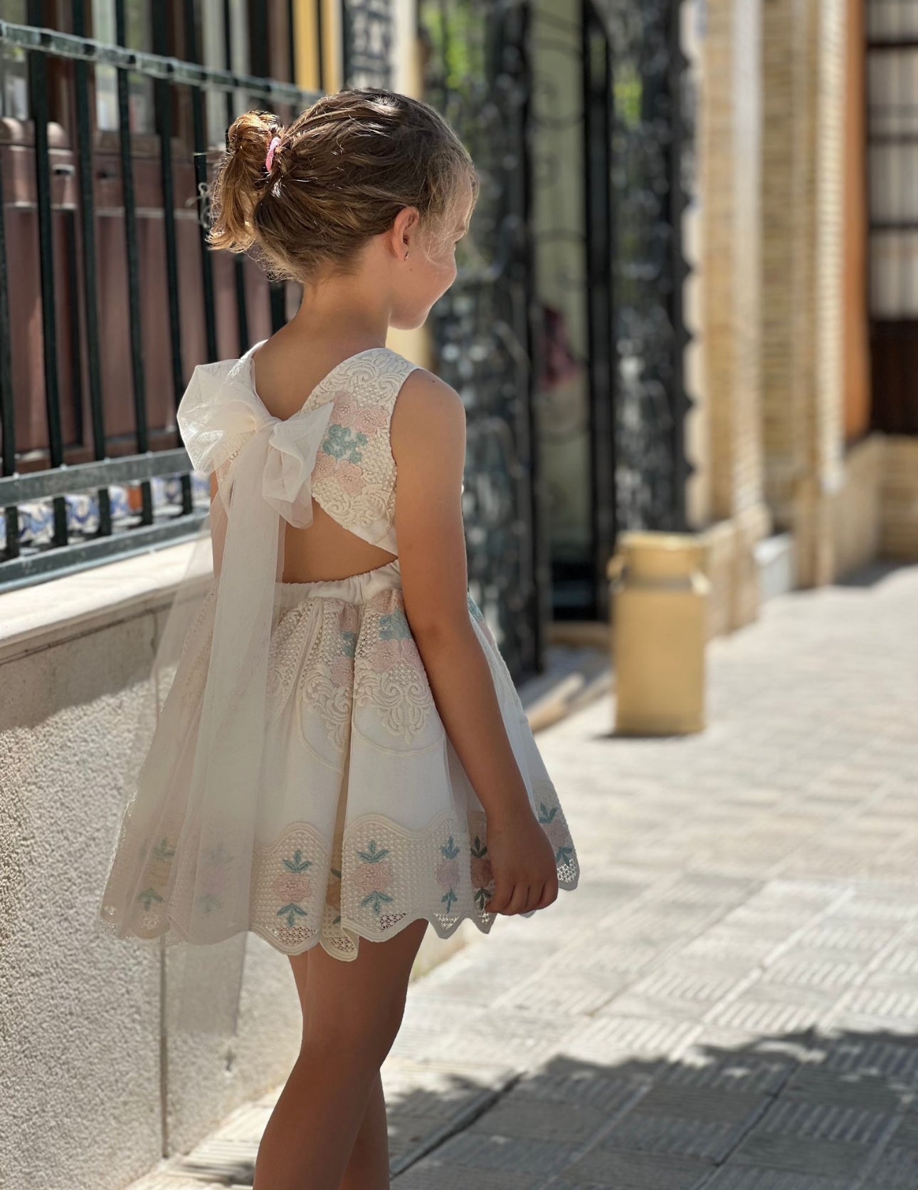 MI LOVES SIGNATURE Beautiful Ivory dress with lace and floral print details.