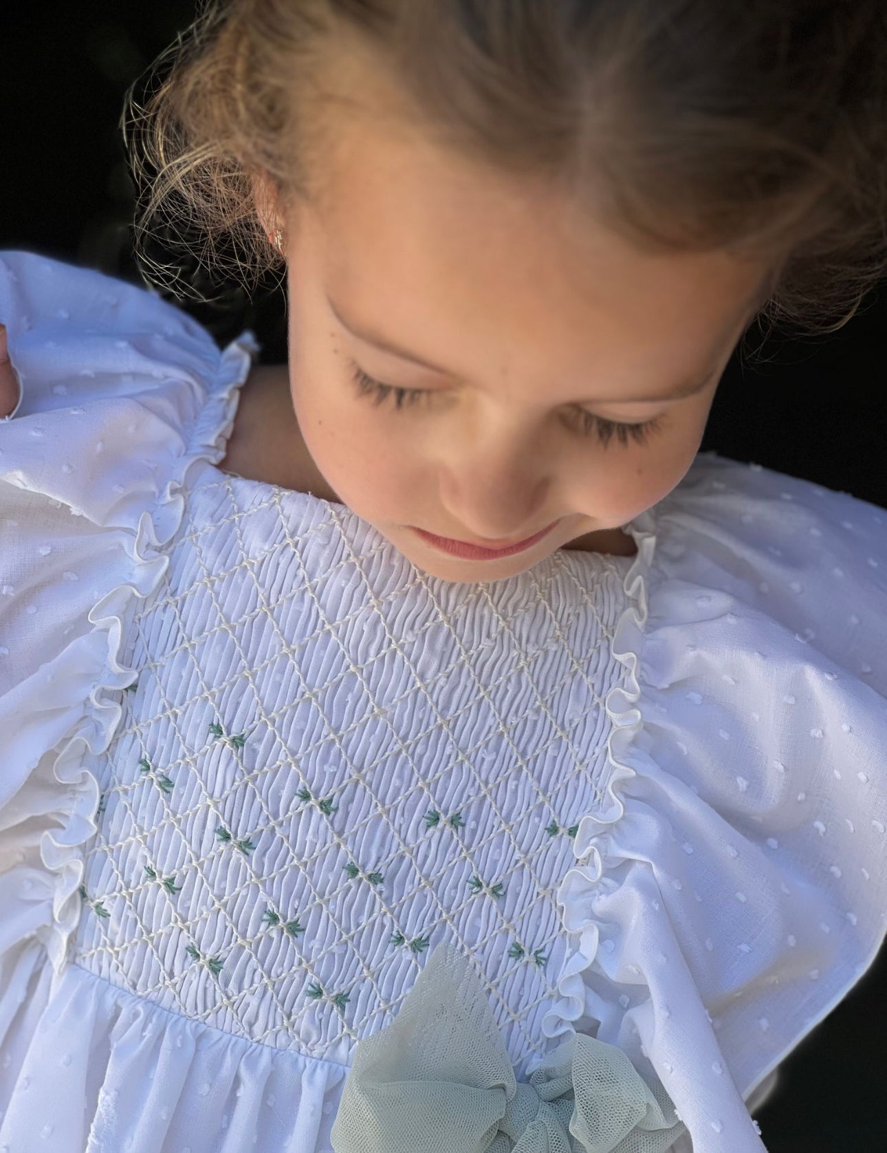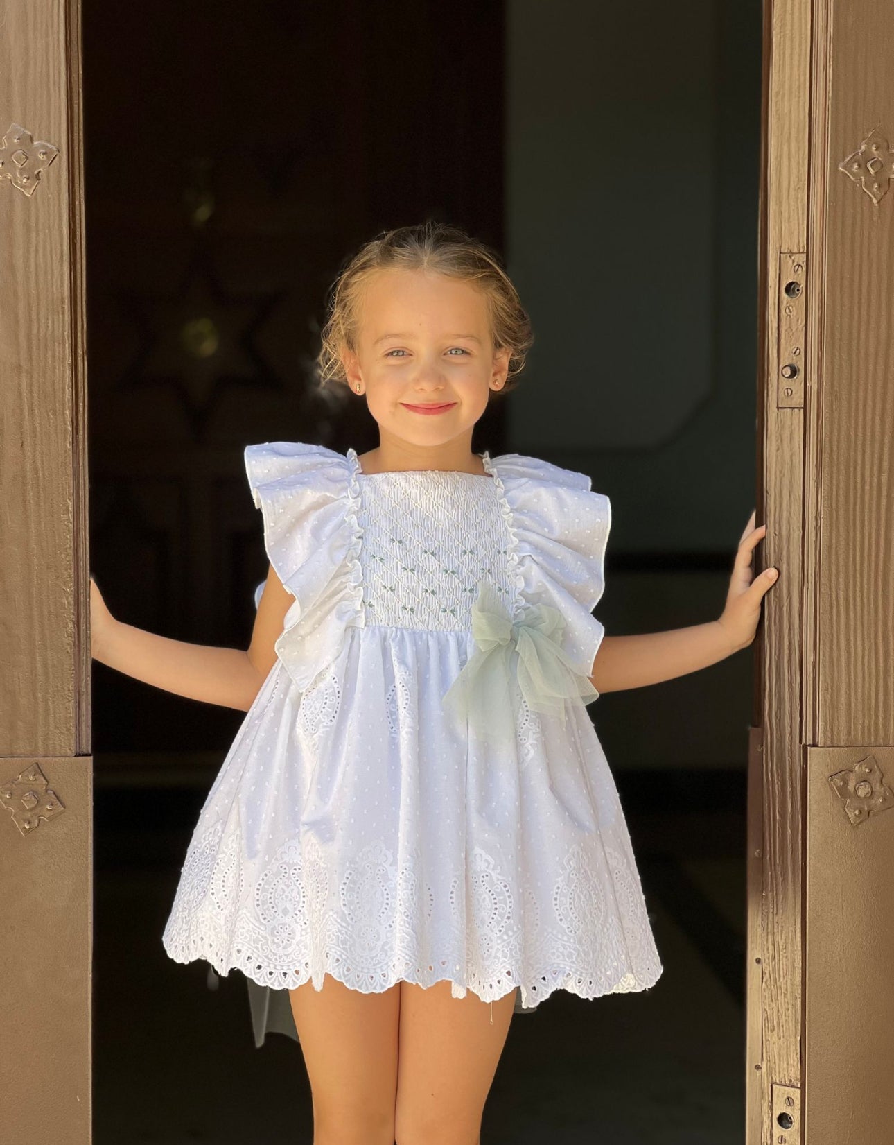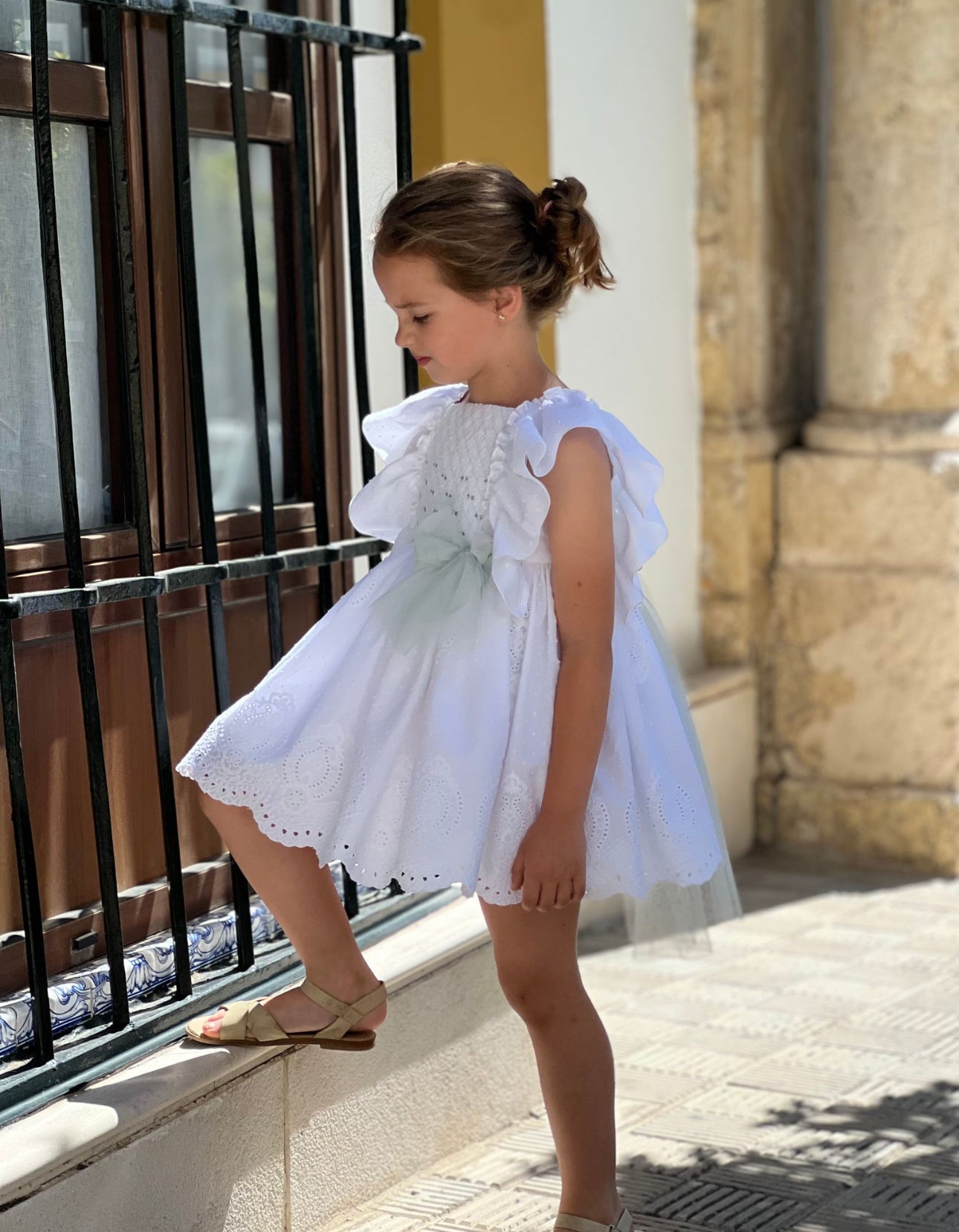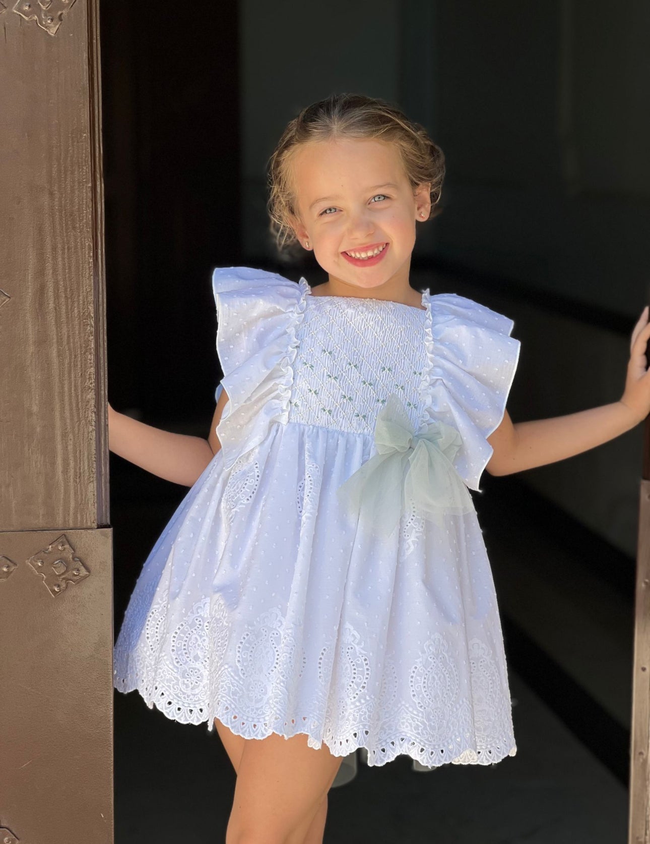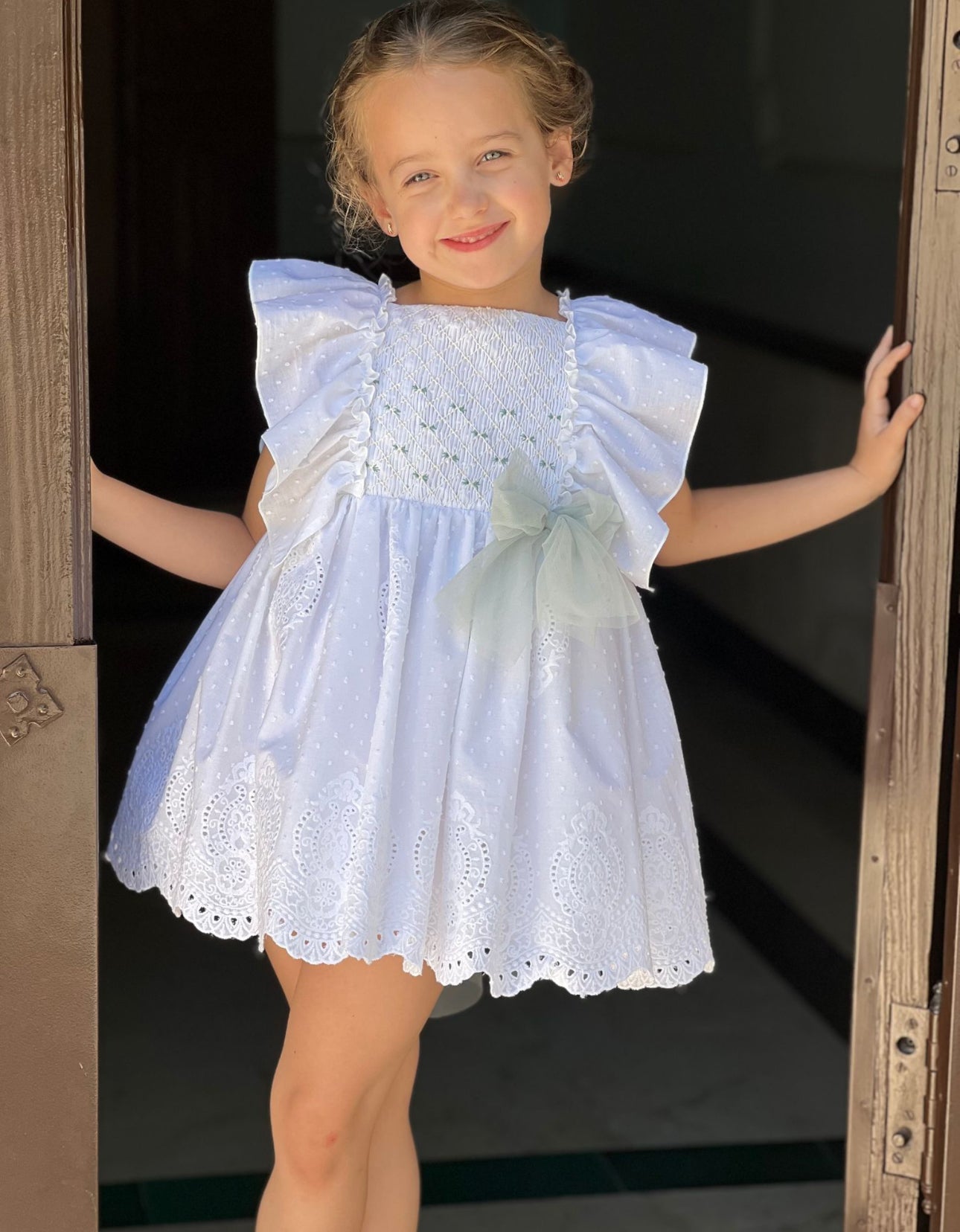 MI LOVES SIGNATURE Beautiful white dress with hand smoked and bow details.