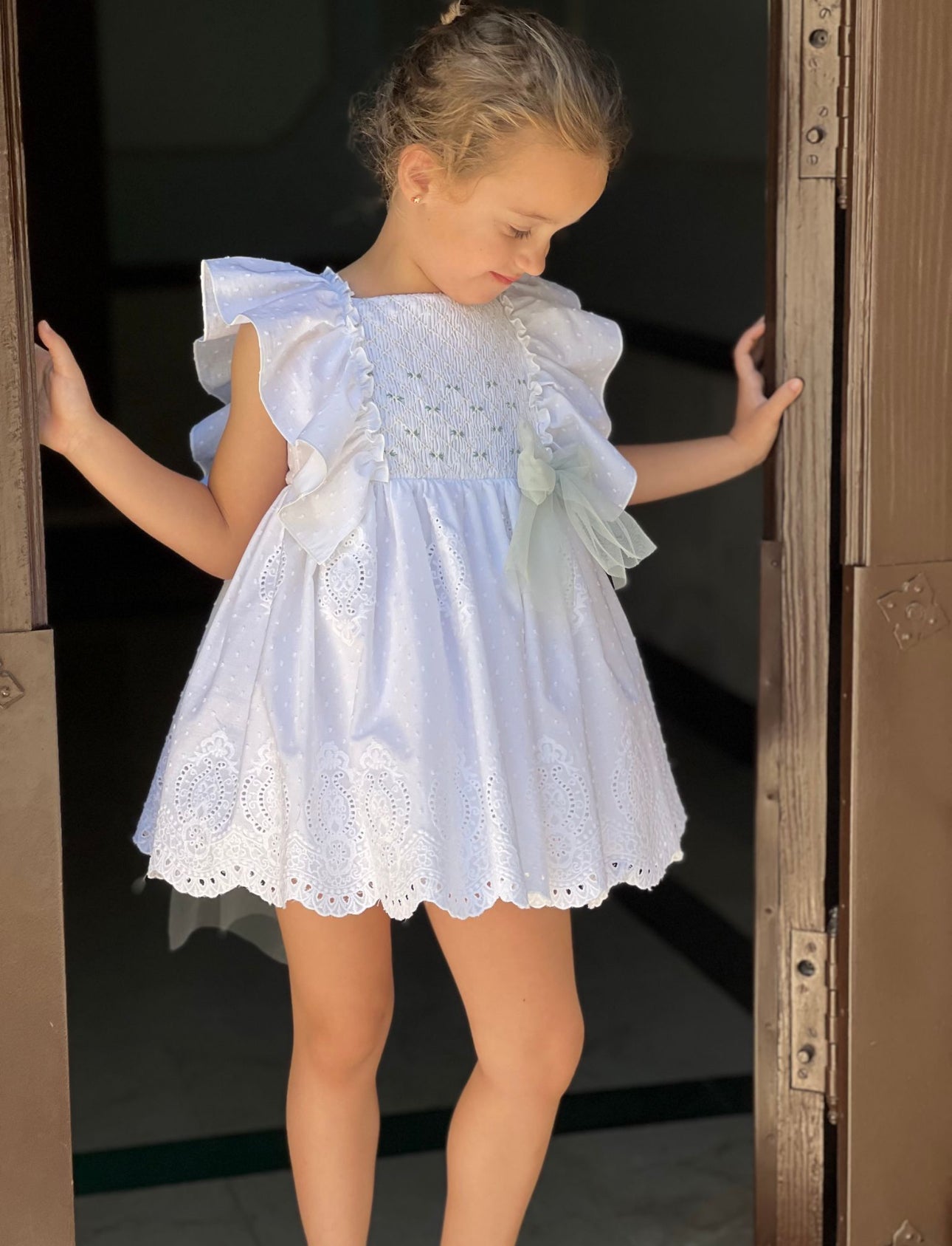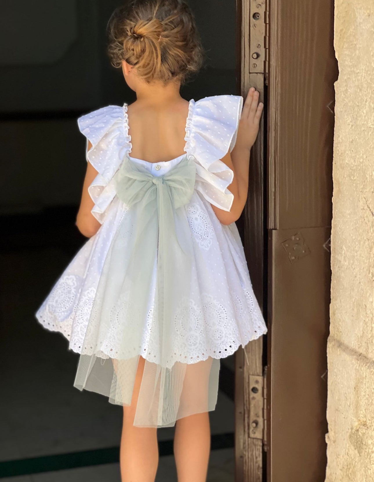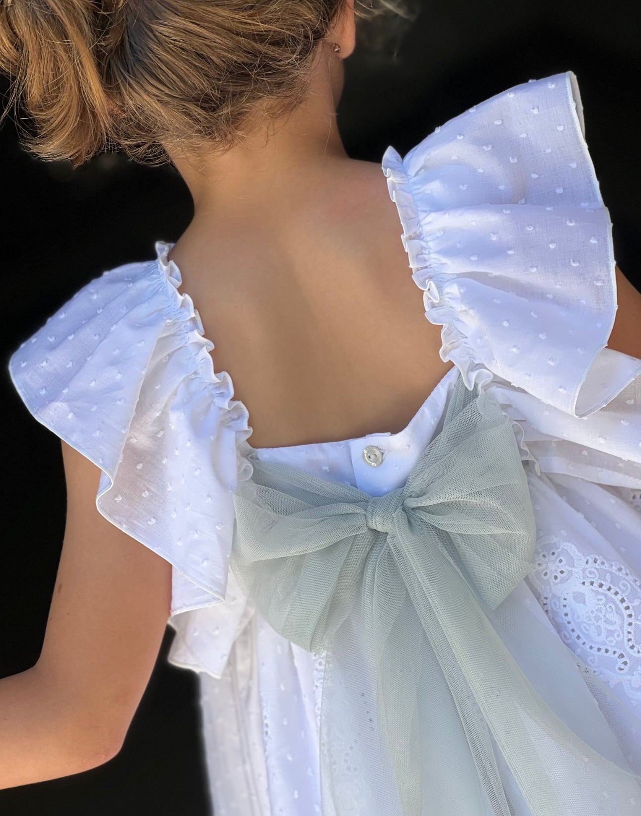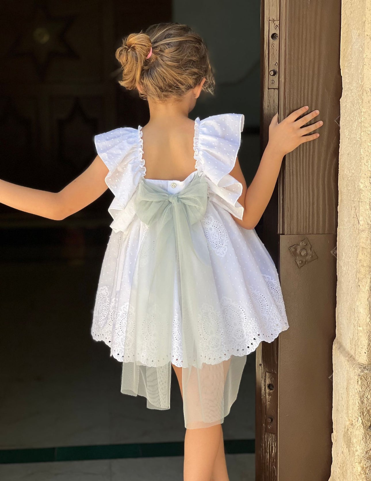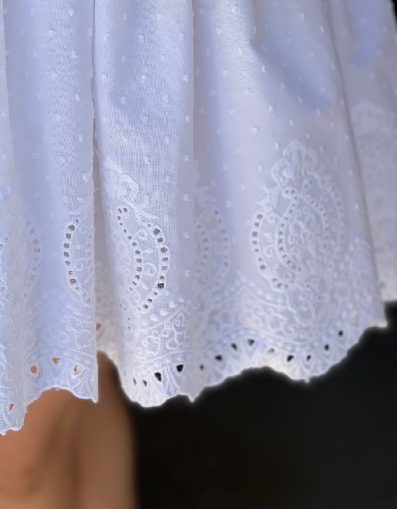 MI LOVES SIGNATURE Beautiful white dress with hand smoked and bow details.