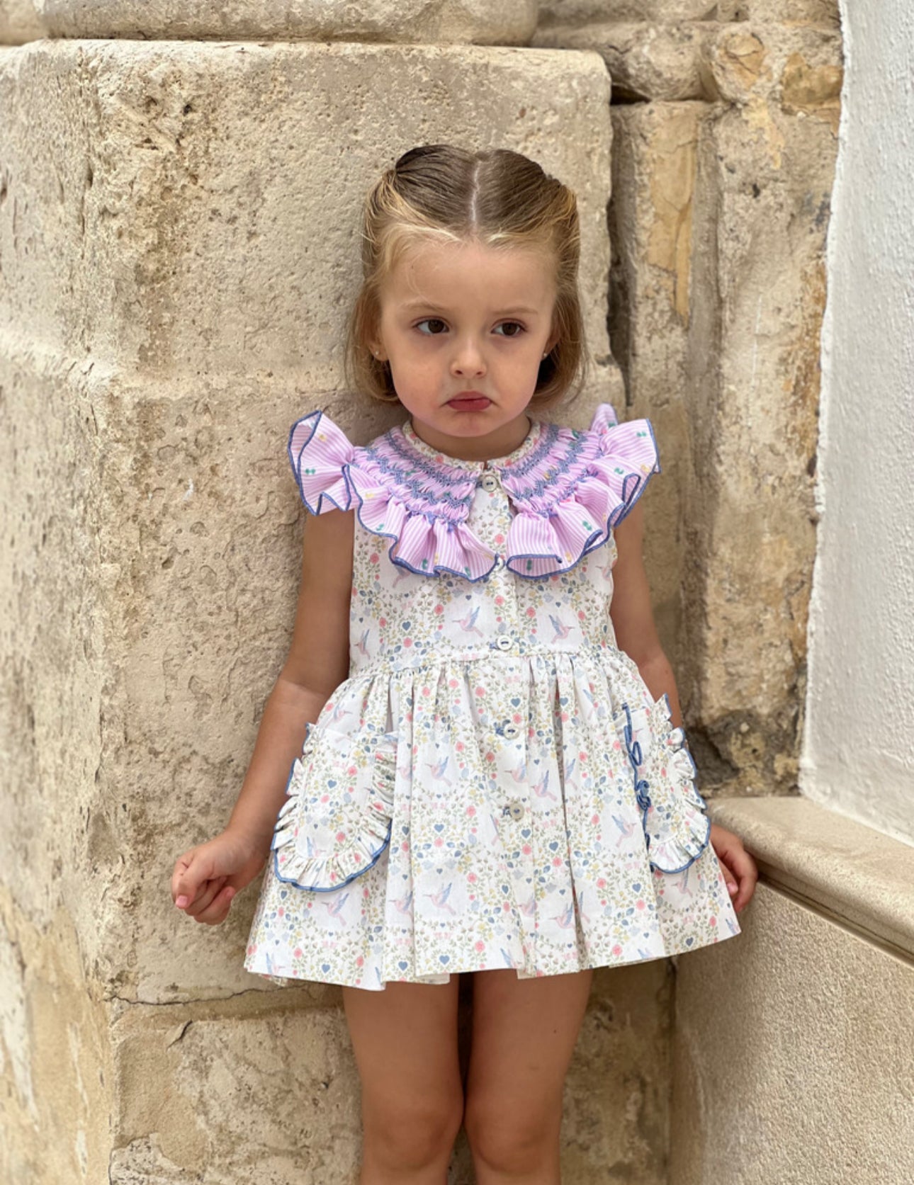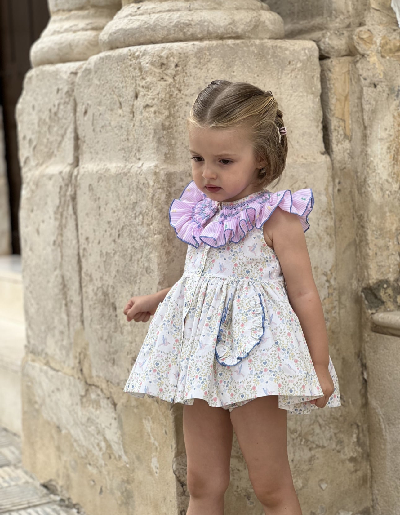 MI LOVES SIGNATURE hand smoked dress/bloomers 2 piece set with floral details.