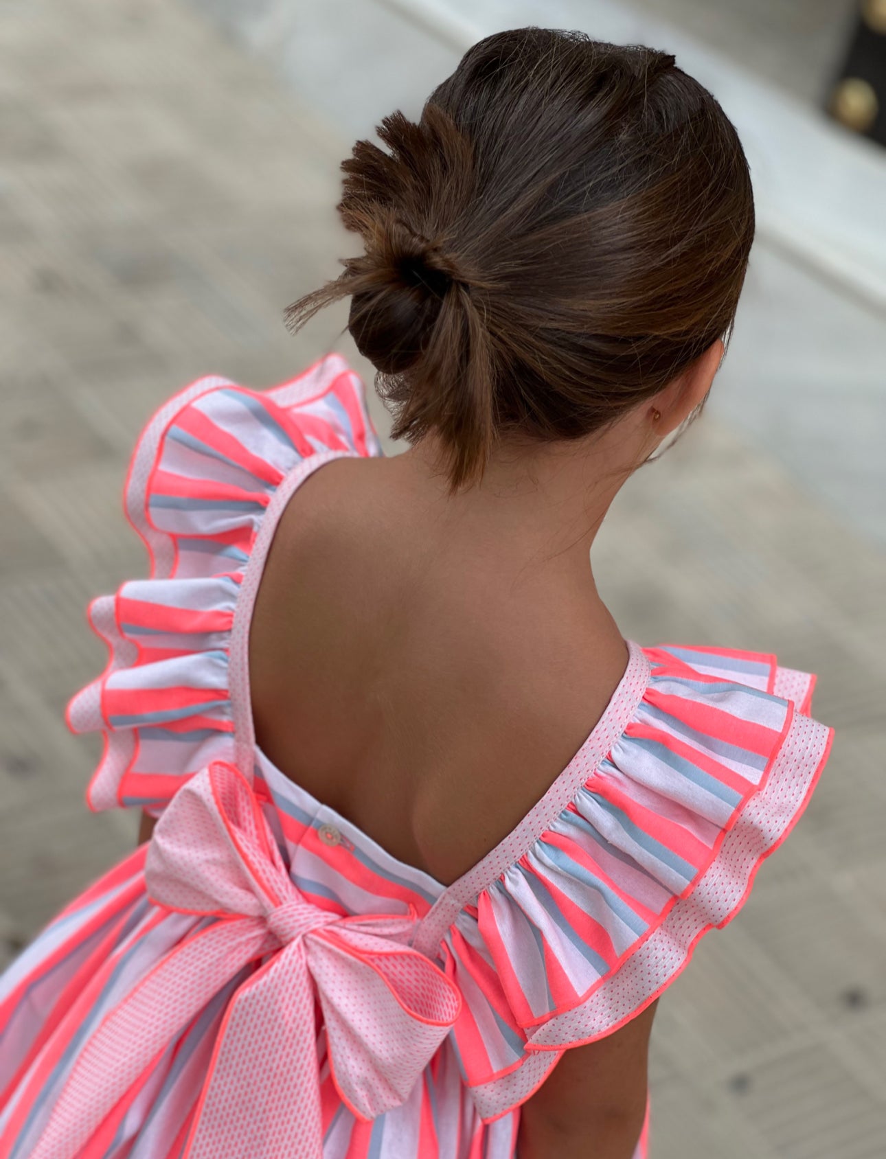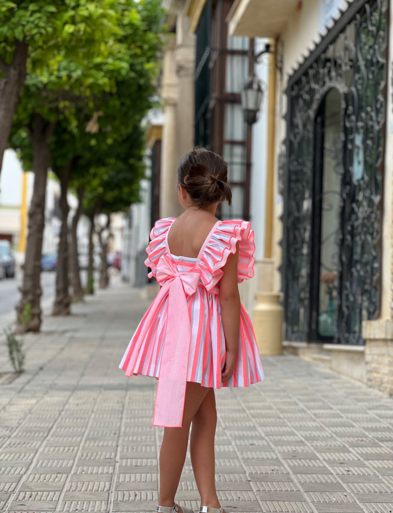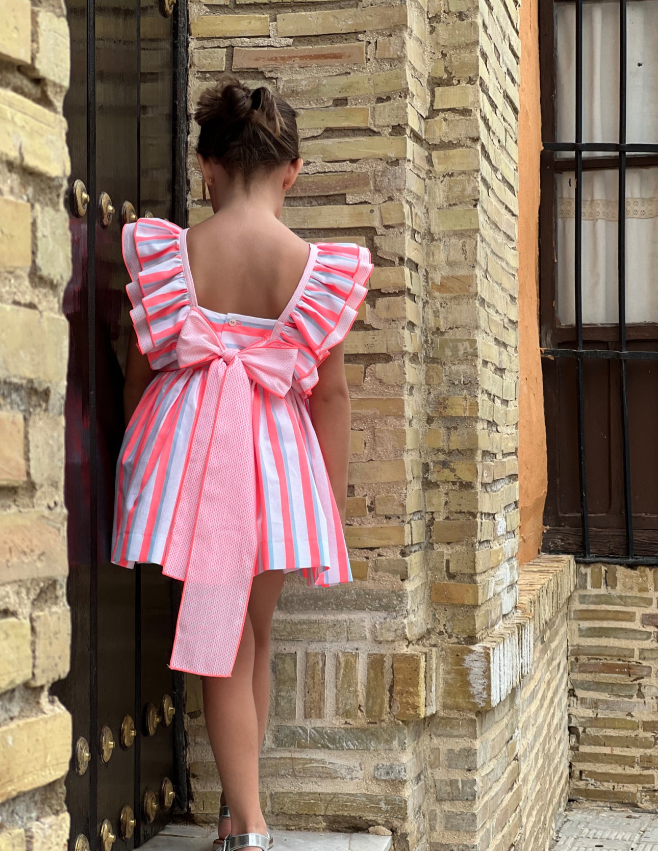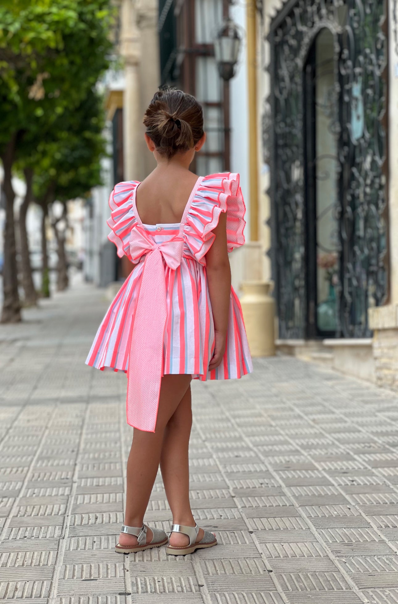 MI LOVES SIGNATURE pink Stripe Neon Dress with bow details.