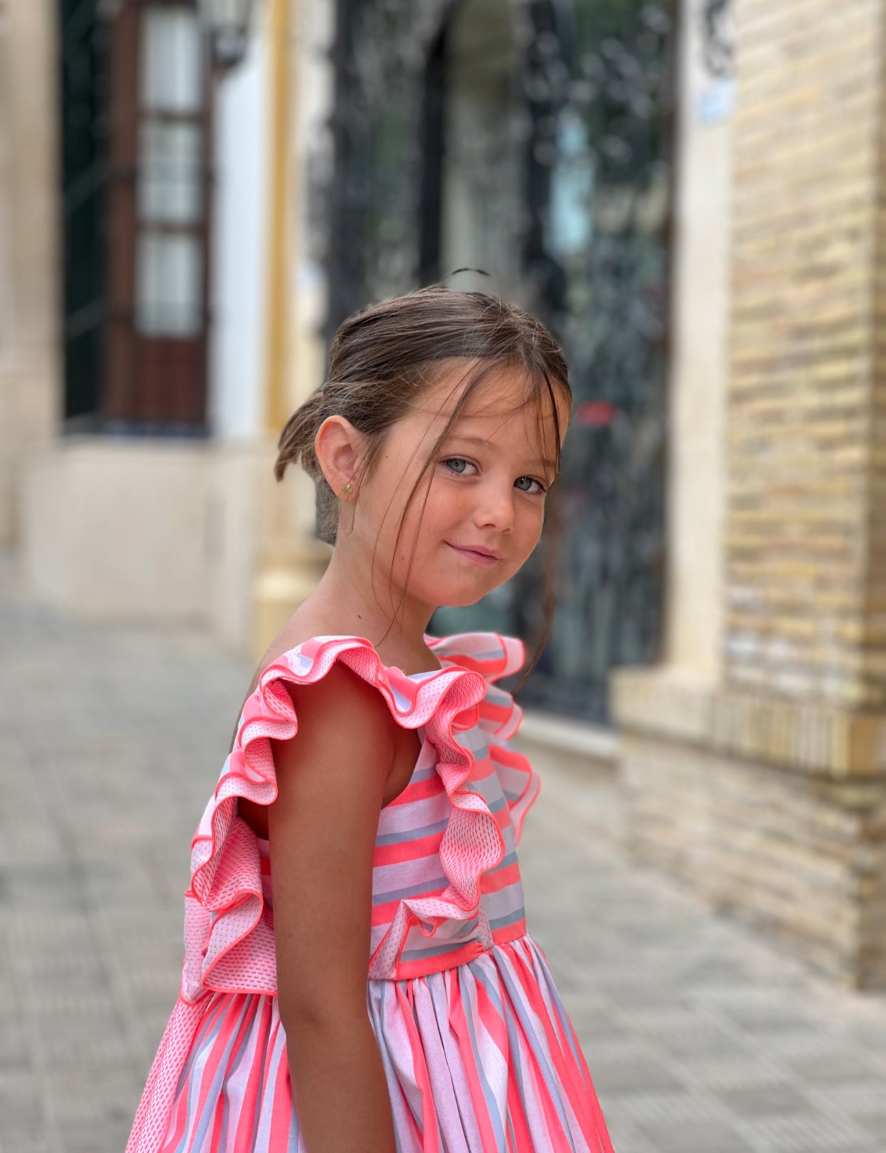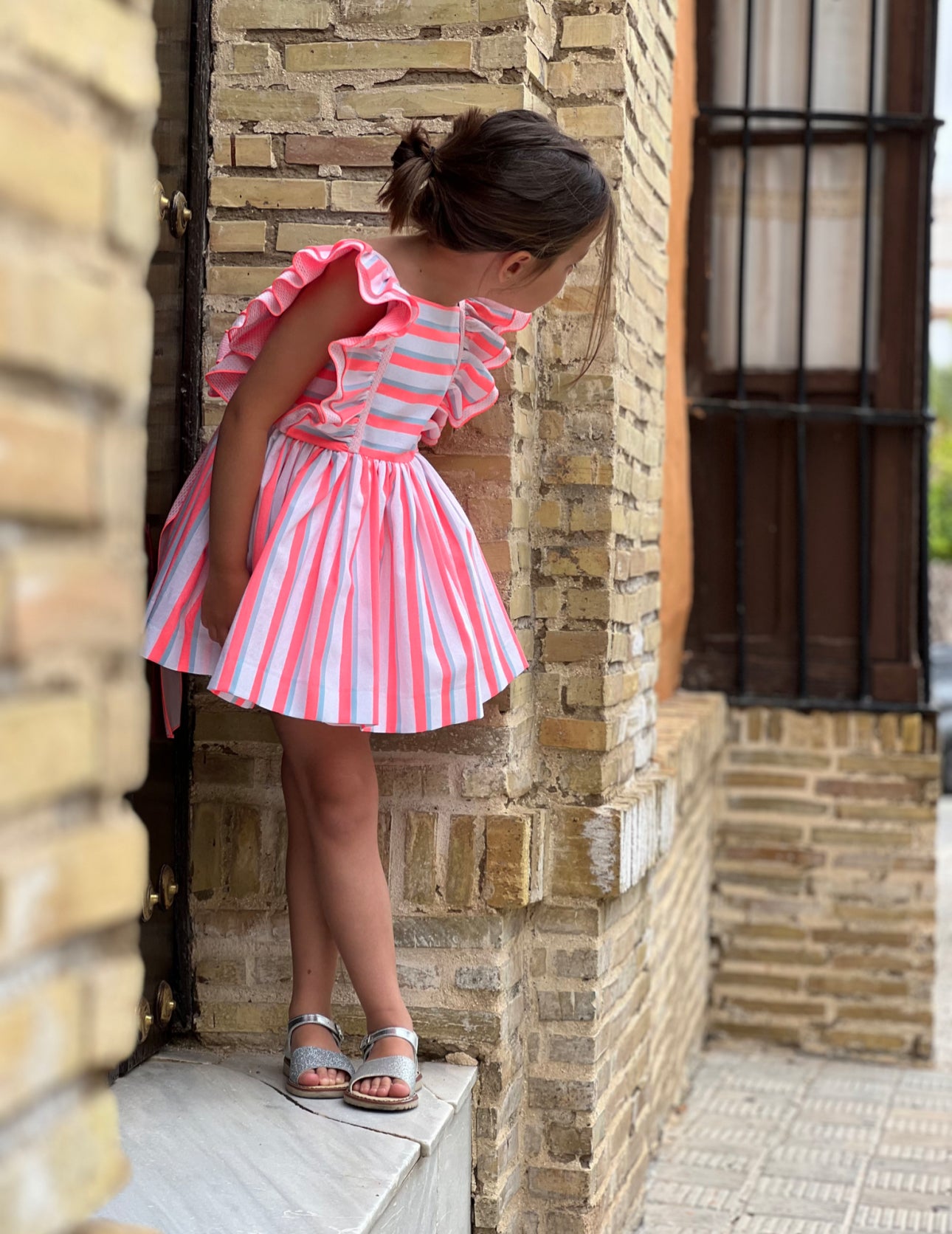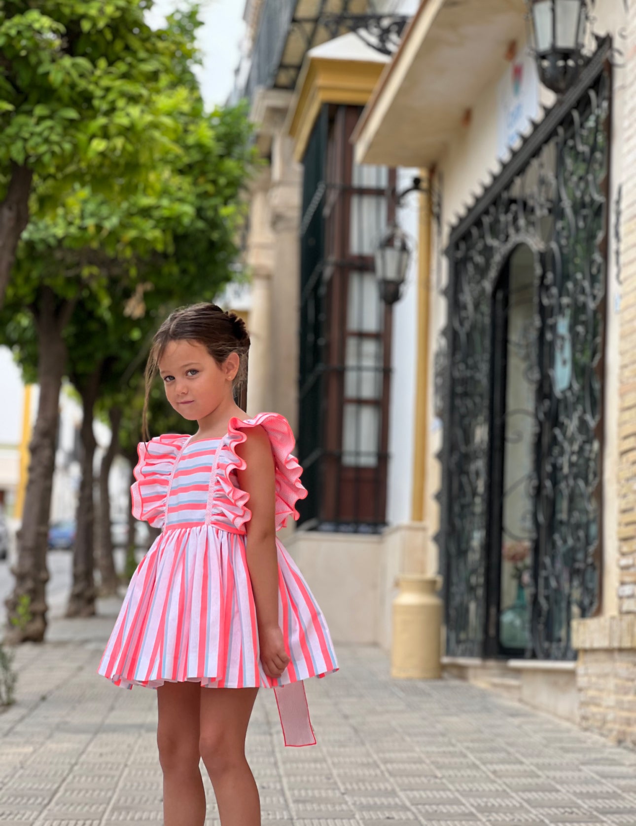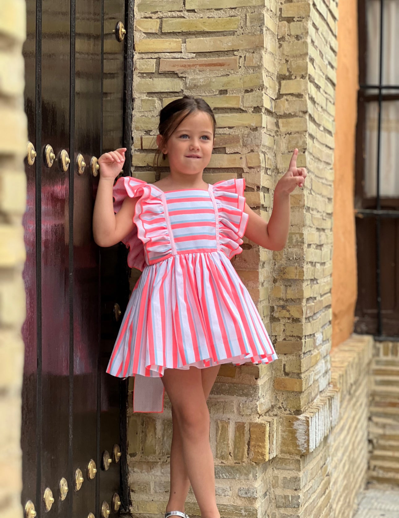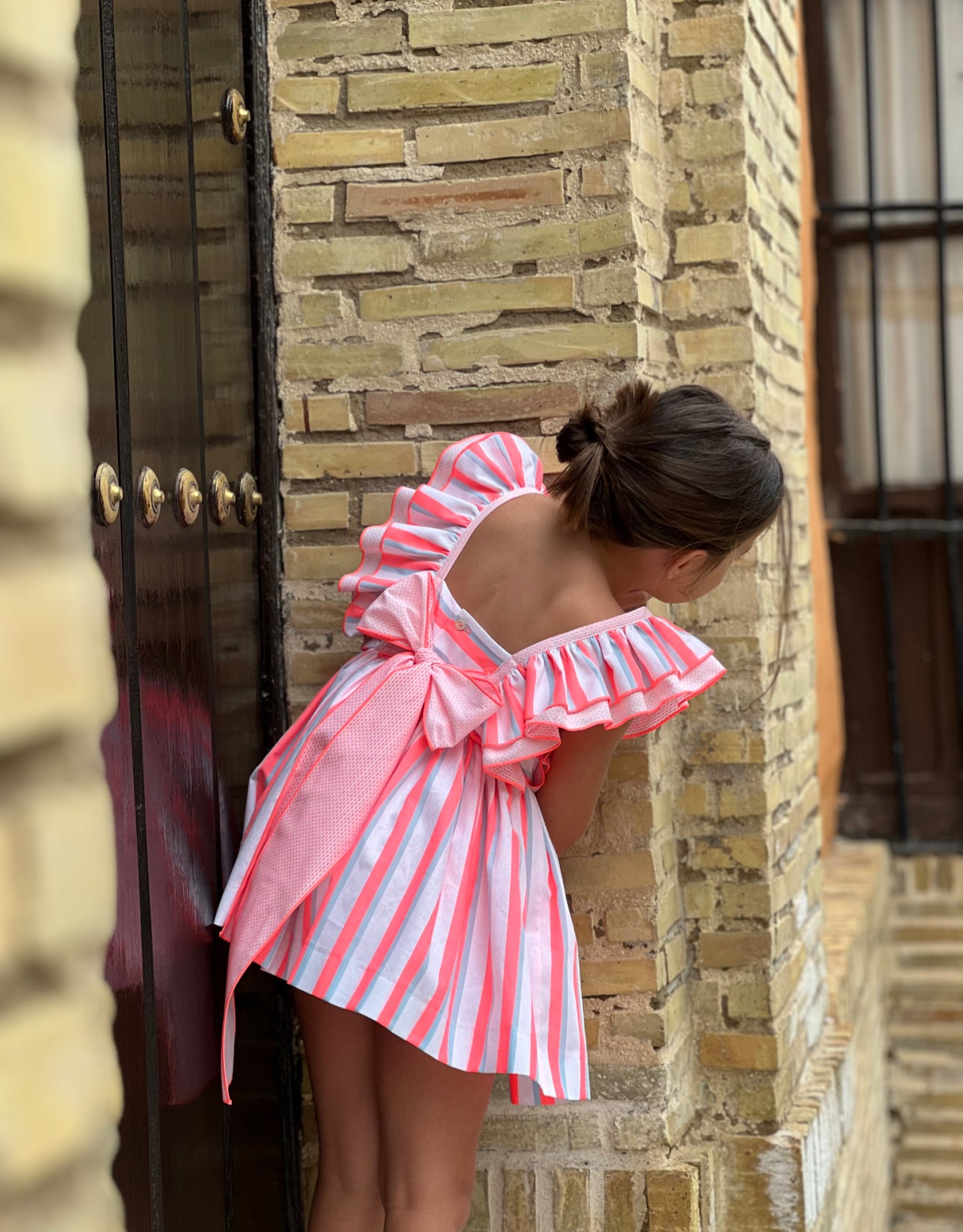 MI LOVES SIGNATURE pink Stripe Neon Dress with bow details.