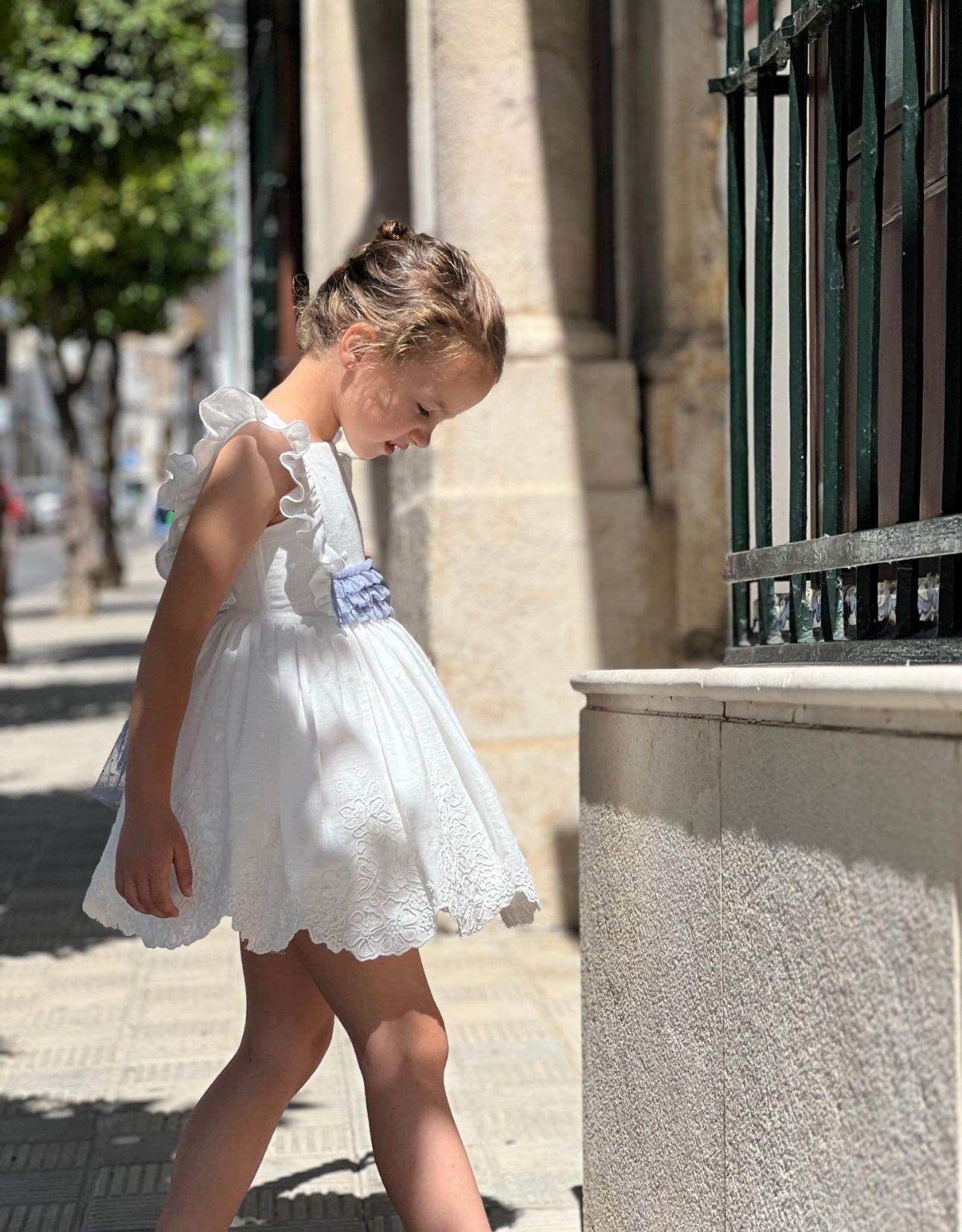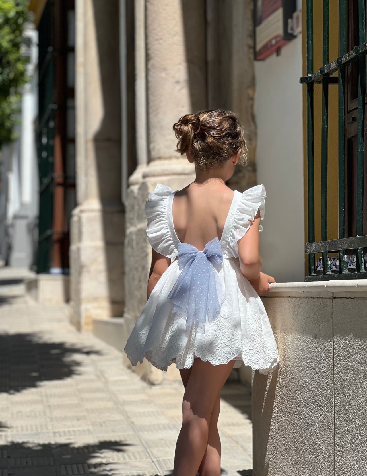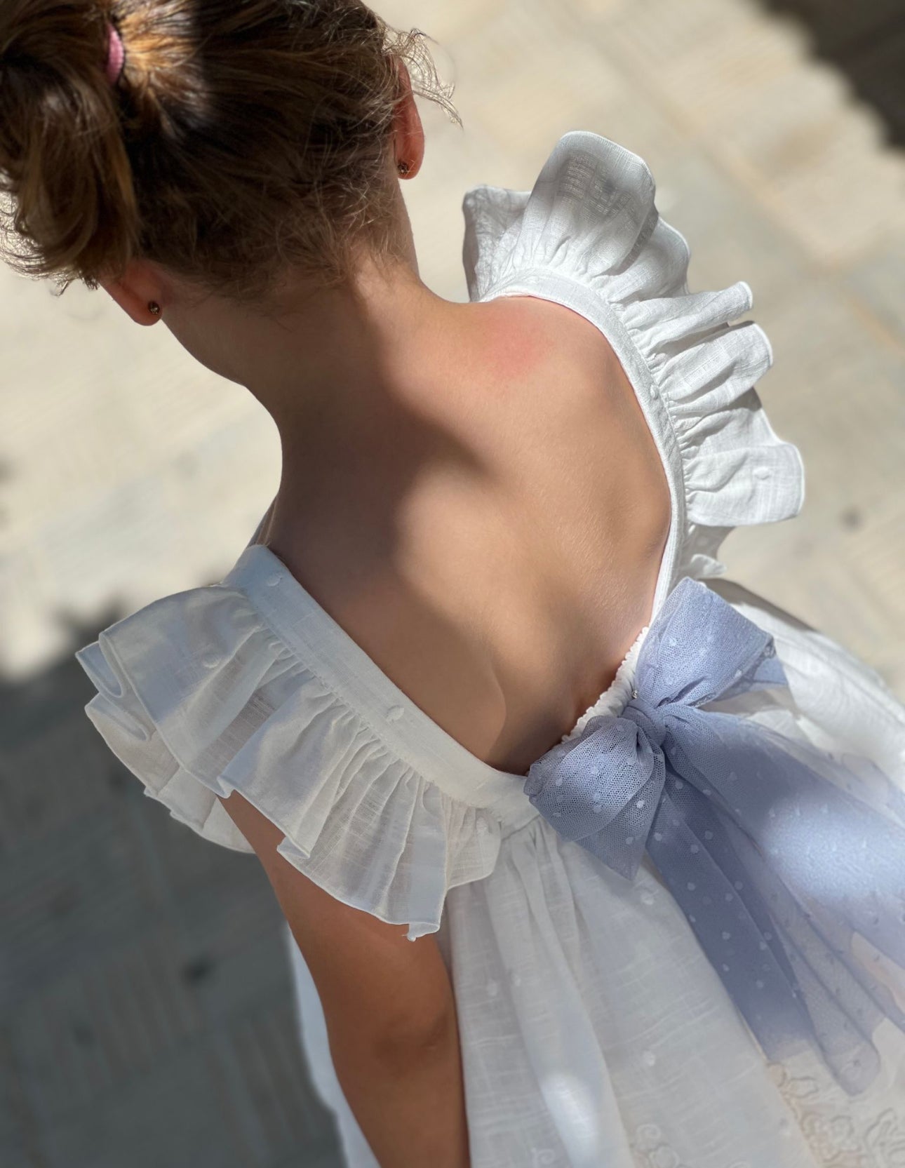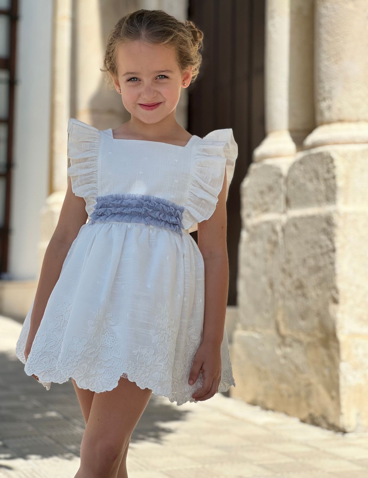 MI LOVES SIGNATURE Beautiful white/ivory dress with frill and bow details.