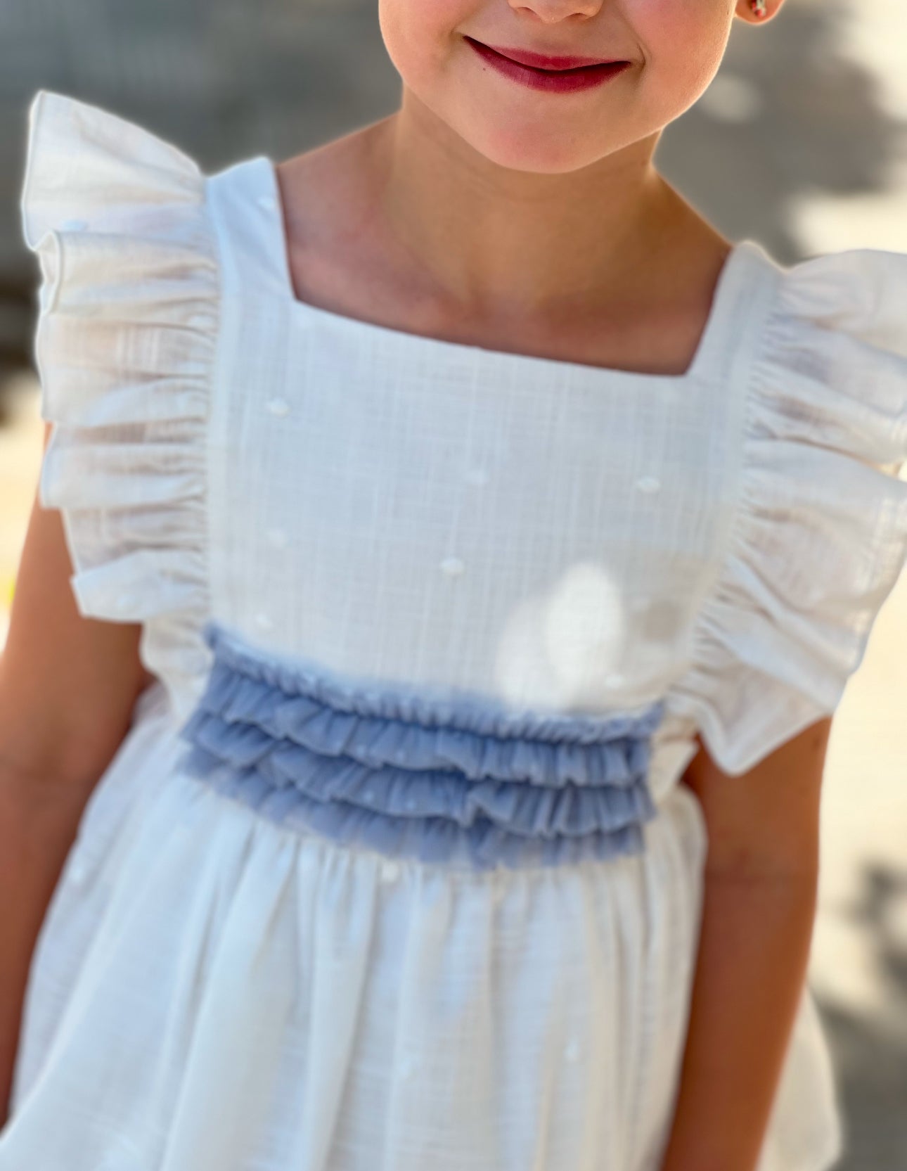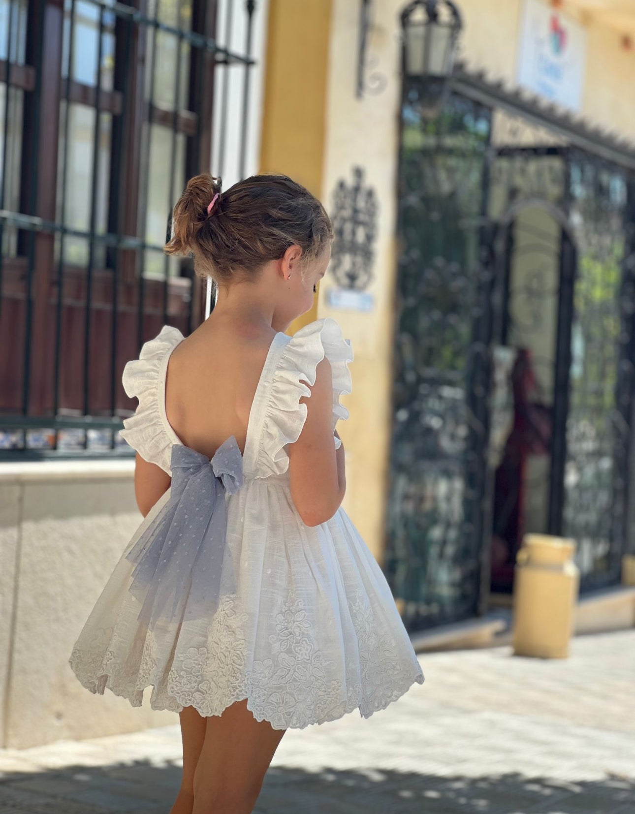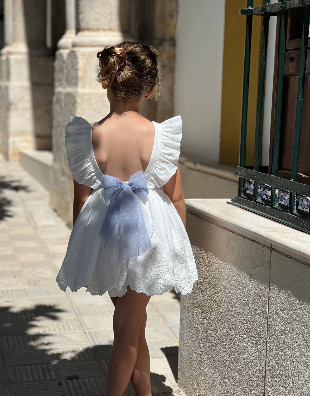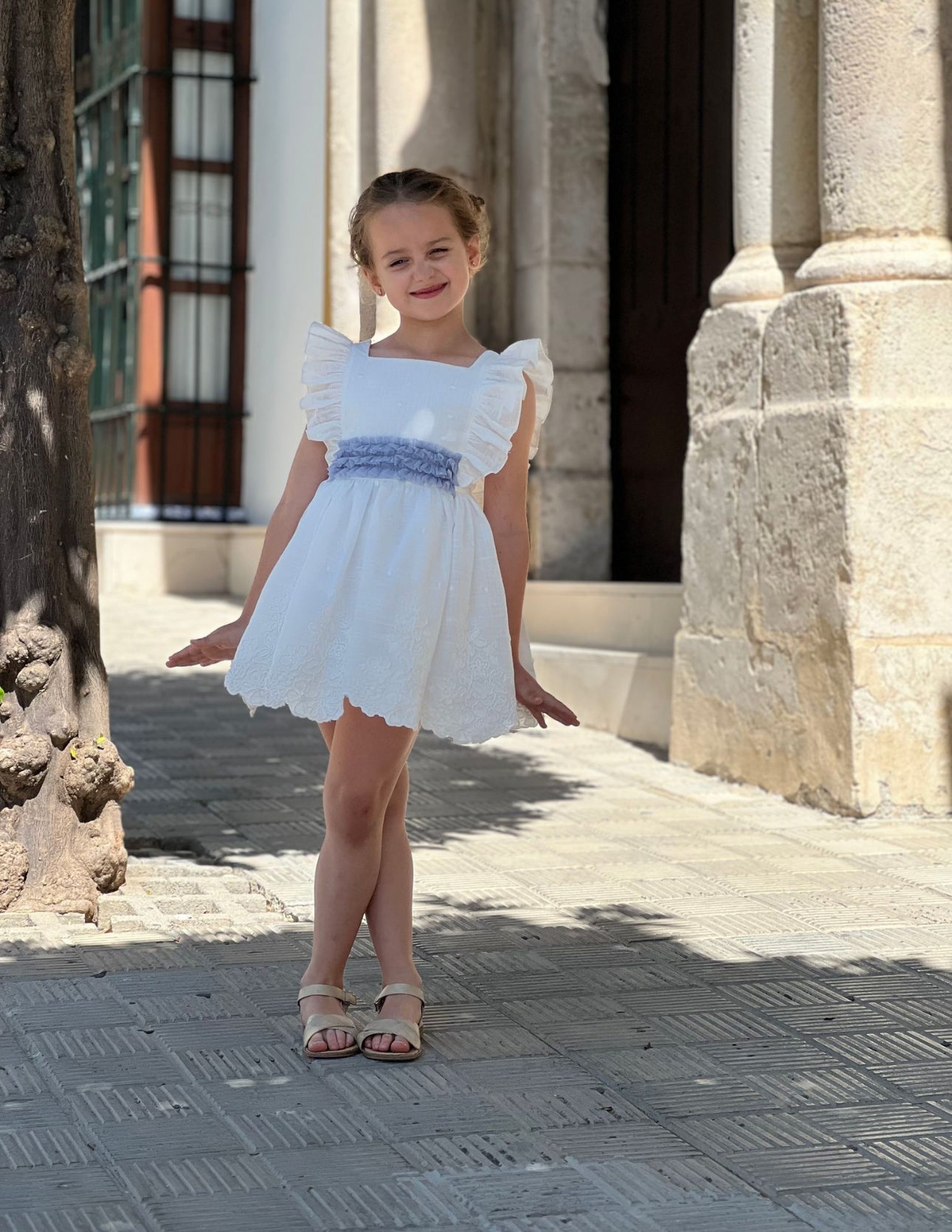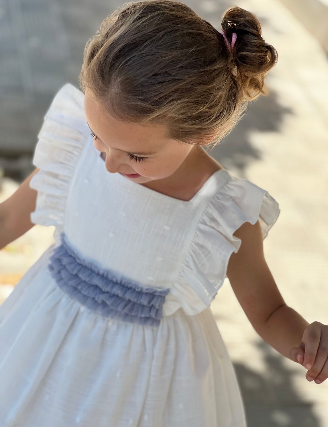 MI LOVES SIGNATURE Beautiful white/ivory dress with frill and bow details.