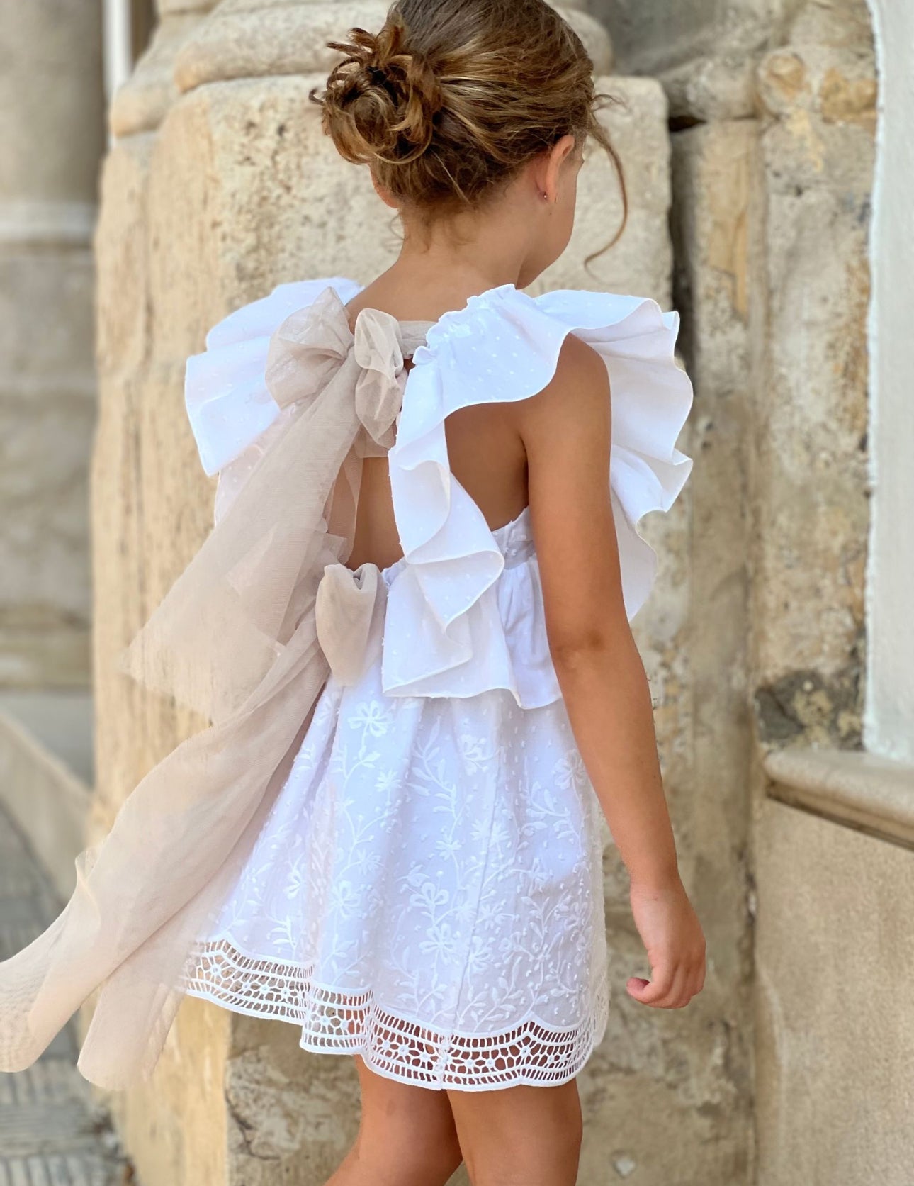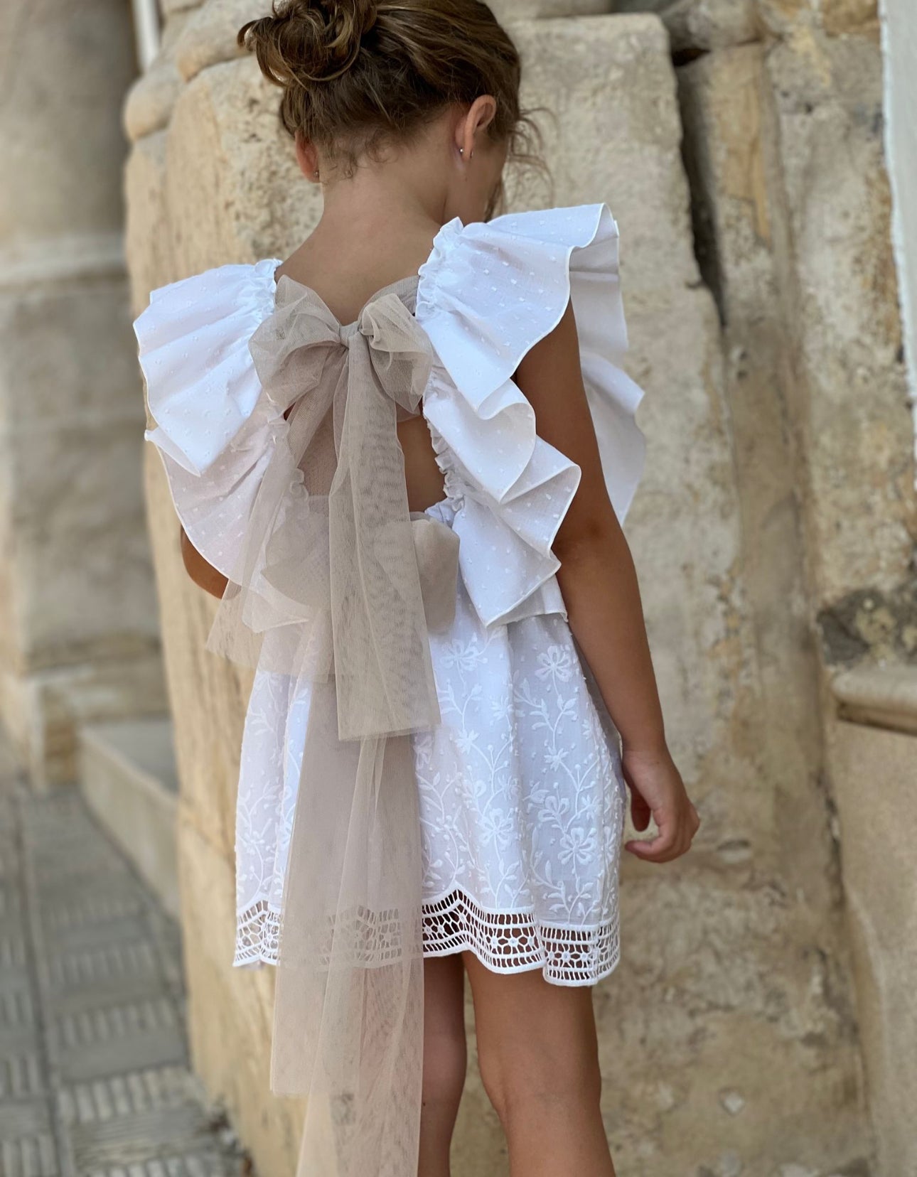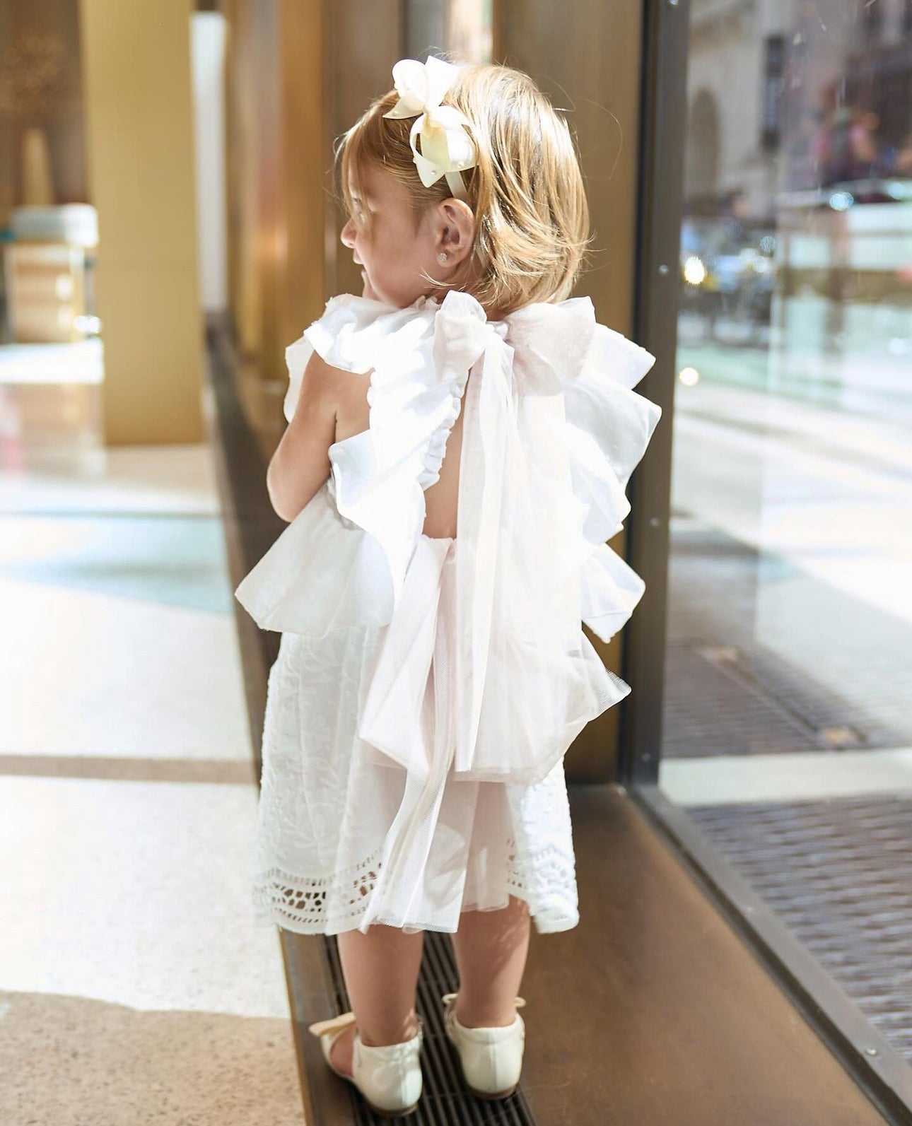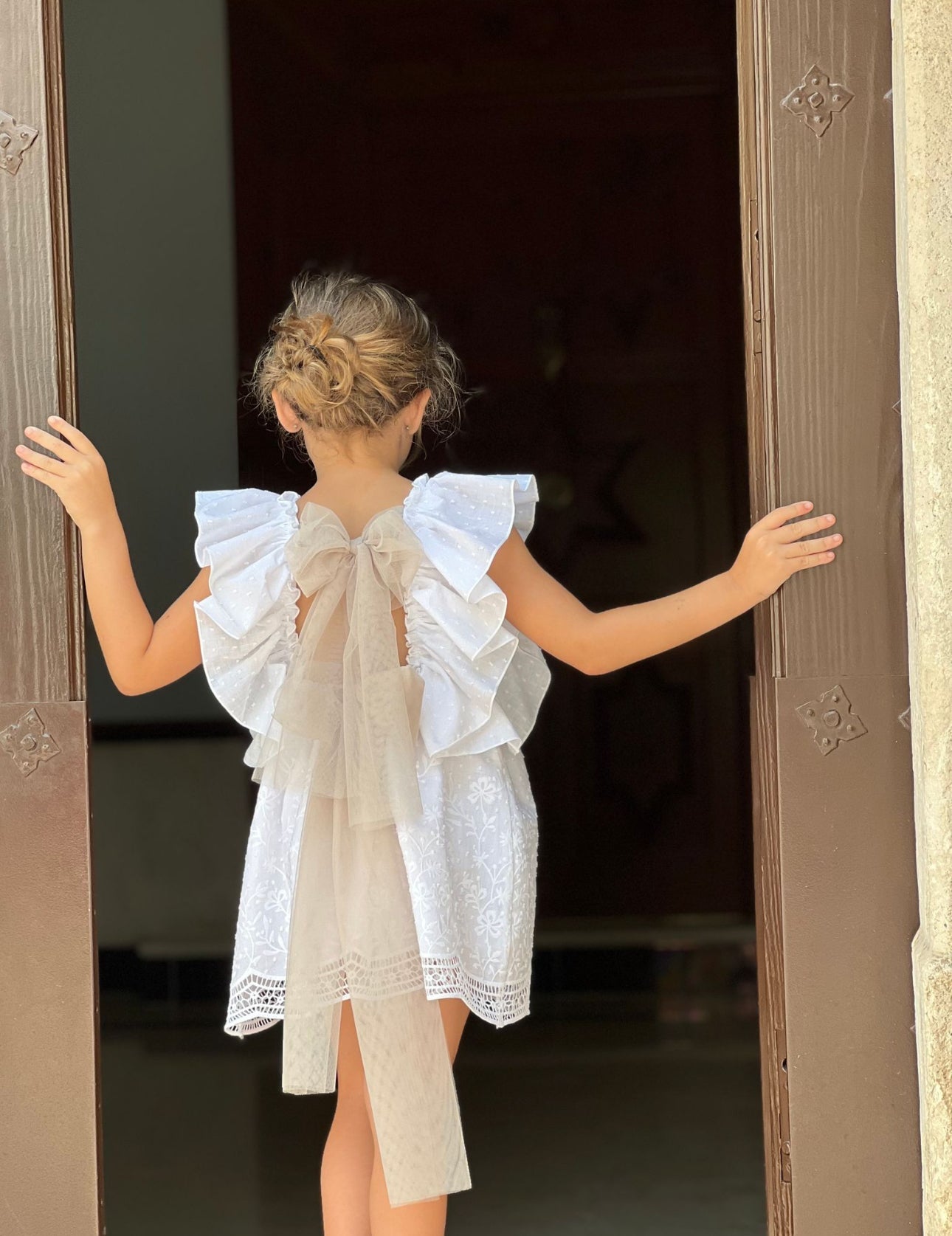 MI LOVES SIGNATURE Beautiful White dress with Frills and 2 bows details.