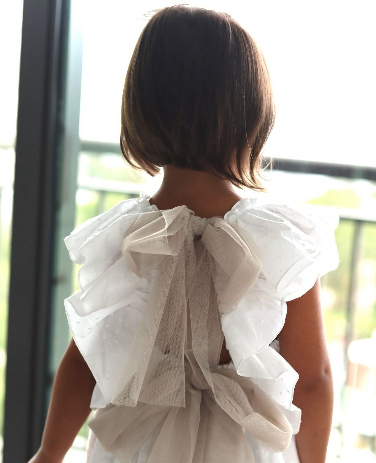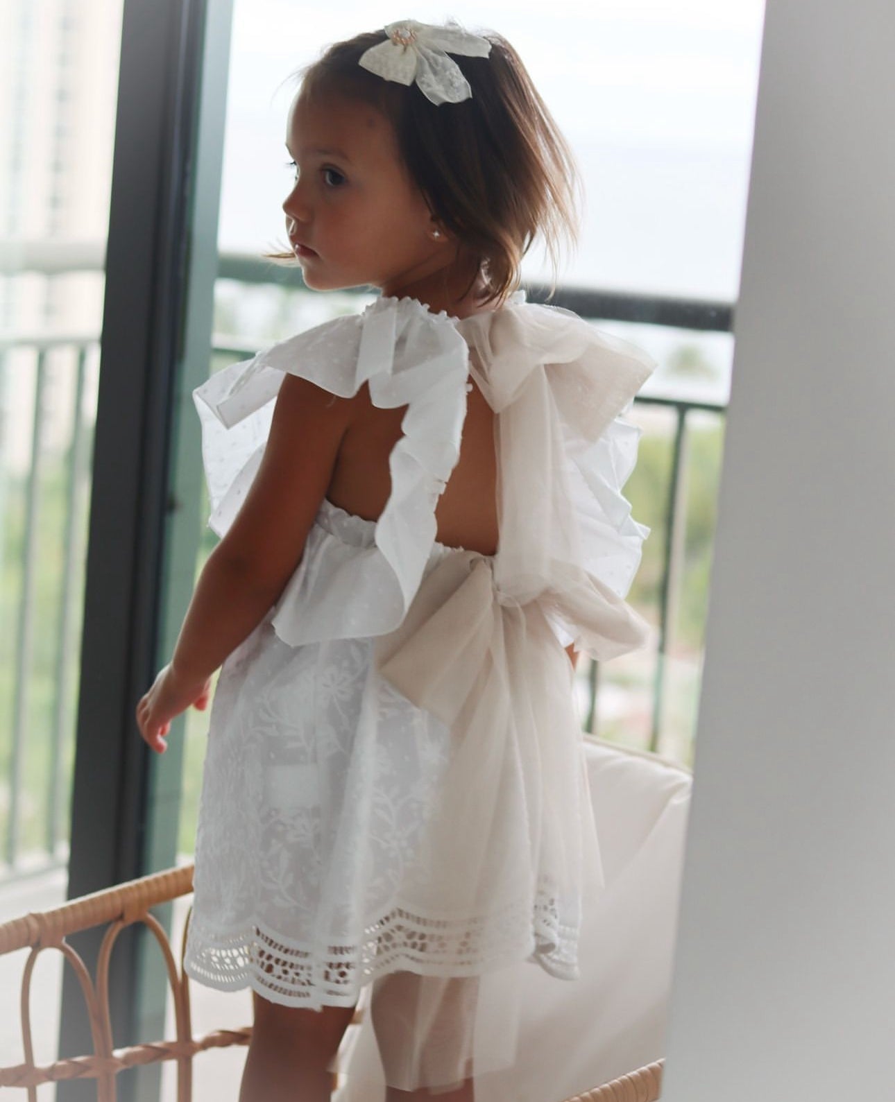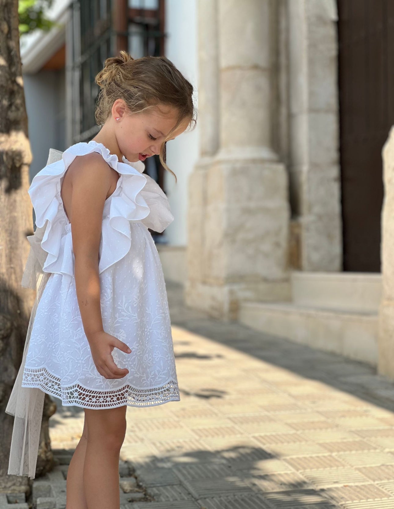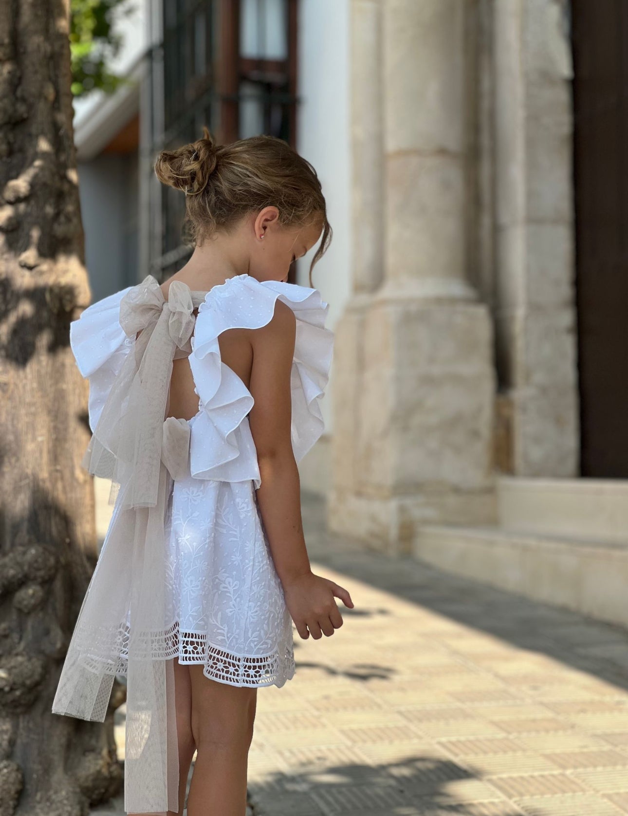 MI LOVES SIGNATURE Beautiful White dress with Frills and 2 bows details.