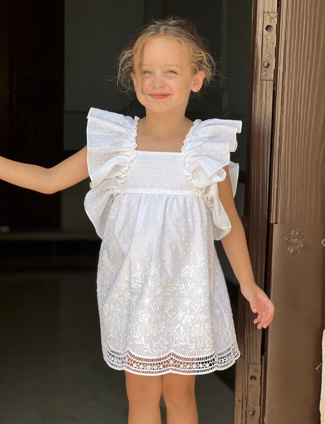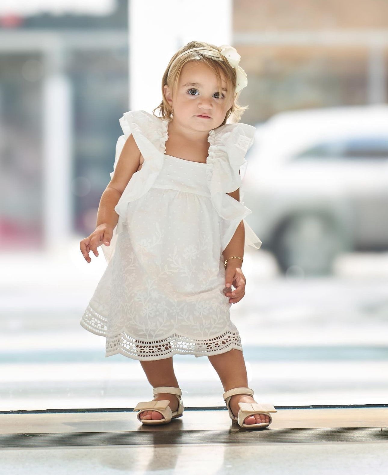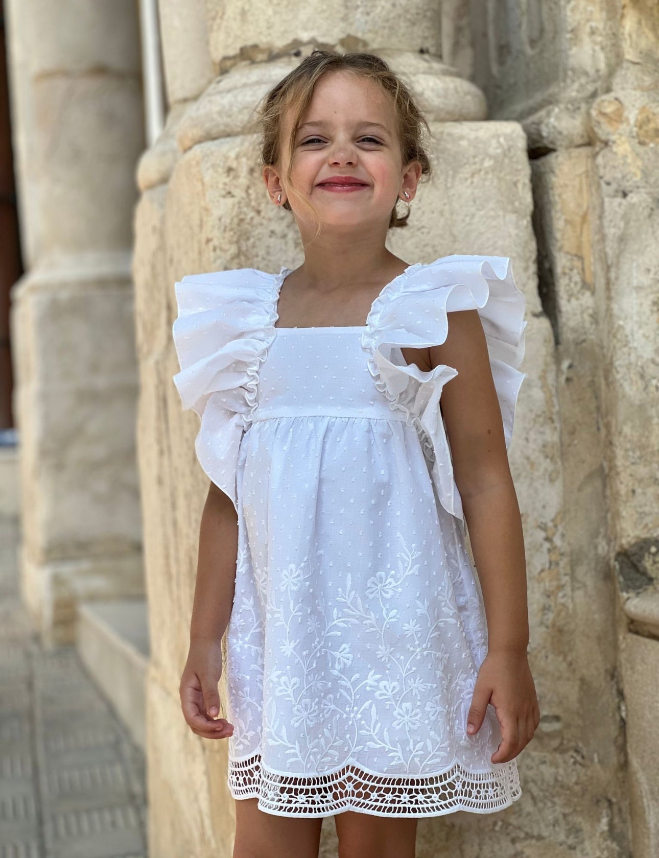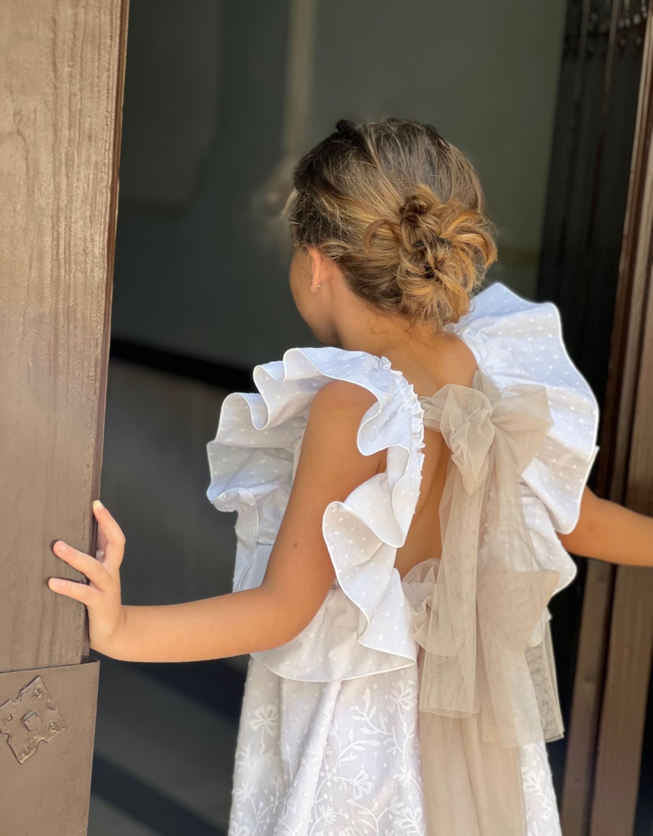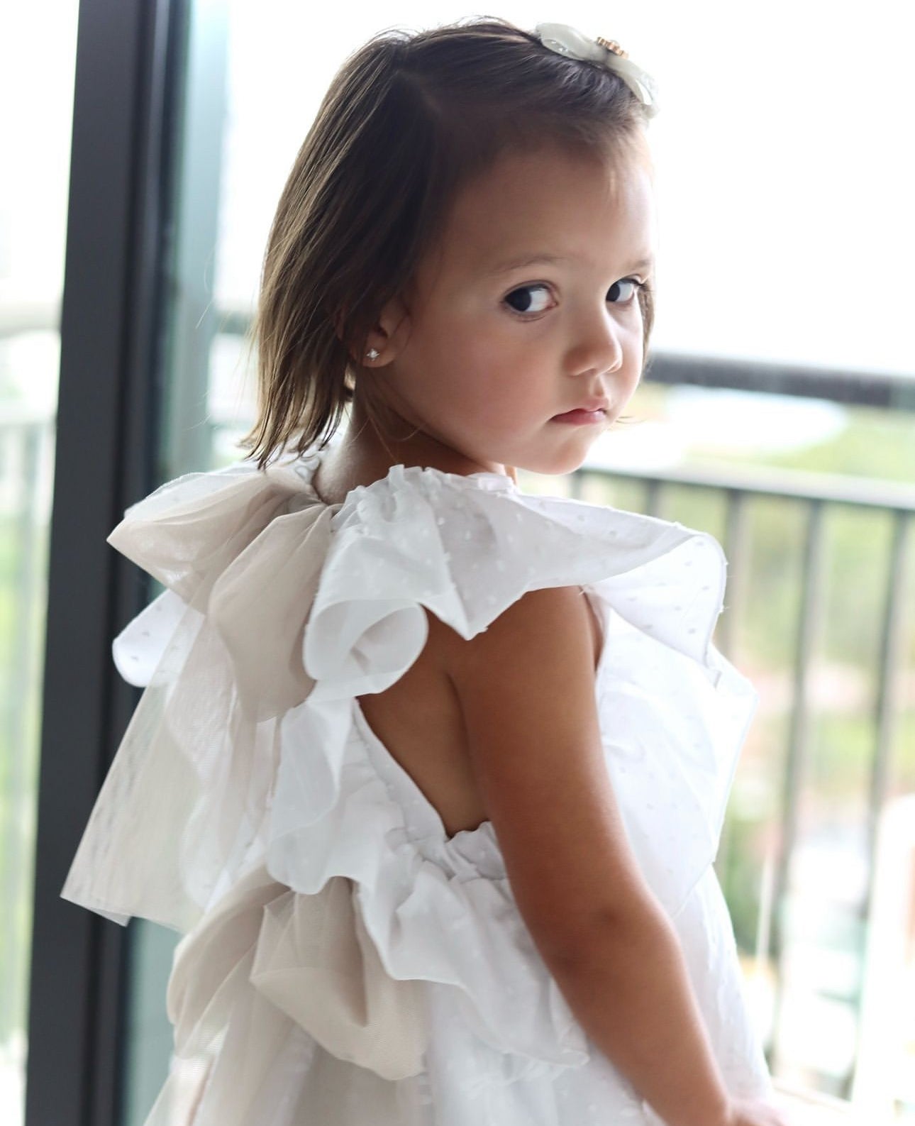 MI LOVES SIGNATURE Beautiful White dress with Frills and 2 bows details.