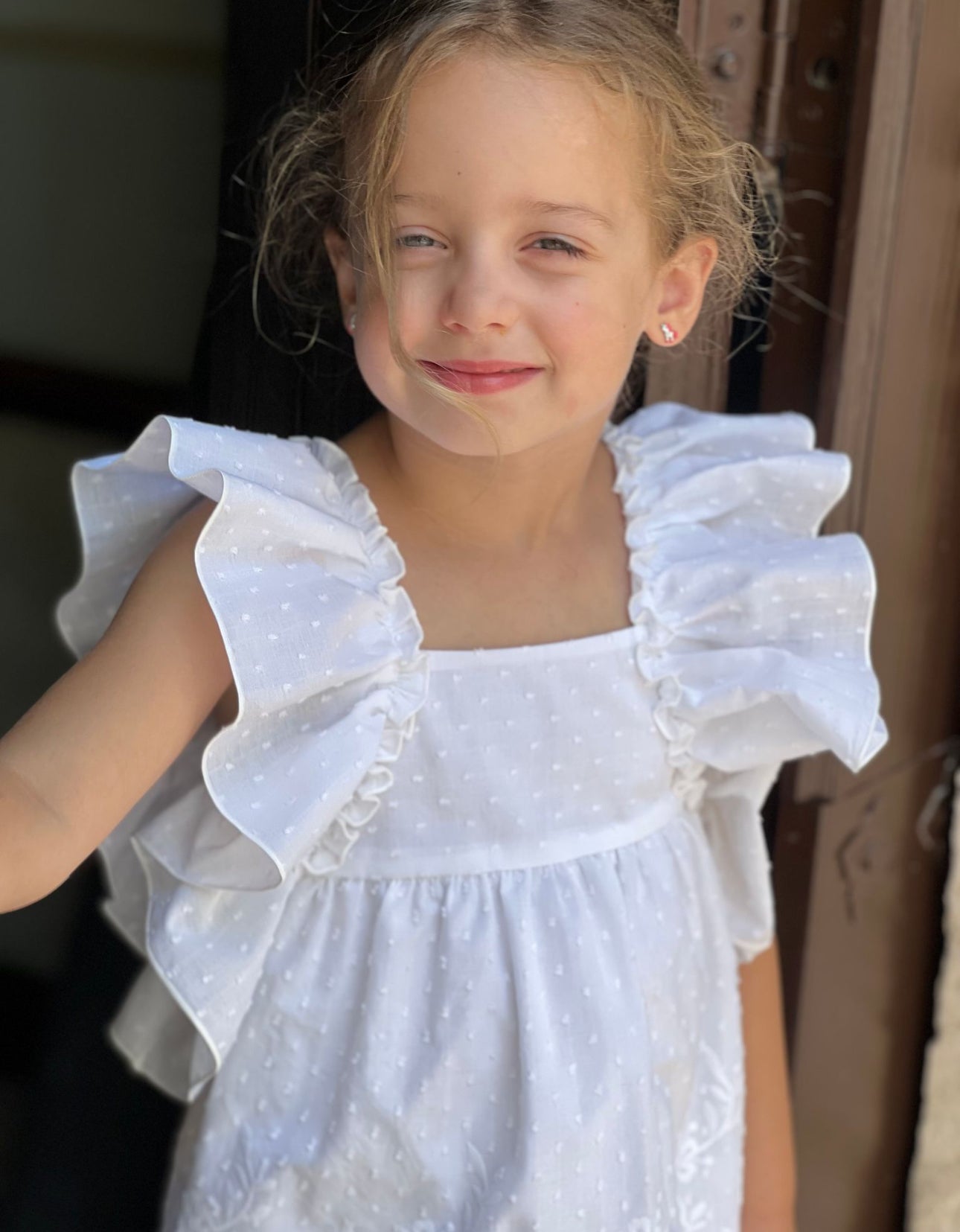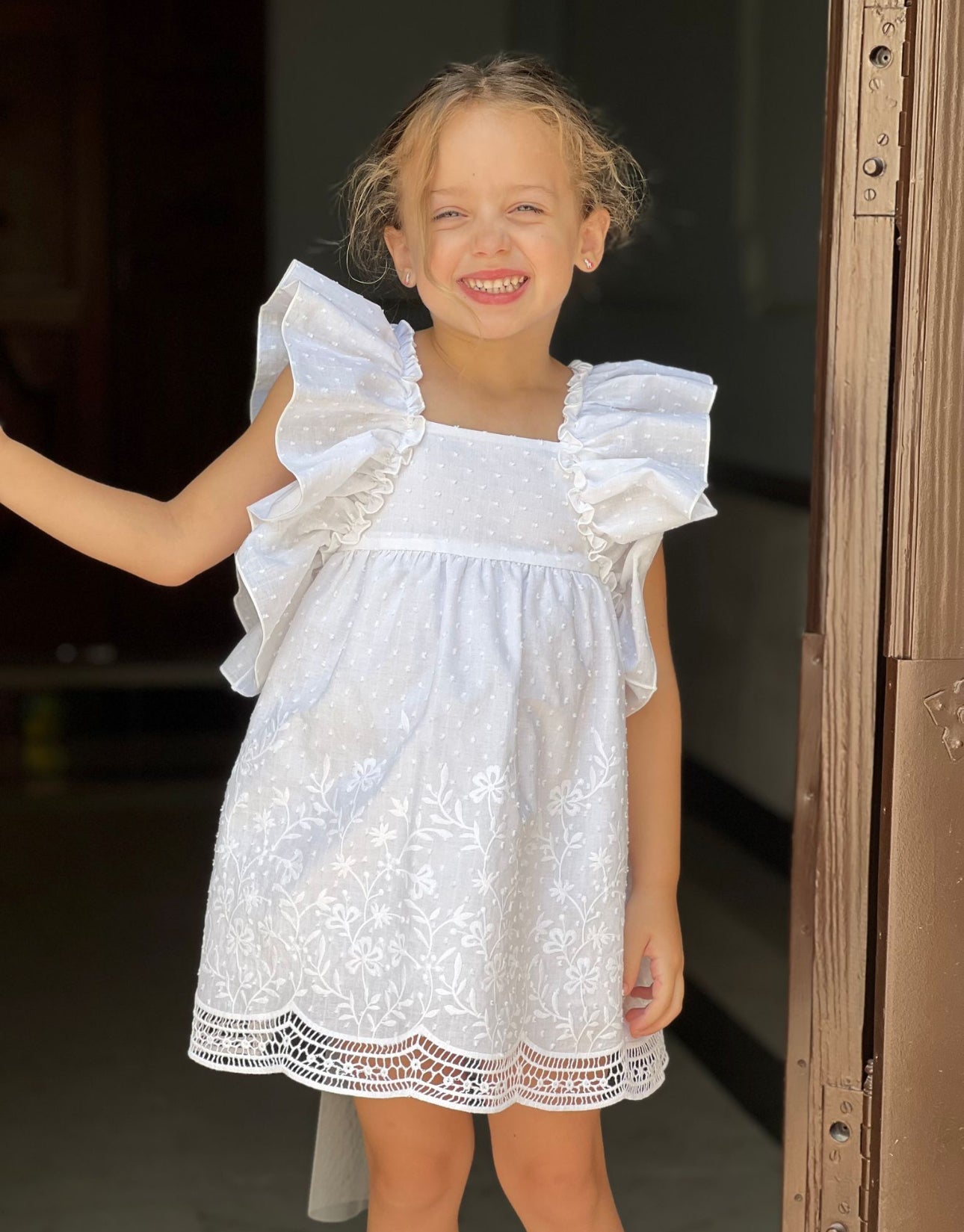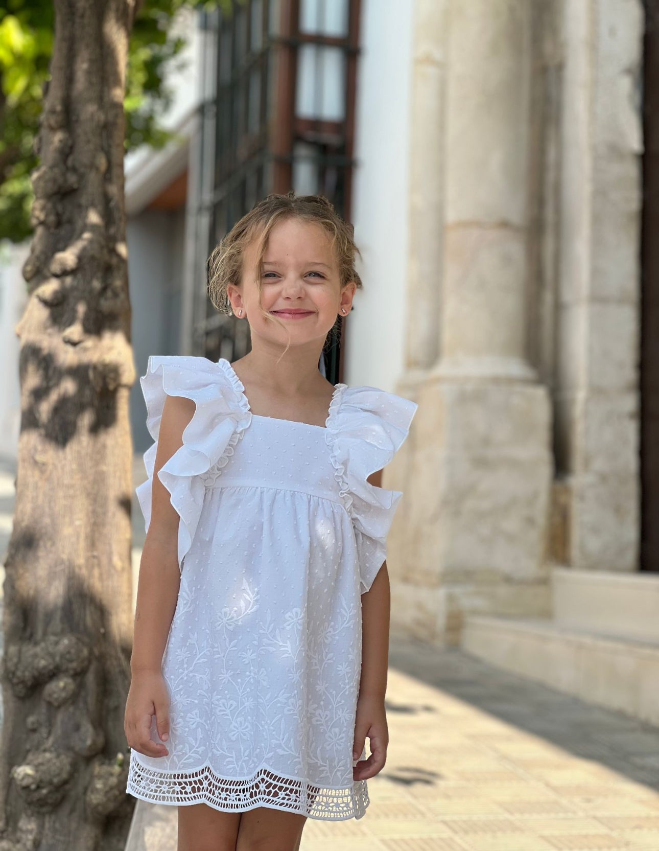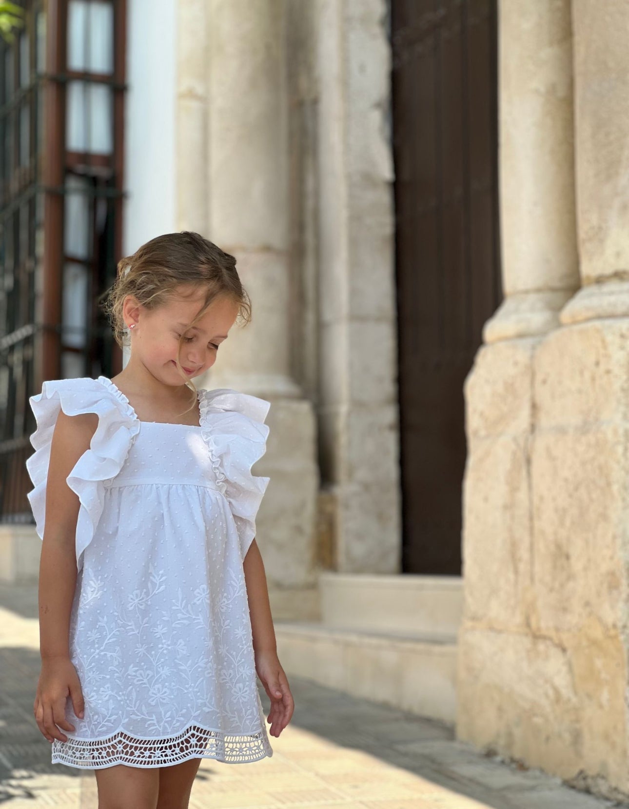 MI LOVES SIGNATURE Beautiful White dress with Frills and 2 bows details.